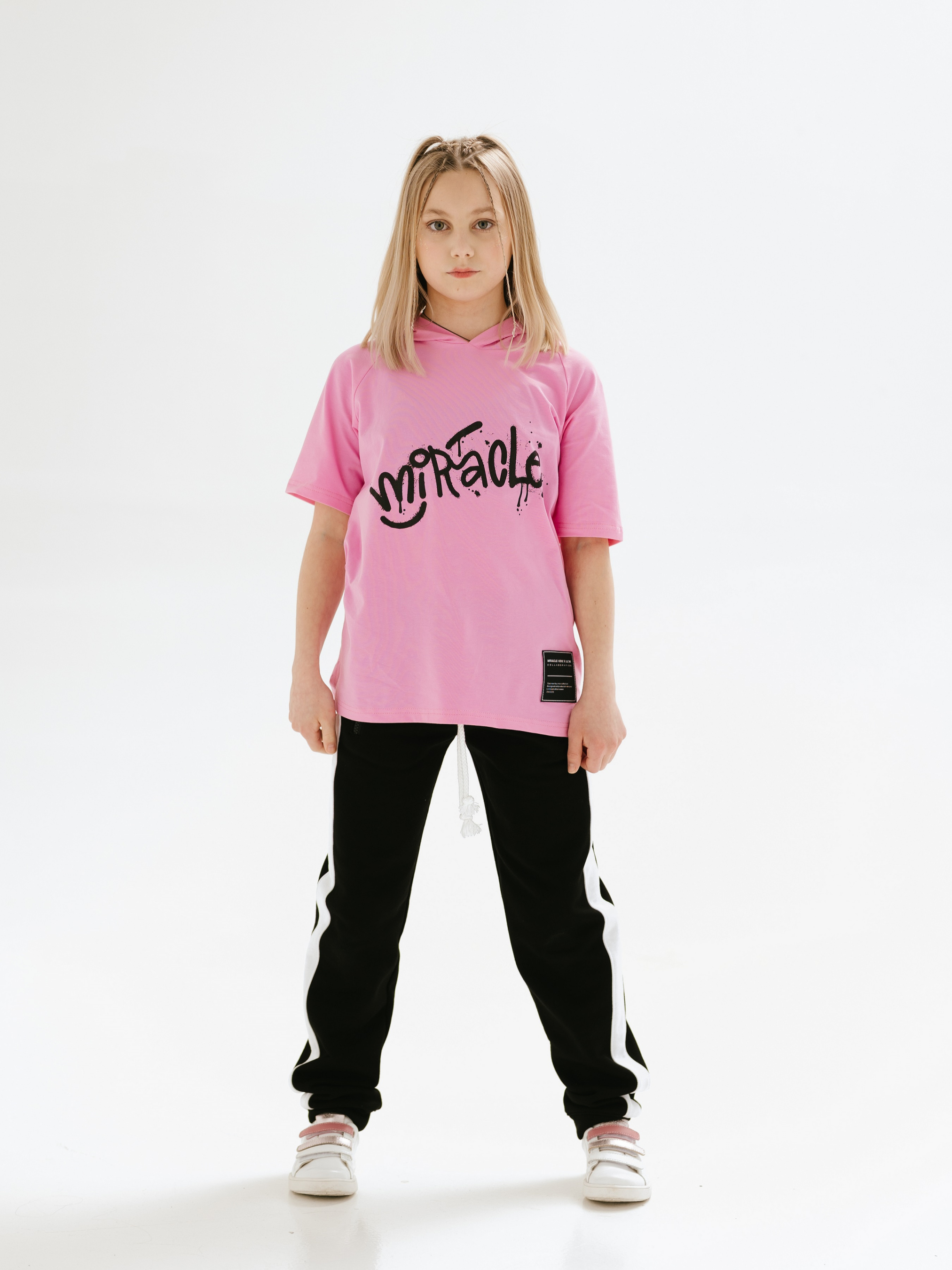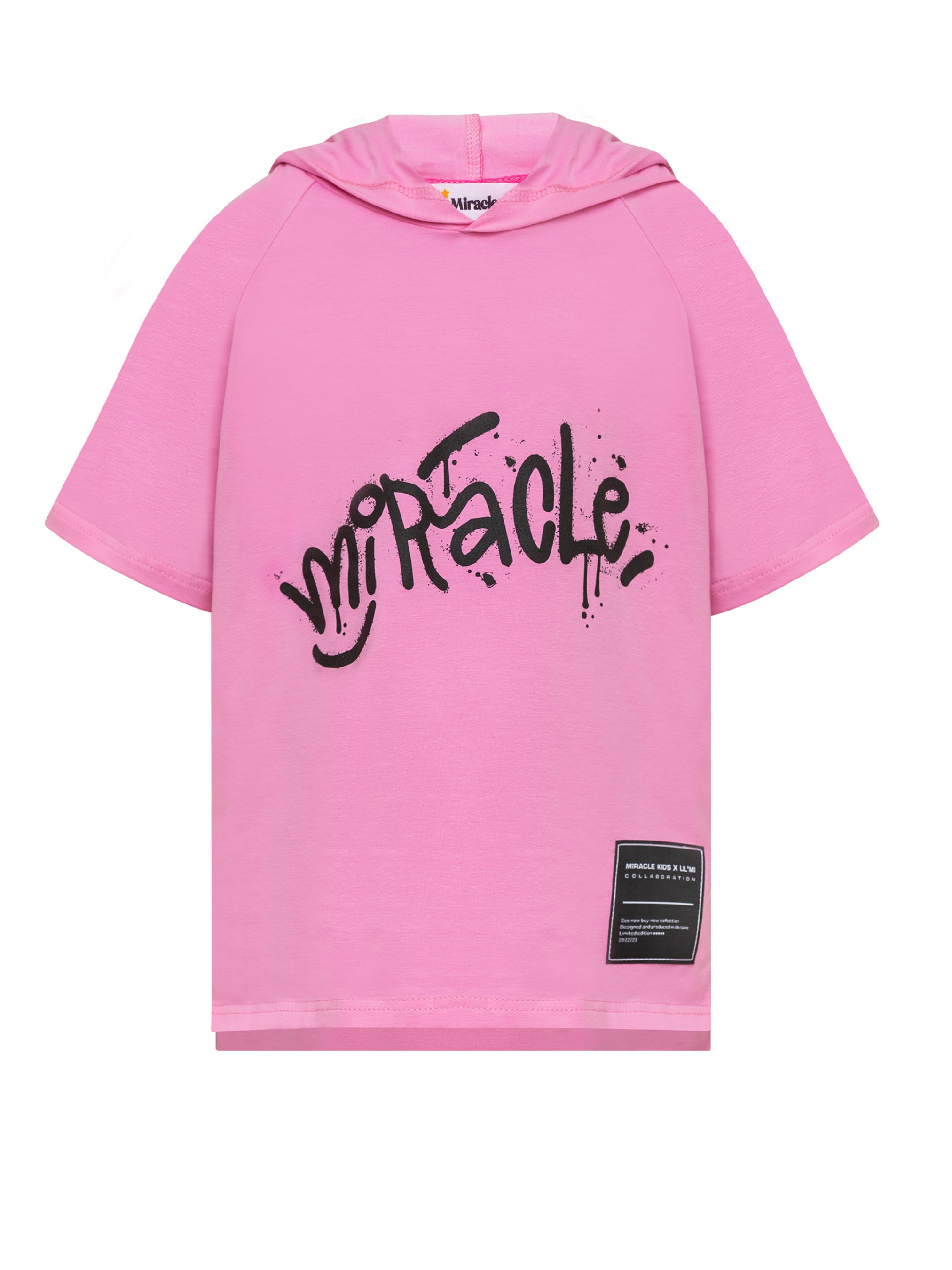 Футболка рожева з капюшоном з принтом Miracle