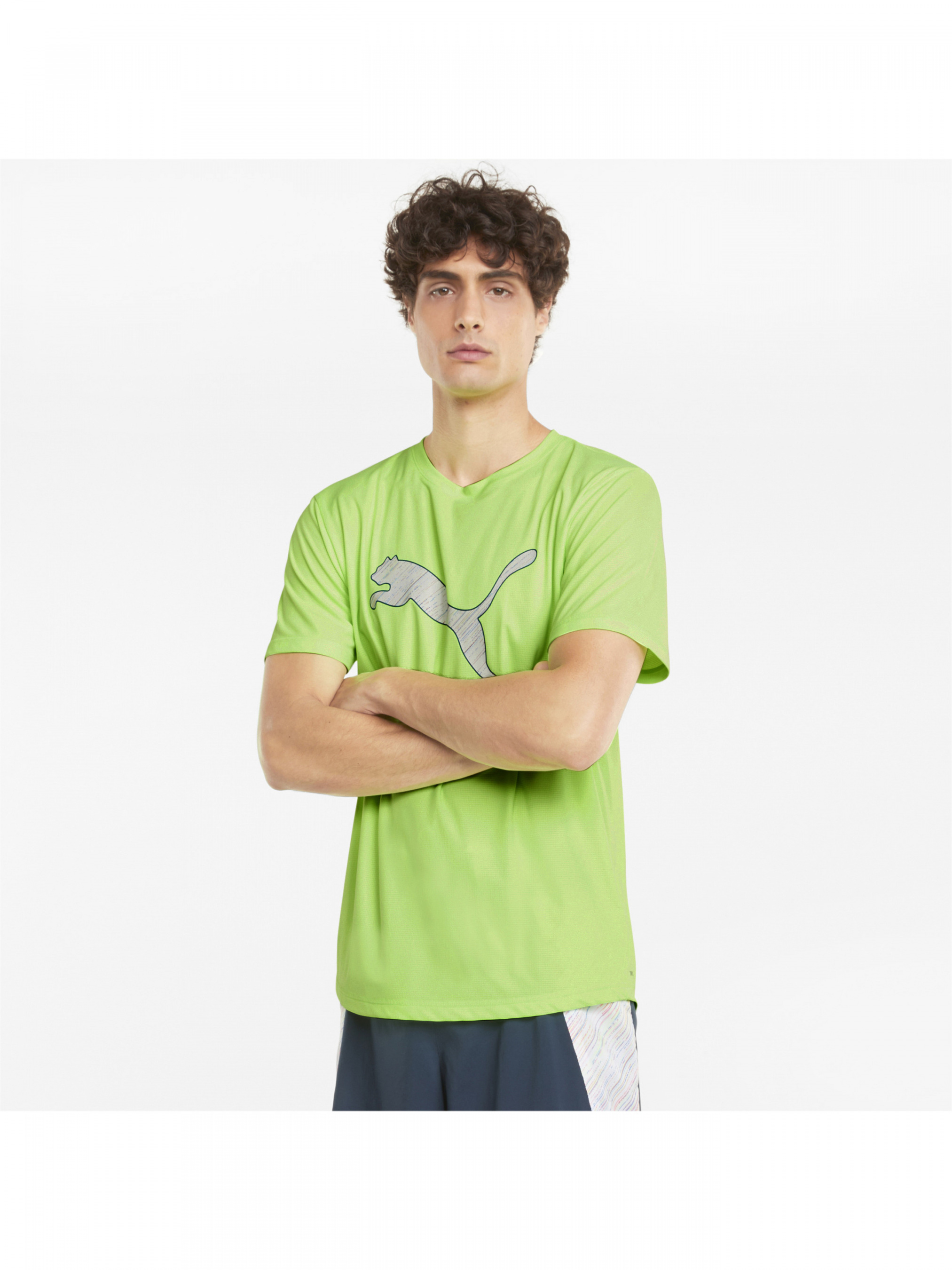 Будьте попереду всіх. Наша лінійка Running - це поєднання функціональності і моди. Ми використовували новітні бігові технології, а тому екіпірування ідеальне для спортсменів, які не знають компромісів. Футболка Logo Short Sleeve Men's Running Tee - ідеальна базова модель для бігу. Стильна графіка на грудях, технологія dryCELL для додаткового комфорту і світловідбиваючі елементи для видимості з усіх боків в умовах низької освітленості - відмінні риси. Деталі Колекція: Осінь-зима 2021 Стиль: Спортивний Вид спорту: Біг < /li> Технології: Високотехнологічний матеріал dryCELL відводить вологу, забезпечуючи відчуття сухості і комфорт Характеристики < ul> Склад: 83% перероблений поліестер, 17% поліестер; матеріал містить перероблені волокна - PUMA піклується про зниження впливу на навколишнє середовище Чоловіча футболка Стандартна посадка Бічні розрізи - для свободи рухів Світловідбиваючі елементи забезпечують видимість з усіх боків в умовах низького освітлення Сезонна графіка - спереду, по центру Країна-виробник: В'єтнам < /ul>