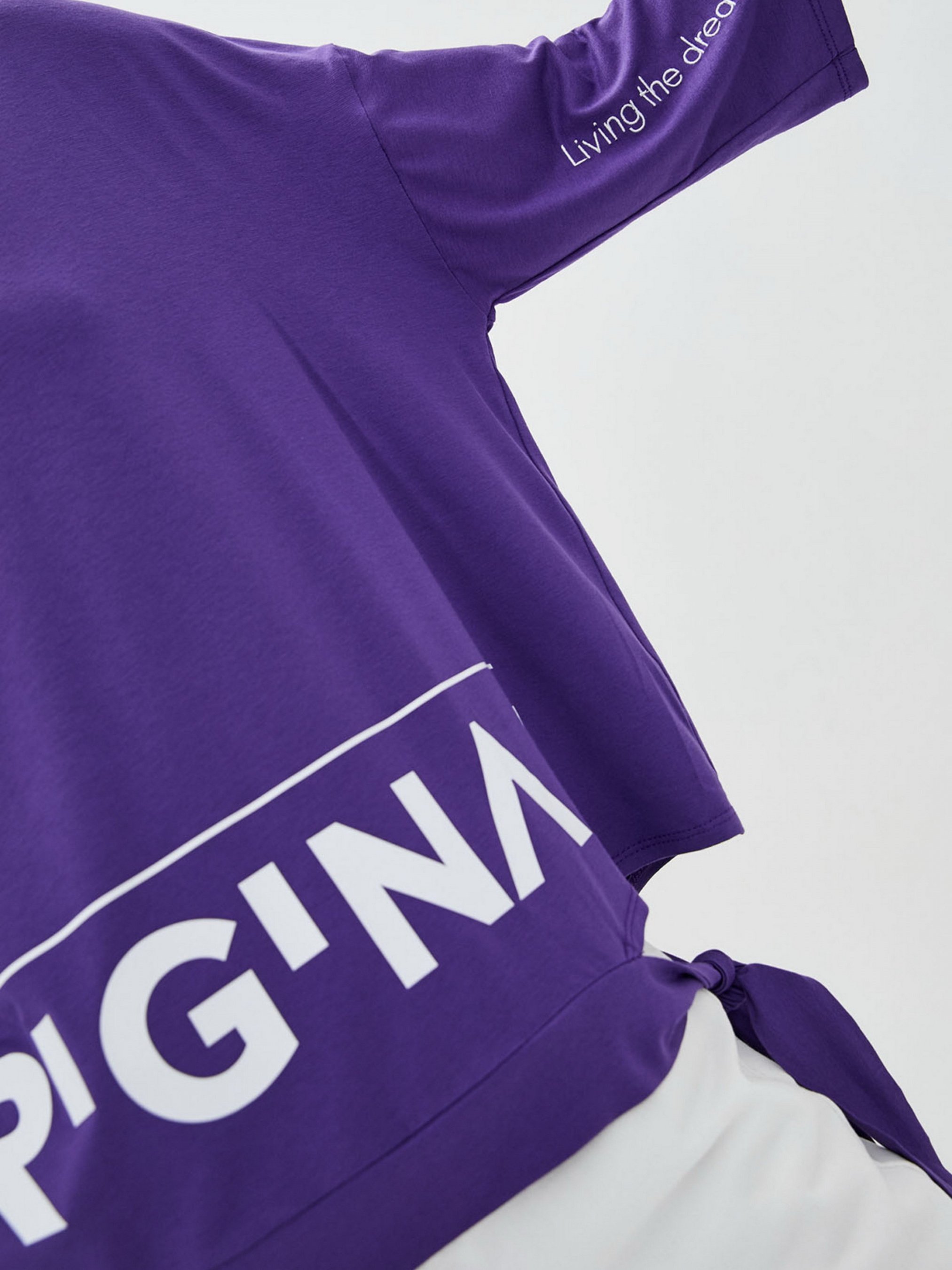Жіноча футболка декорована авторським принтом. У моделі приспущений рукав, є зав'язка збоку. Ця футболка – яскраве доповнення повсякденного гардеробу. Склад: viscose 85%, polyester 10%, elastane 5%. Виміри виробу: Об'єм грудей: XS - 116; М – 120; XL – 124. Об'єм талії: XS – 116; М – 120; XL – 124. Об'єм внизу: XS – 116; М – 120; XL – 124. Розмір на моделі S.