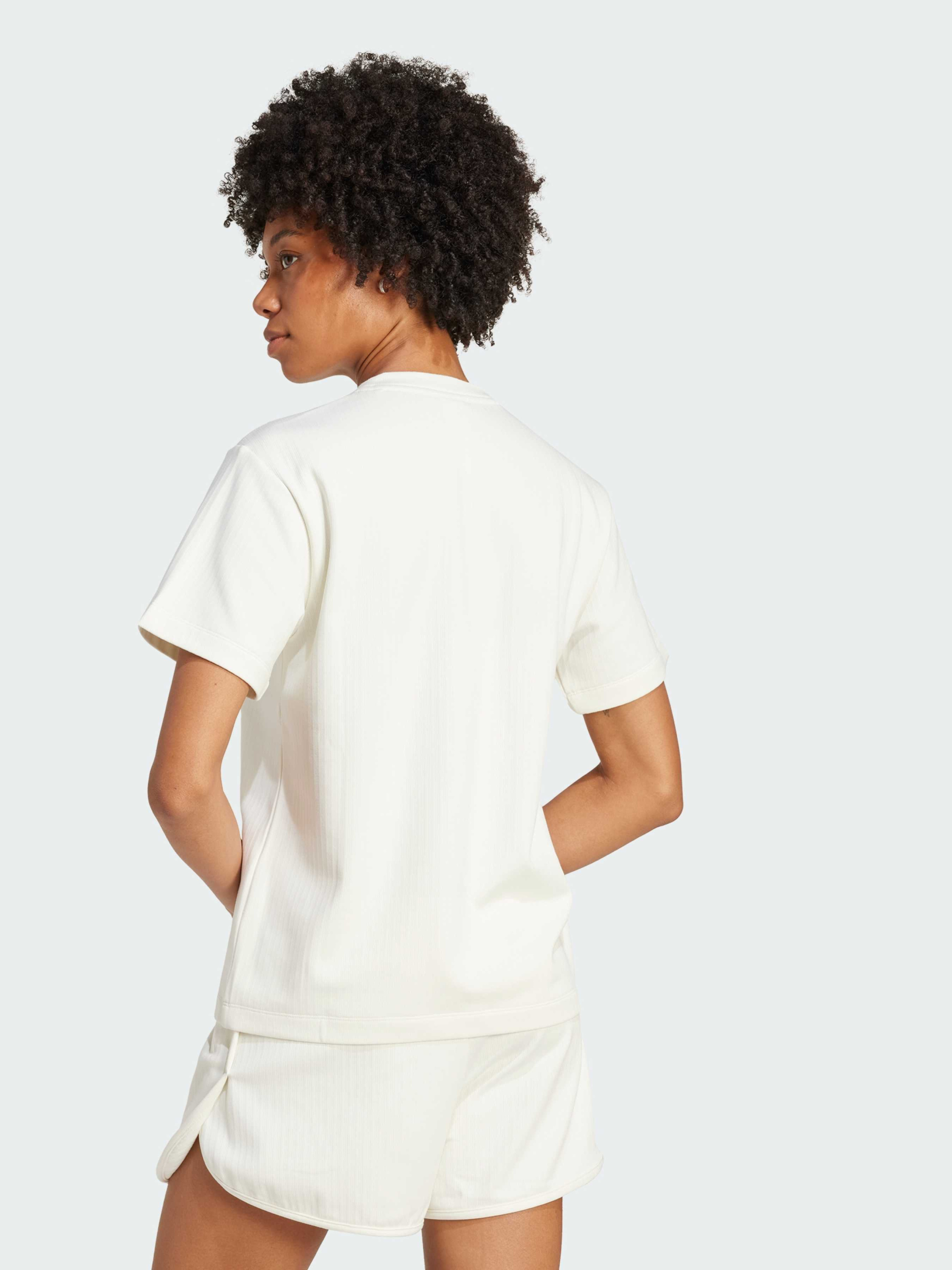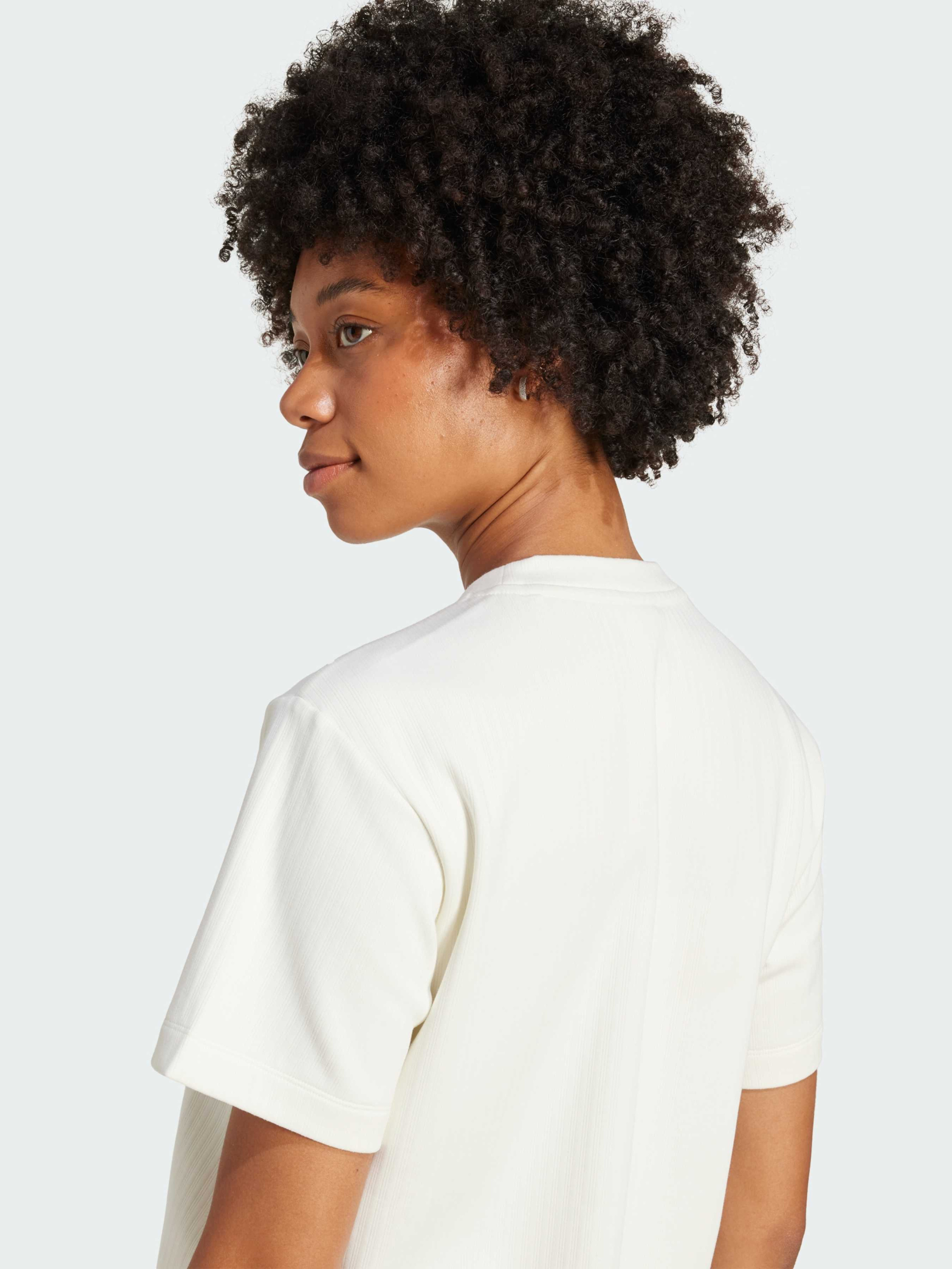 Характеристики 92% перероблений поліестер, 8% еластан Круглий виріз горловини Стандартний крій Опис Ця футболка adidas відрізняється універсальністю. Широкий трикотаж в рубчик надає тканині легку текстуру. Мінімалістичний дизайн дозволяє легко змінити образ - від невимушеного робочого дня до затишного вечора вдома.