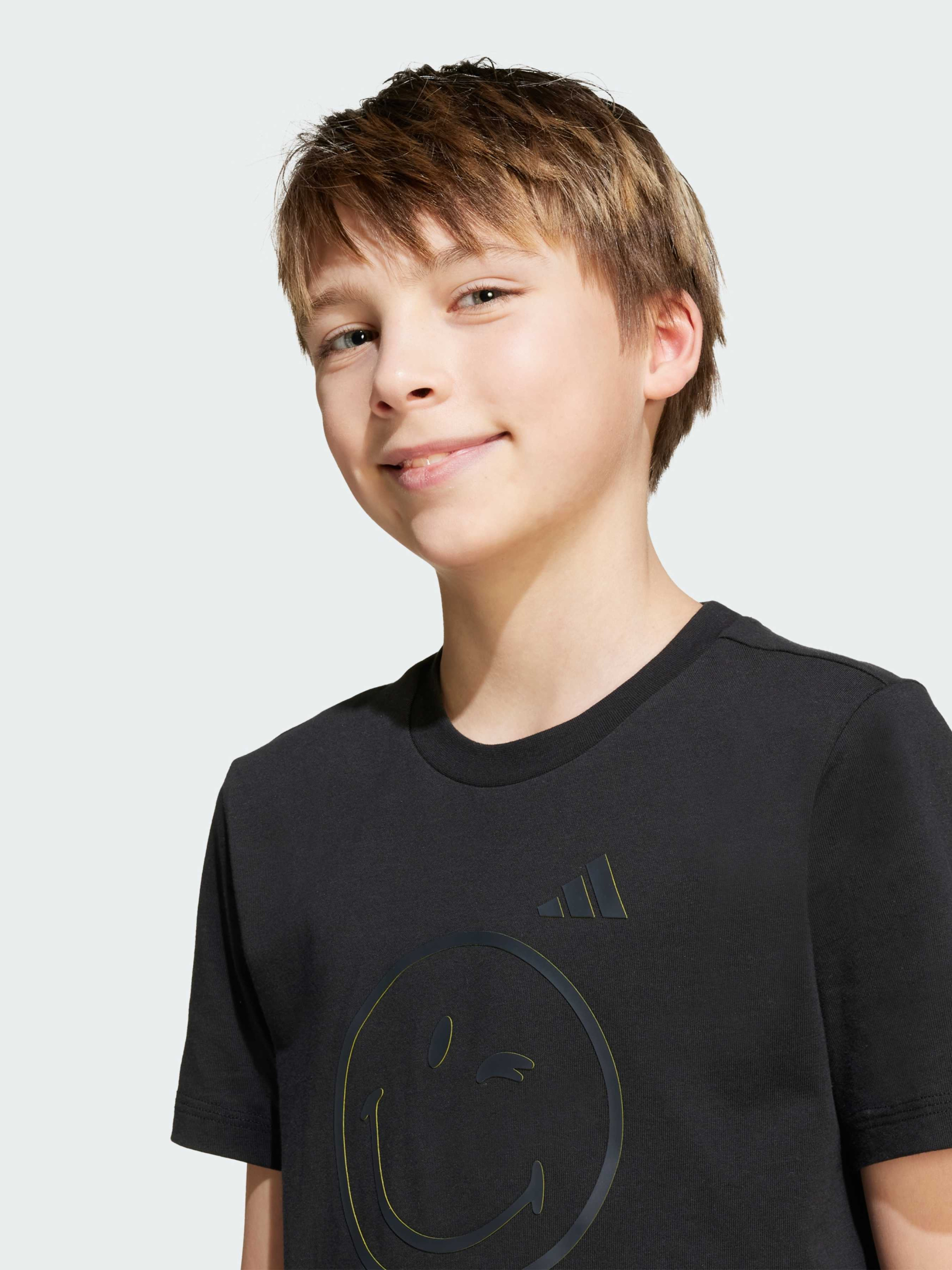 Характеристики 100% бавовна Круглий виріз горловини Стандартний крій Опис Поширюй позитив з цією футболкою для підлітків від adidas. Поєднання культового 3 Bar Logo і яскравого смайлика - це справжнє свято радості. Бавовняна тканина забезпечить комфорт на весь день, тож одягни цю футболку і насолоджуйся гарними моментами.