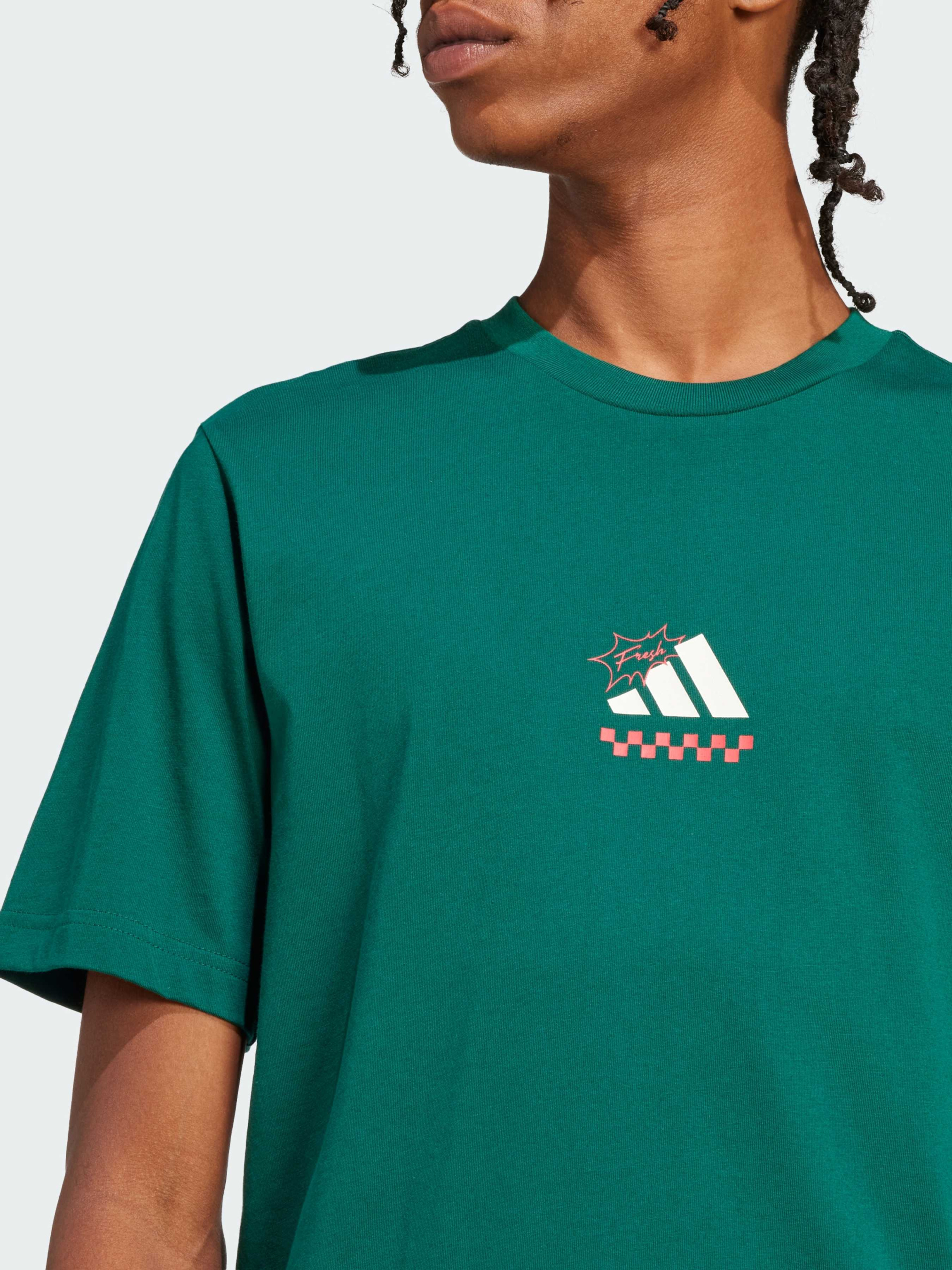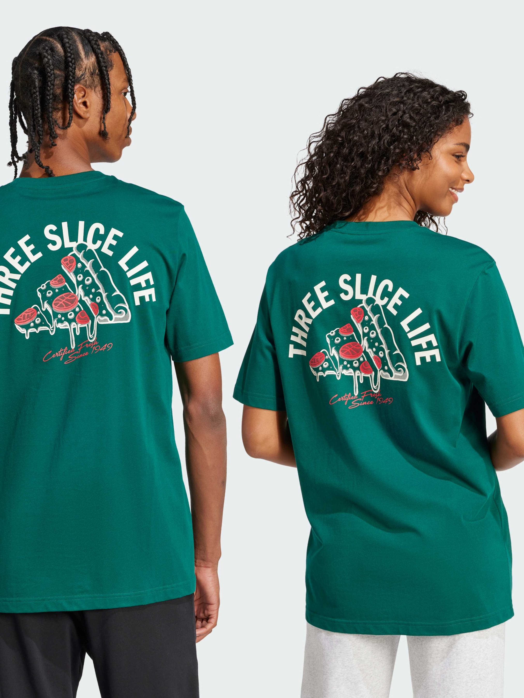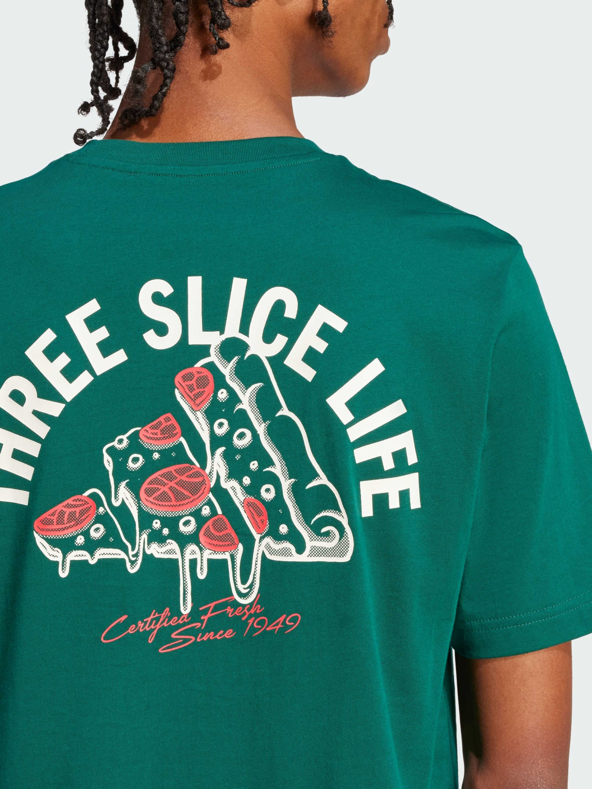 Характеристики 100% бавовна Круглий виріз горловини Різнокольоровий 3 Bar Logo на грудях Стандартний крій Опис Вислови свою пристрасть до життя в цій футболці adidas. Зручна та стильна, вона виготовлена з м'якої бавовни, що забезпечує комфорт. Чудовий вибір для гурманів і шанувальників піци - графіка з піцою на спині передає радість від улюбленої їжі. Йде розмір в розмір. Ми радимо замовити цю модель в твоєму звичайному розмірі.