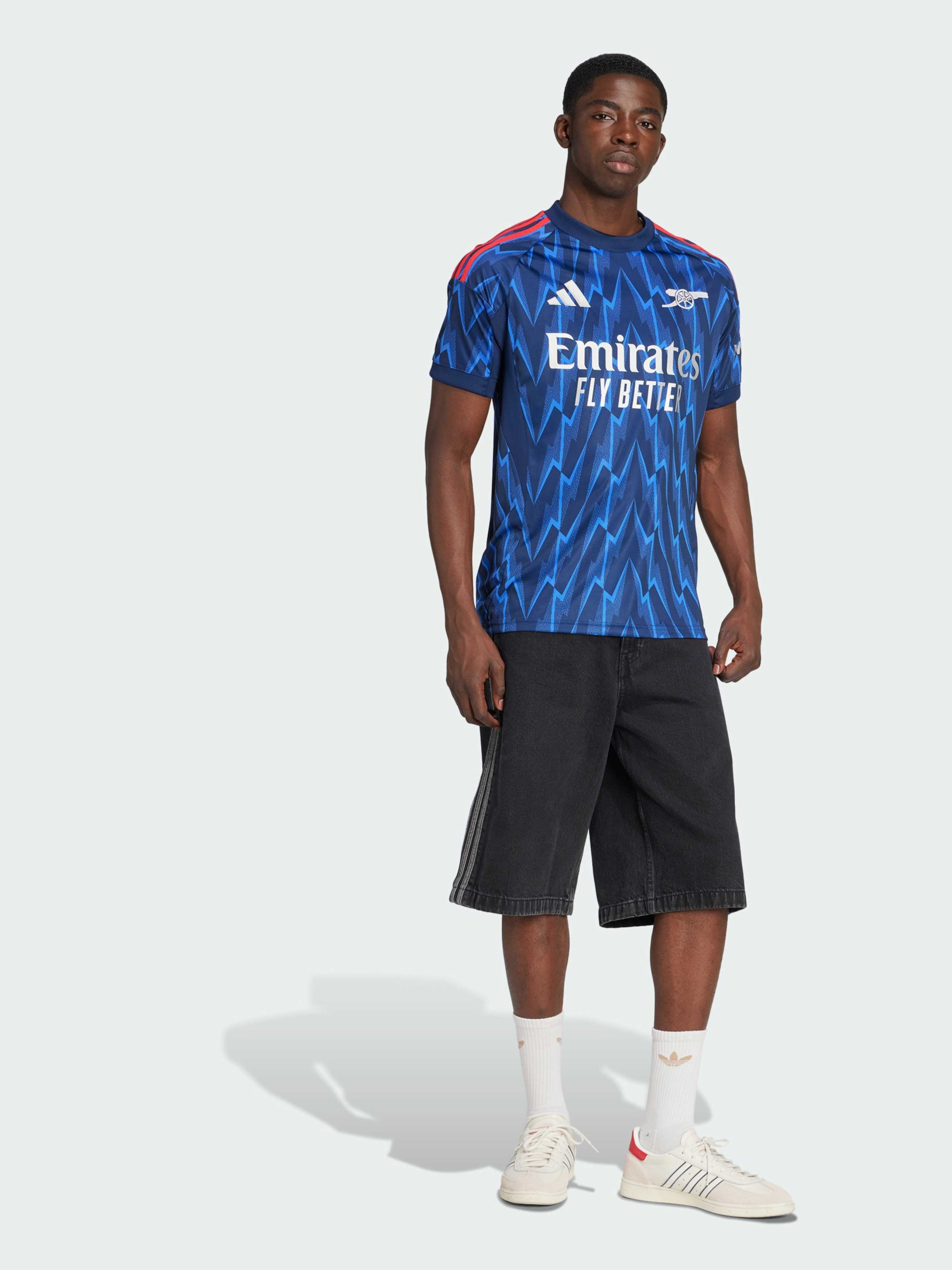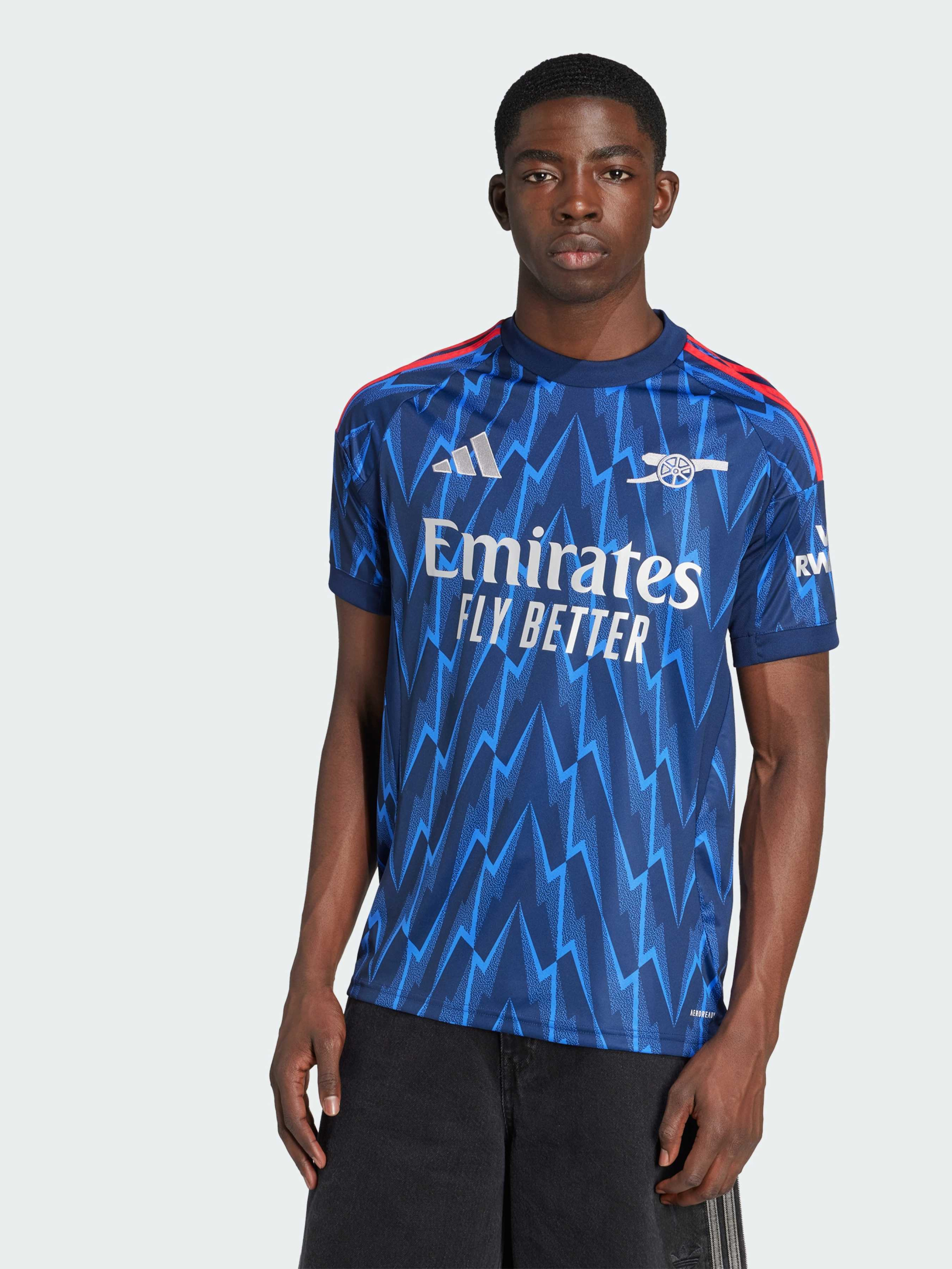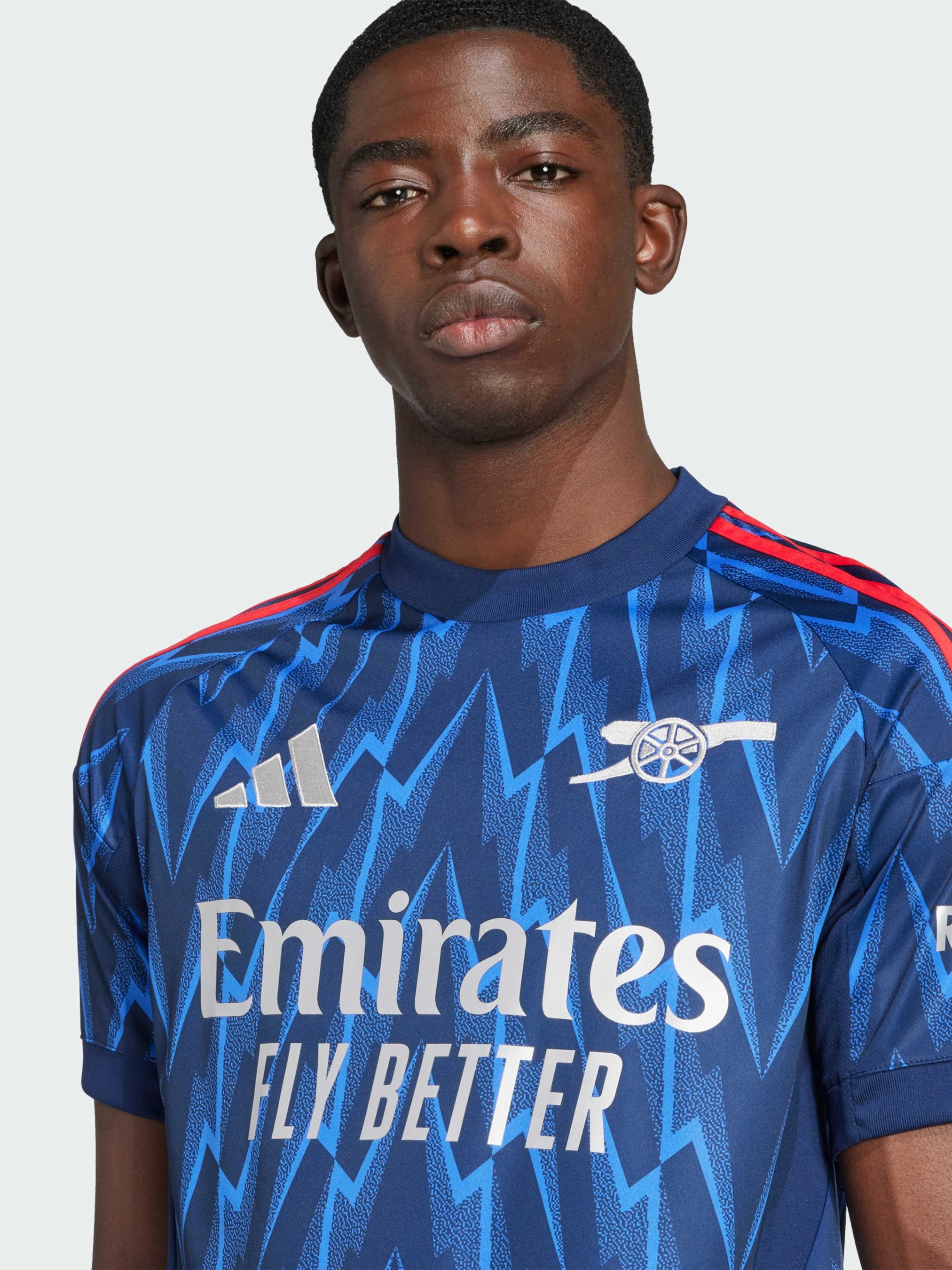 Характеристики 100% перероблений поліестер AEROREADY Значок з вишитою гарматою Арсенал Круглий виріз горловини Облягаючий крій Опис Згадай історію «Арсеналу», і ти побачиш, що блискавка була незмінним символом. Яскравий світло-синій і темно-синій принт по всьому виробу нагадує про найкращі моменти історії клубу. Технологія AEROREADY зберігає сухість, а м'яка тканина інтерлок забезпечує комфорт протягом усього дня, дозволяючи фанатам з упевненістю підтримувати свою команду.