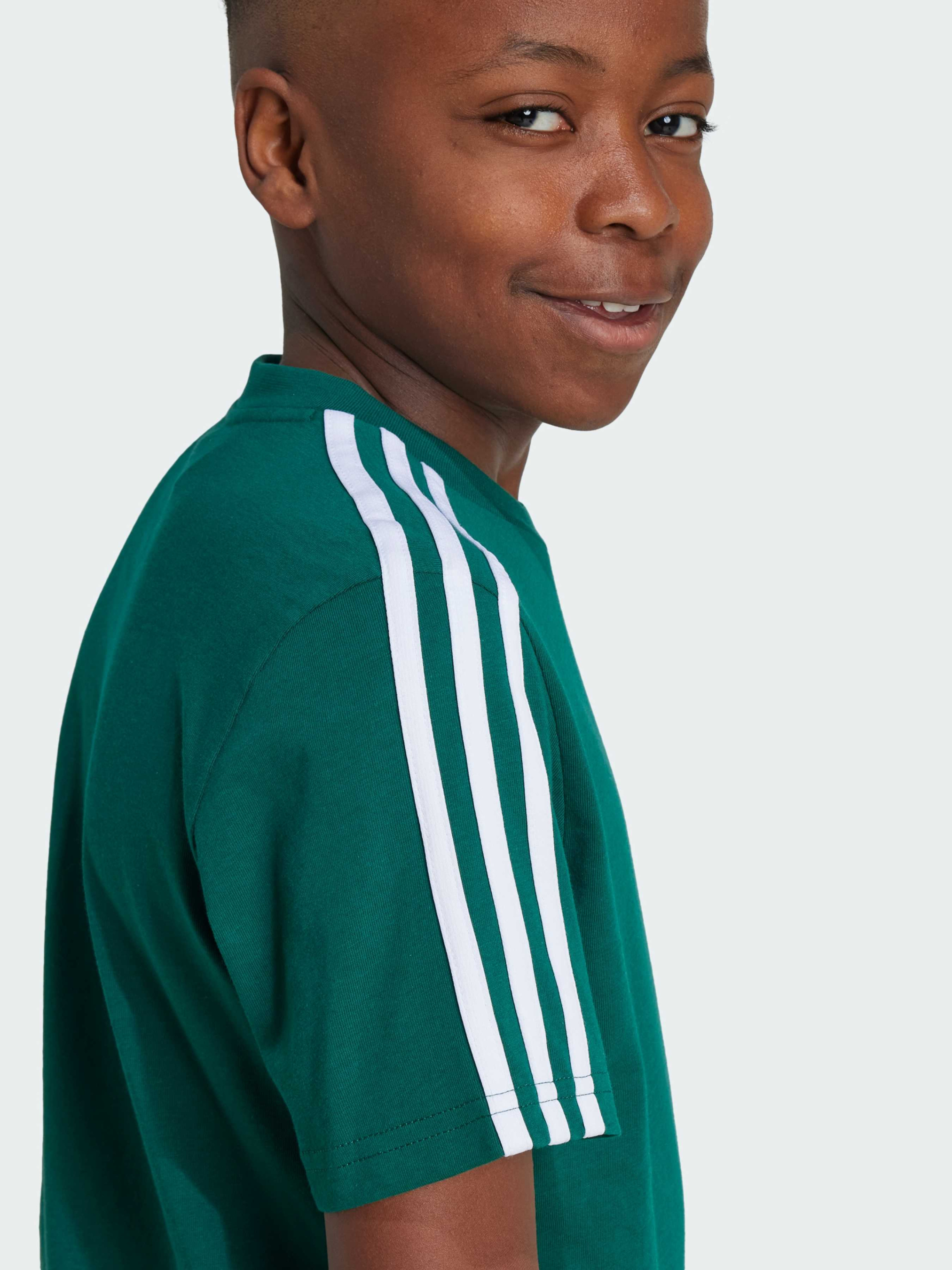 Характеристики Класичний крій Рифлений круглий виріз горловини Тонкий трикотаж: 100% бавовна Виготовлено у рамках ініціативи Better Cotton Опис Немає нічого кращого за надійну футболку, яку можна вдягнути перед виходом з дому. Ця підліткова футболка adidas виготовлена із м'якого бавовняного джерсі для легкості та комфорту. Накладні три смужки проходять від горловини до рукавів, що надає футболці класичного вигляду. Купуючи наш бавовняний одяг, ти підтримуєш екологічніше вирощування та обробку бавовни.