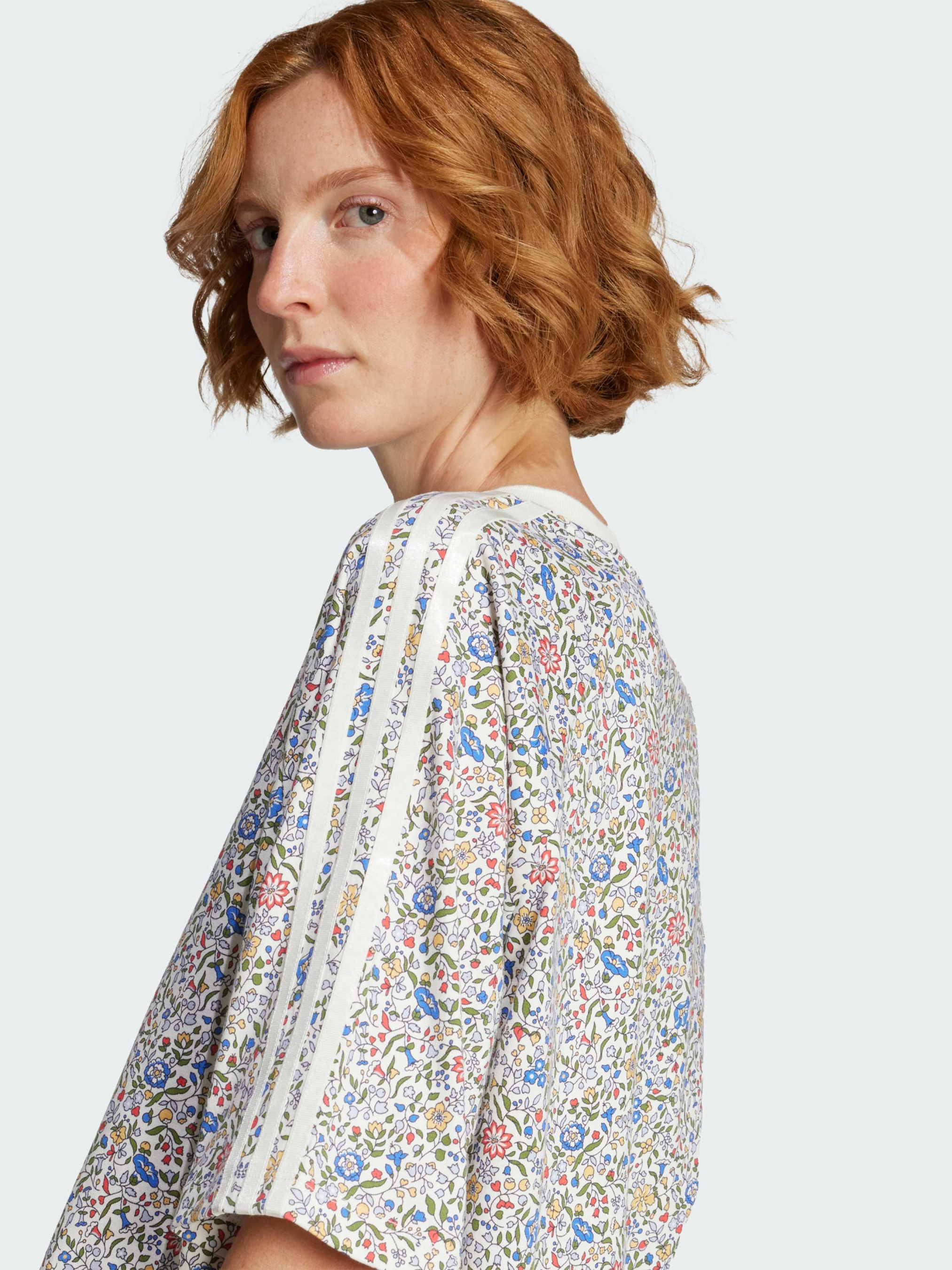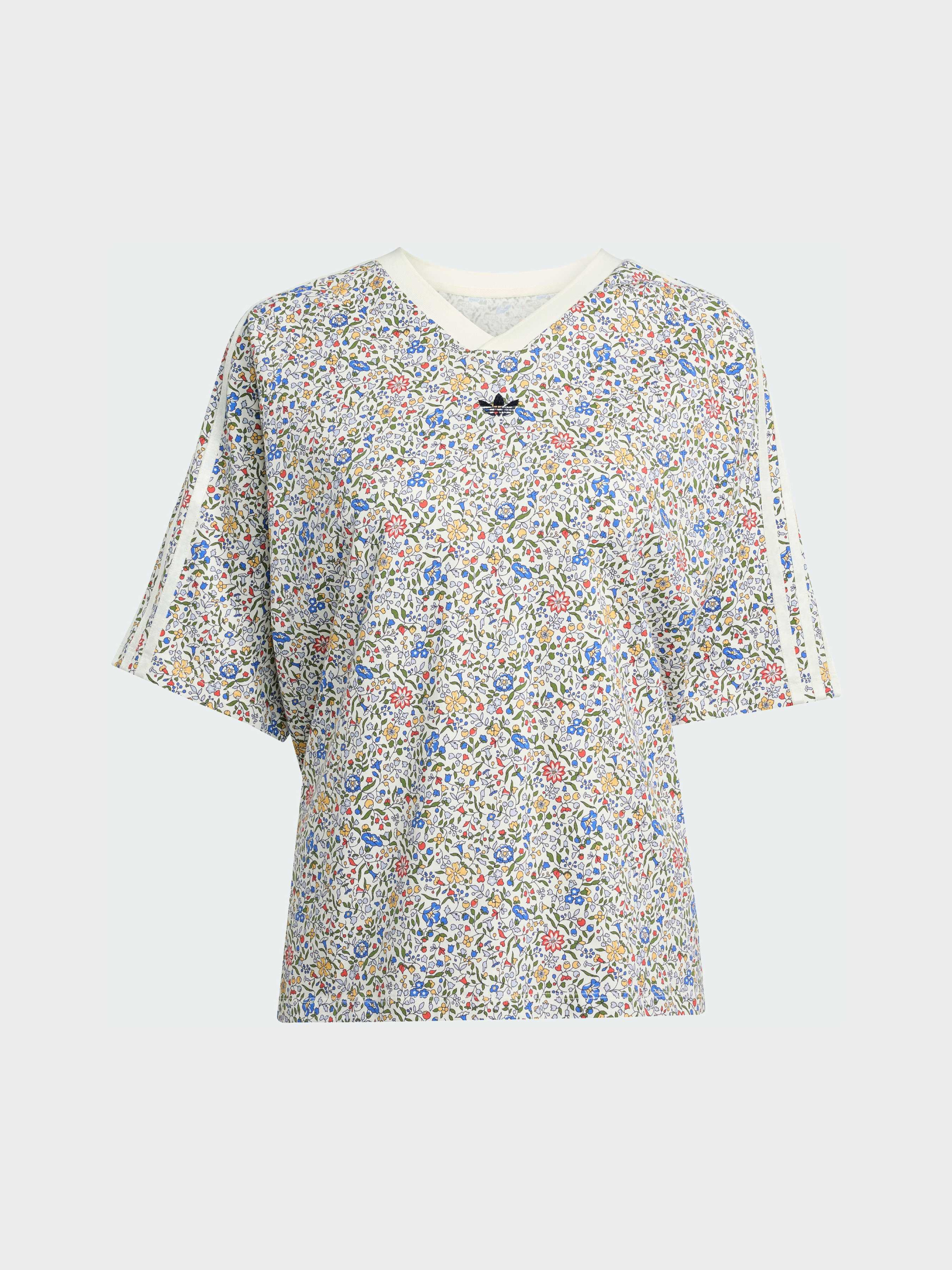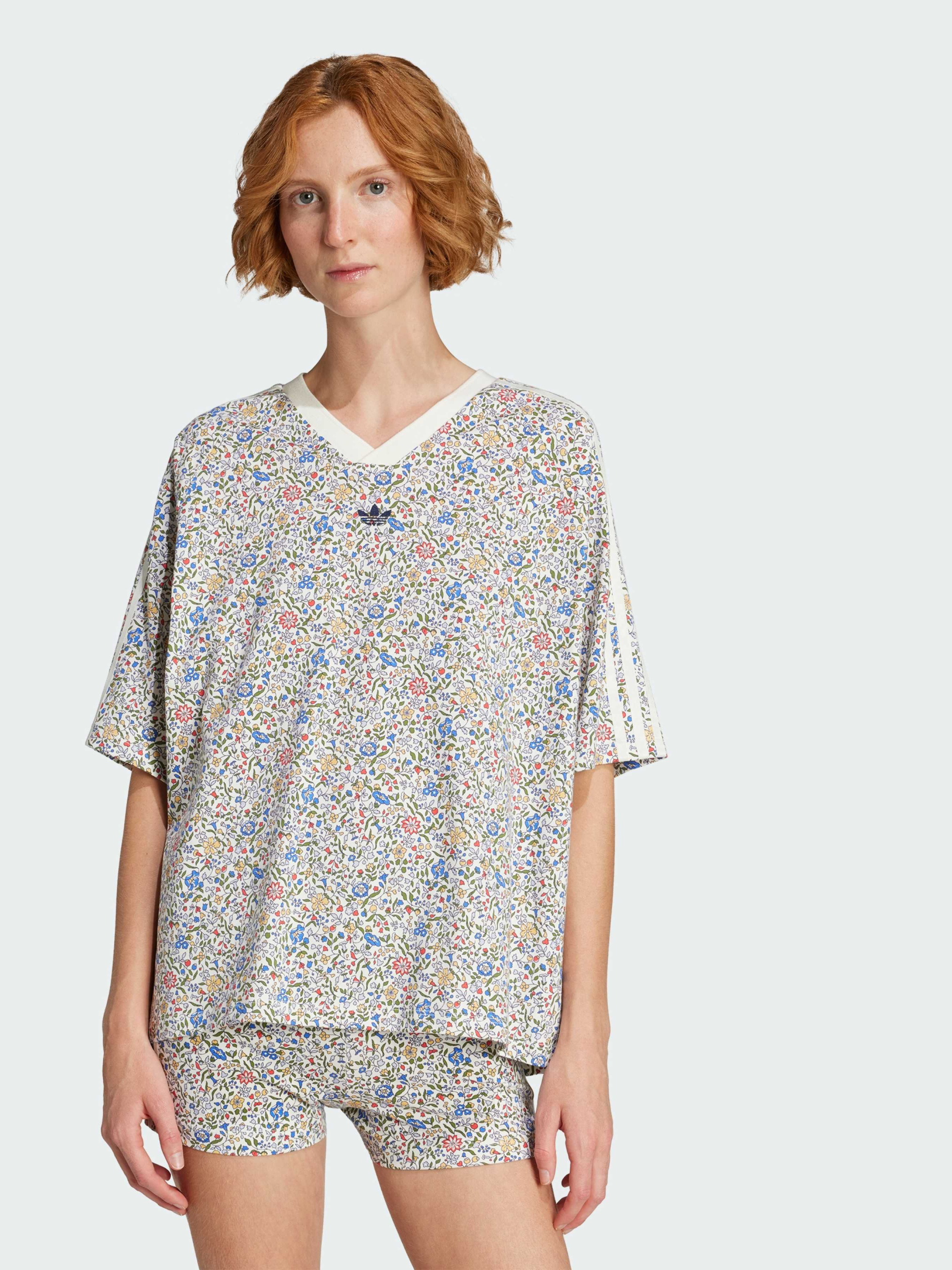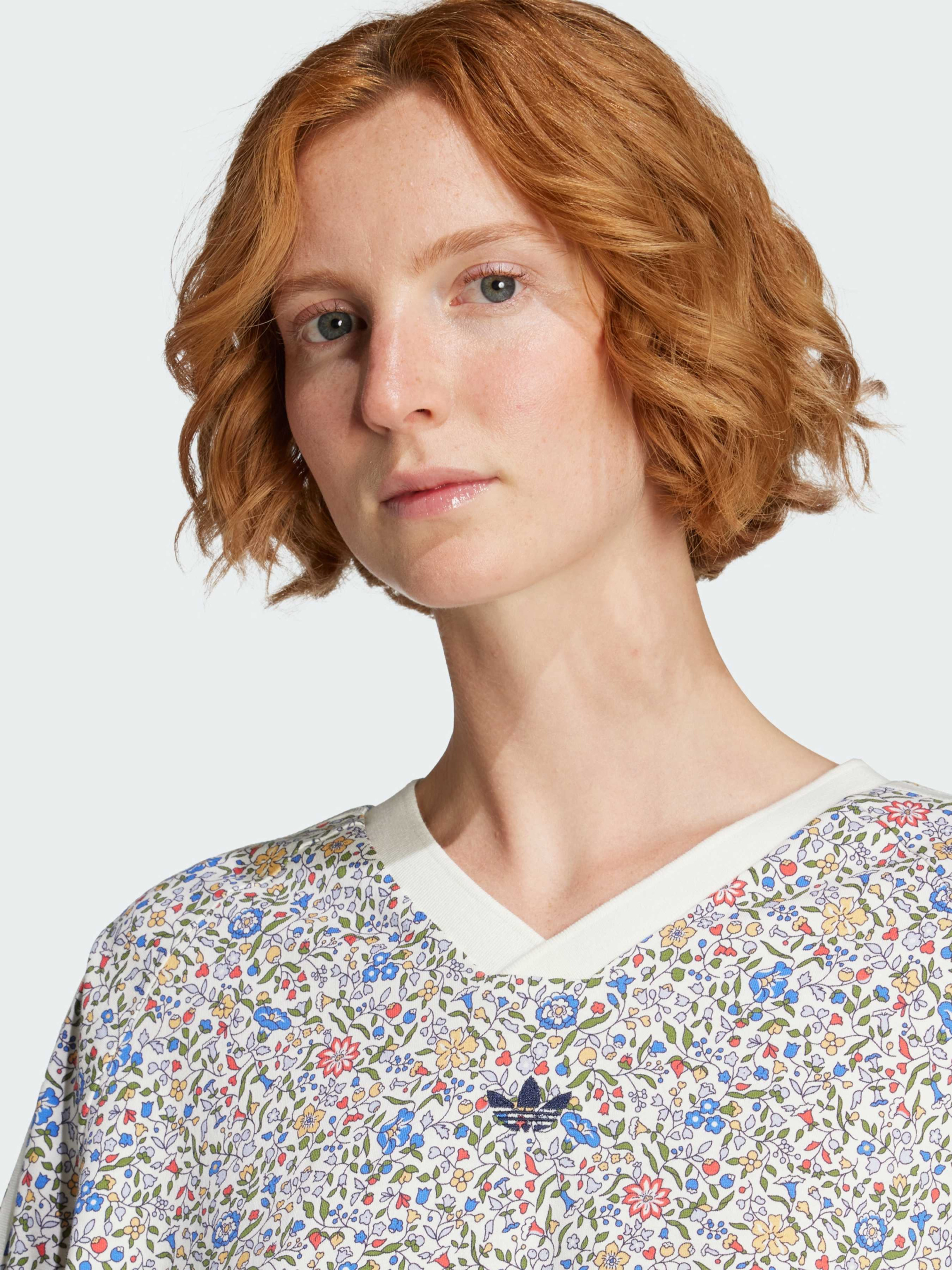 Характеристики 100% бавовна Крій оверсайз Суцільний принт Опис Ця футболка adidas, що поєднує в собі спортивну спадщину і флористичну майстерність, привносить свіжий погляд в повсякденний стиль. Класичний крій доповнений принтом Liberty London, що привносить яскраві кольори і ботанічні деталі в фірмовий образ. Ця футболка, виконана з м'якого бавовняного трикотажу, ідеально підходить для поєднання з джинсами або під піджак.