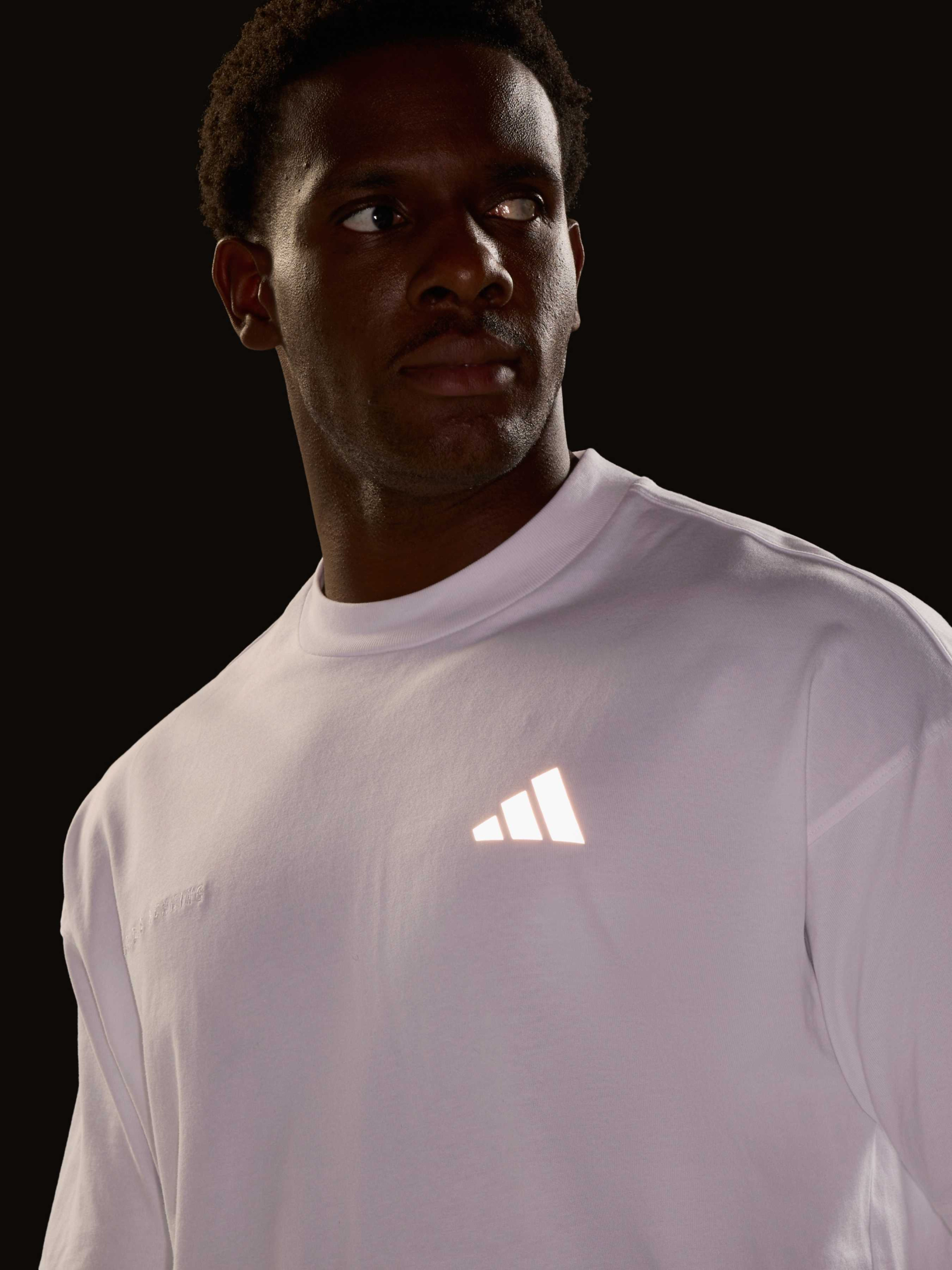 Характеристики 100% бавовна Круглий виріз горловини Вільний крій Спущене плече Стандартна довжина Світловідбивні елементи Логотип adidas Performance Running Ребристий низ 2x2 Принт ззаду Опис Футболка adi365 Cheering створена для тих, хто обирає поєднання комфорту та стилю. Швидковисихаюча тканина ефективно відводить вологу, зберігаючи відчуття свіжості під час пробіжки або активного відпочинку. Вільний крій і спущена лінія плечей забезпечують максимальну свободу рухів. Сучасна графіка надає образу динаміки, а світловідбиваючі деталі та логотип підвищують видимість у темний час доби. Футболка доповнюється брендованою стрічкою на комірі та еластичною обробкою на подолі, поєднуючи функціональність і спортивний стиль adidas.