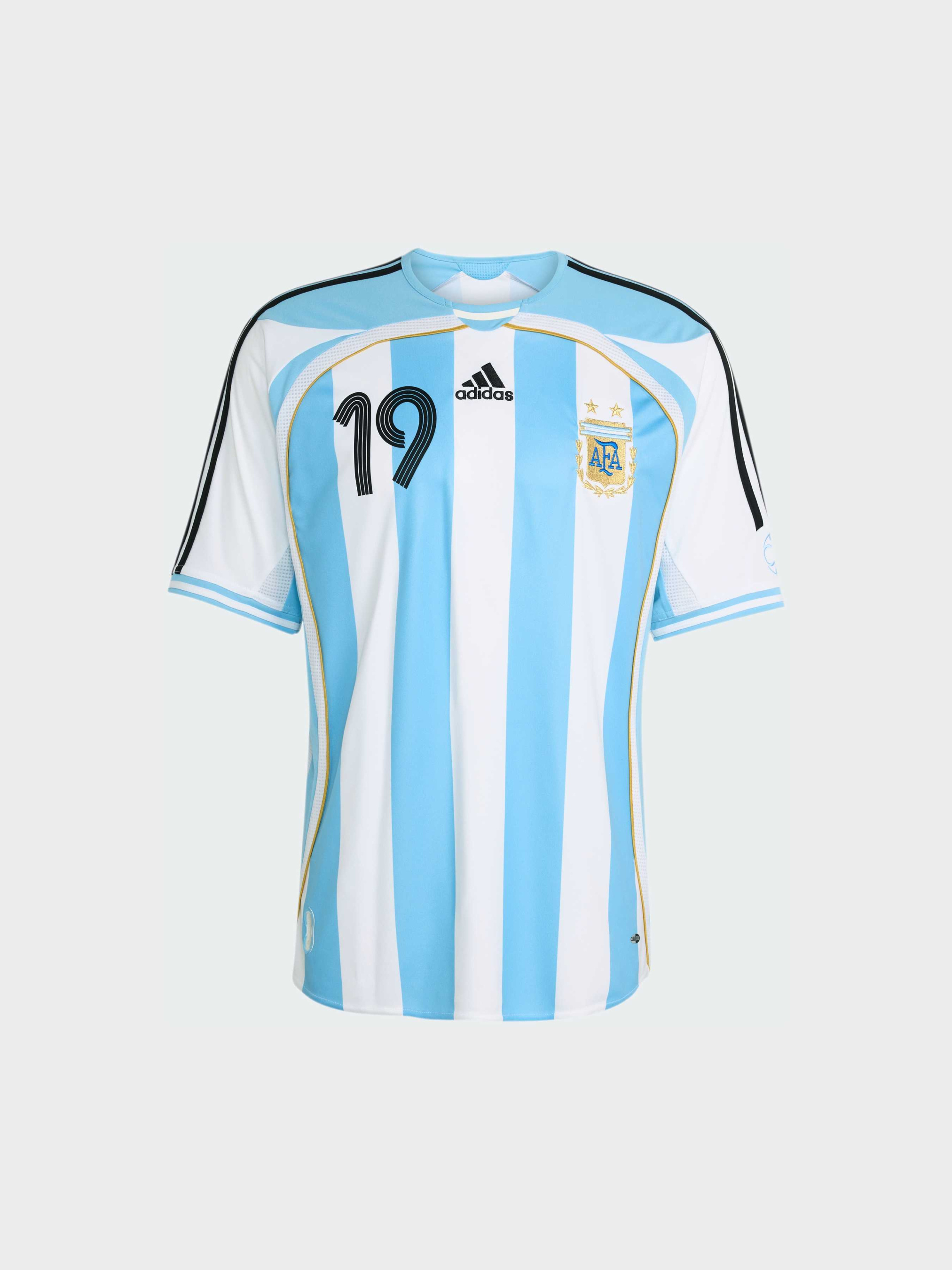 Характеристики 100% перероблений поліестер Ім'я та номер Мессі Інтерлок Стандартний крій Круглий виріз горловини Логотип Performance Три смужки Опис Домашня футболка Argentina 2006 повертає легендарний дизайн з ім'ям і номером великого гравця, поєднуючи ностальгію і стиль. Тканина інтерлок забезпечує комфорт і довговічність, а класичний крій створює ідеальний силует. Логотип adidas і герб збірної Аргентини підкреслюють твій зв'язок з духом гри. Носи з гордістю і демонструй підтримку одному з найвидатніших футболістів всіх часів - це джерсі для справжніх фанатів футболу.