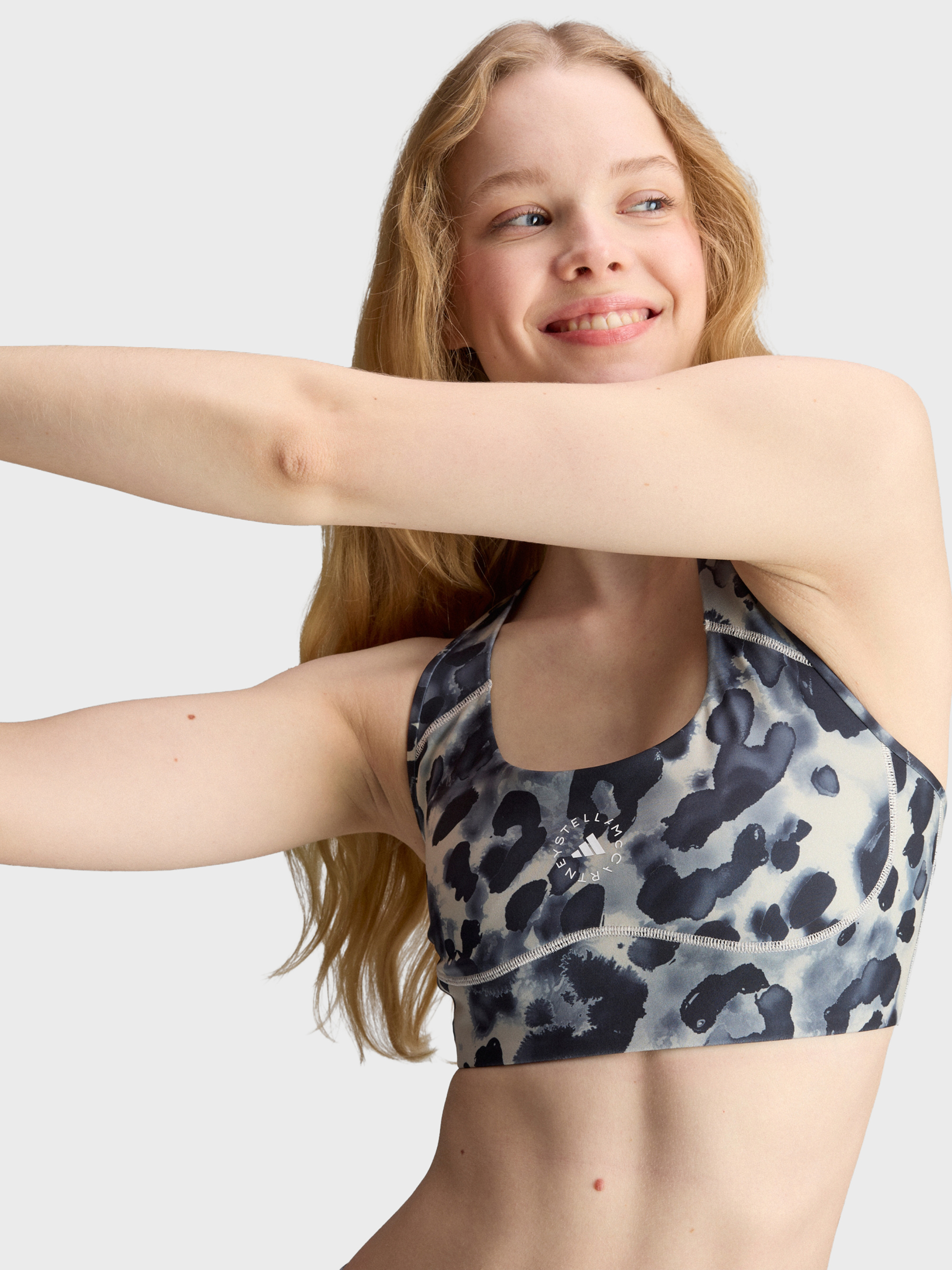 Характеристики Горловина із зав'язками на шиї Інтерлок Незнімні бретелі Основний матеріал: 79% перероблений поліестер, 21% перероблений еластан; Сітчаста частина: 82% перероблений поліестер, 18% еластан; Вкладиш бюстгальтера: зовнішня частина: 100% перероблений поліестер; середній шар: 100% поліуретан; внутрішня частина: 100% перероблений поліестер Середня підтримка Еластична застібка Знімні чашечки Опис Бра adidas by Stella McCartney Power Impact Training Medium Support Printed створено для забезпечення балансу комфорту і підтримки, що робить його придатним для тренувань середньої і високої інтенсивності. Унікальний анімалістичний принт додає елегантності, натхненний колекціями початку 2000-х років і втілює поєднання сили і м'якості. Знімні вкладиші забезпечують регульований комфорт, а зав'язка на шиї і еластична застібка гарантують надійну фіксацію і свободу рухів. Незалежно від того, чи займаєшся ти в спортзалі або йогою, це бра забезпечить стиль і підтримку. Відчуй поєднання моди і функціональності з adidas.
