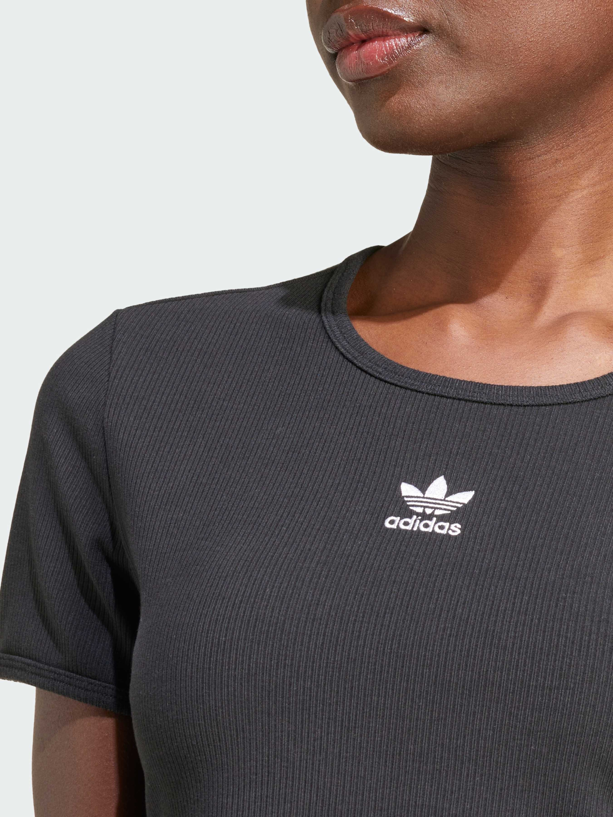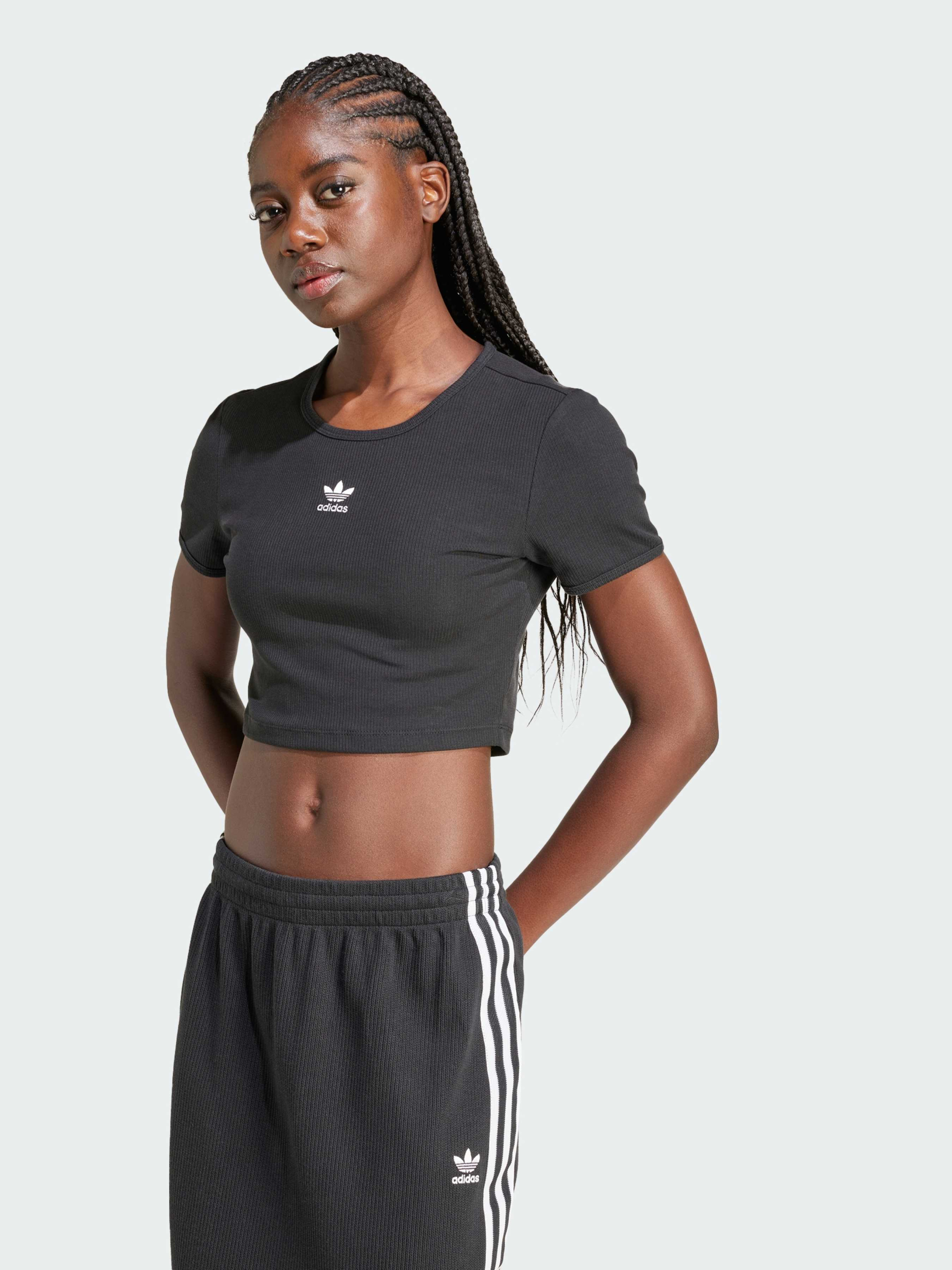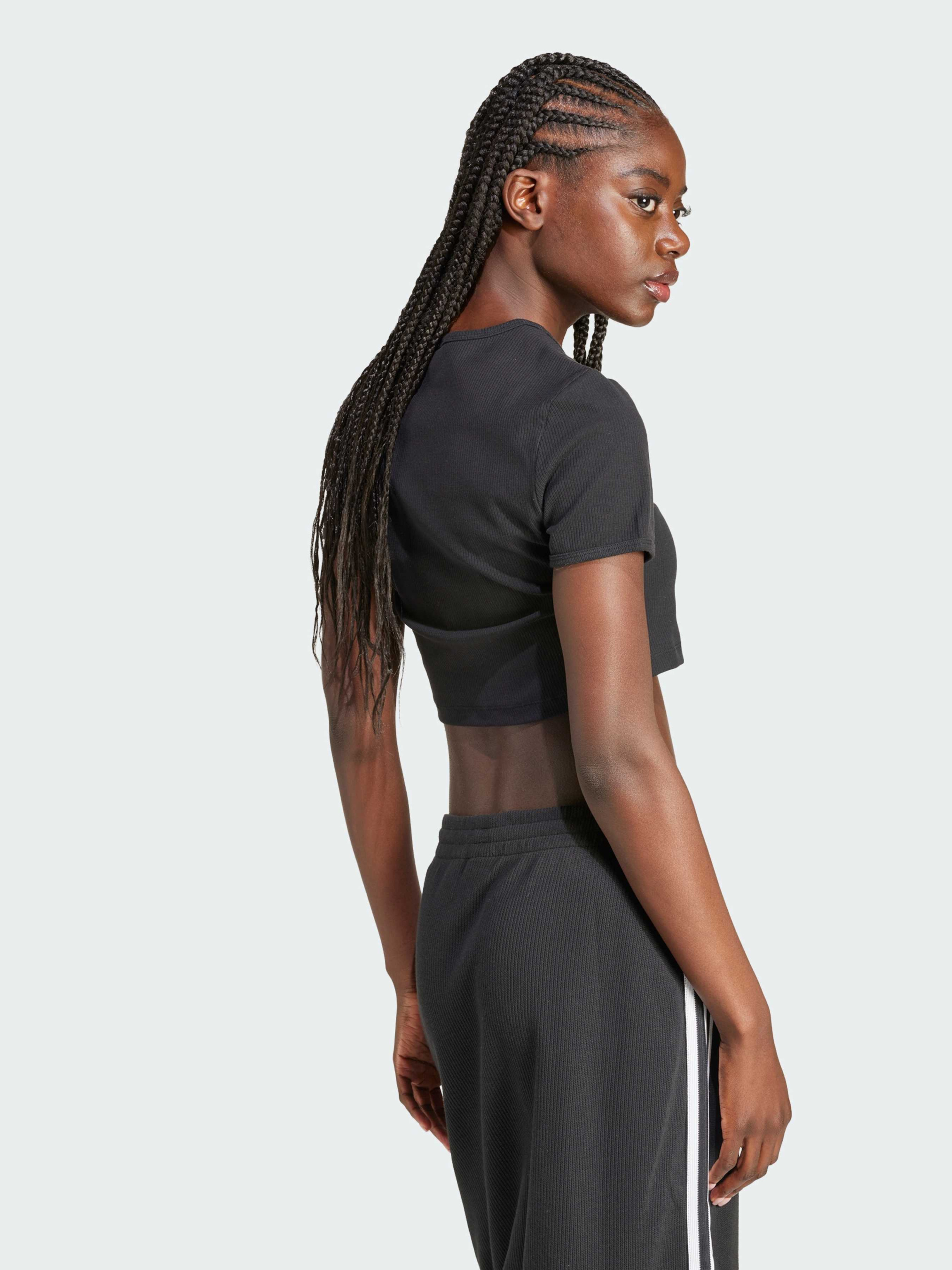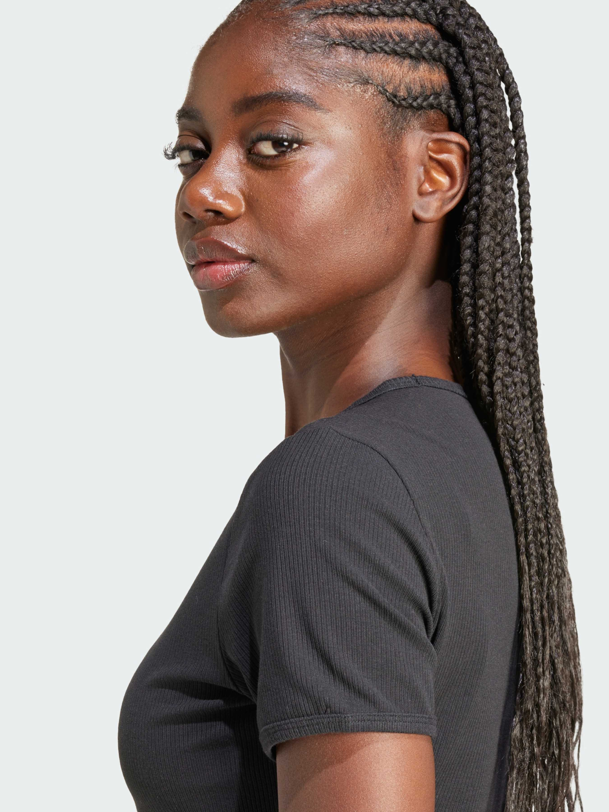 Характеристики 46% бавовна, 45% віскоза, 9% еластан Круглий виріз Облягаючий крій Опис Поринь у приталені силуети цієї футболки adidas і відчуй комфорт на абсолютно новому рівні. Тонкий трикотаж у рубчик і облягаючий крій обіймають твою фігуру, залишаючи свободу рухів. Довжина крою робить її універсальною річчю, яку можна поєднувати з джинсами з високою посадкою для вечірнього виходу або з джогерами в розслаблені дні.
