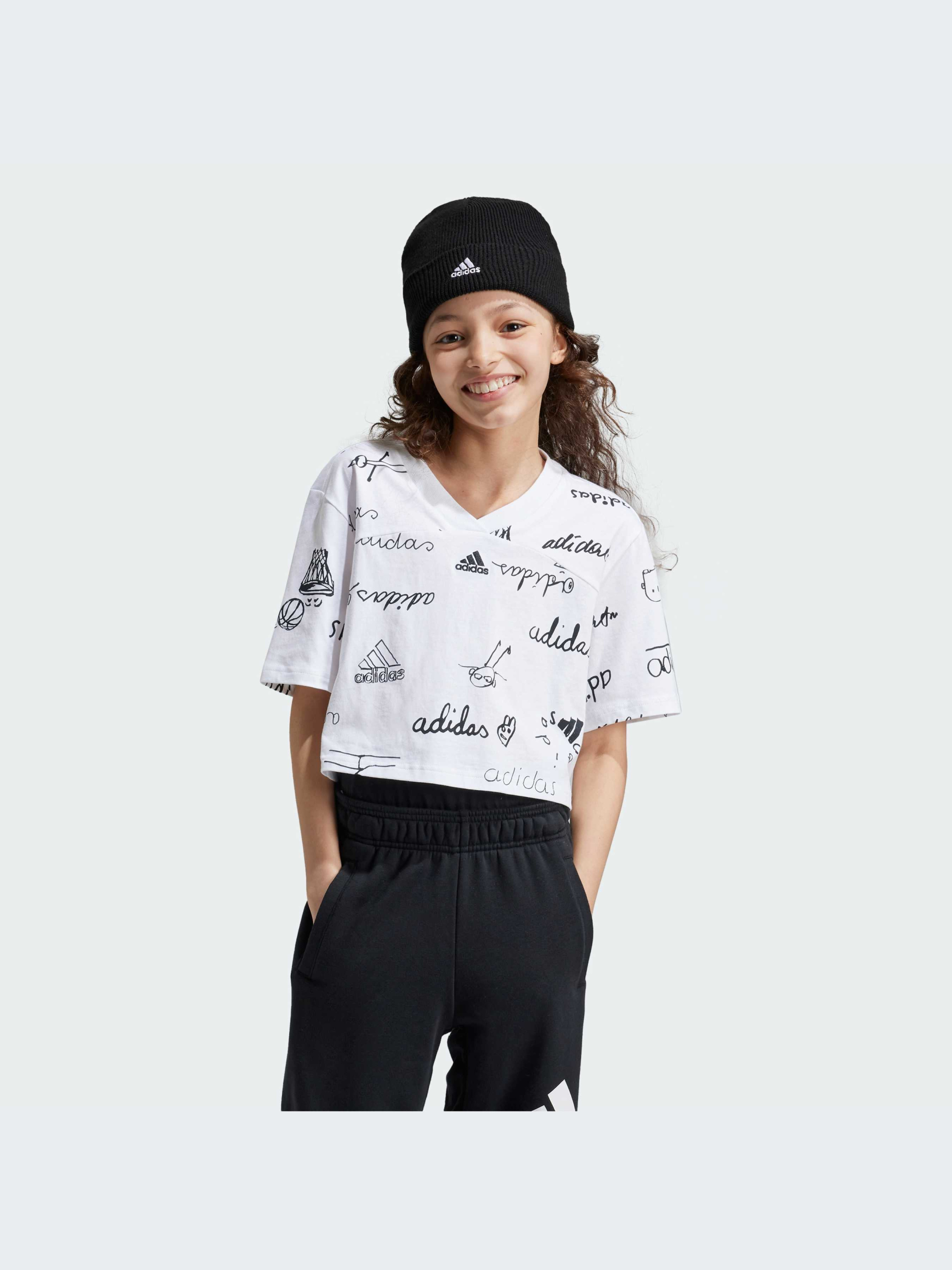 Ти - вільний дух зі своїм власним стилем, і ця підліткова футболка adidas дозволить тобі втілити його в життя. Натхненна підписом Аді Дасслера, вона використовує грайливий підхід до невимушеного стилю з начерками, що нагадують ілюстрації, зроблені вручну. Крій і ребристий V-подібний виріз додають сучасну спортивну нотку, а бавовняна тканина забезпечує комфорт. Коли ти святкуєш життя через самовираження, тобі потрібен стиль, який дасть змогу тобі виділитися. Бавовна для цього виробу була отримана завдяки Better Cotton. Бавовна Better Cotton поставляється за моделлю ланцюжка поставок, званої балансом мас. Це означає, що Better Cotton не можна фізично відстежити до кінцевого продукту.