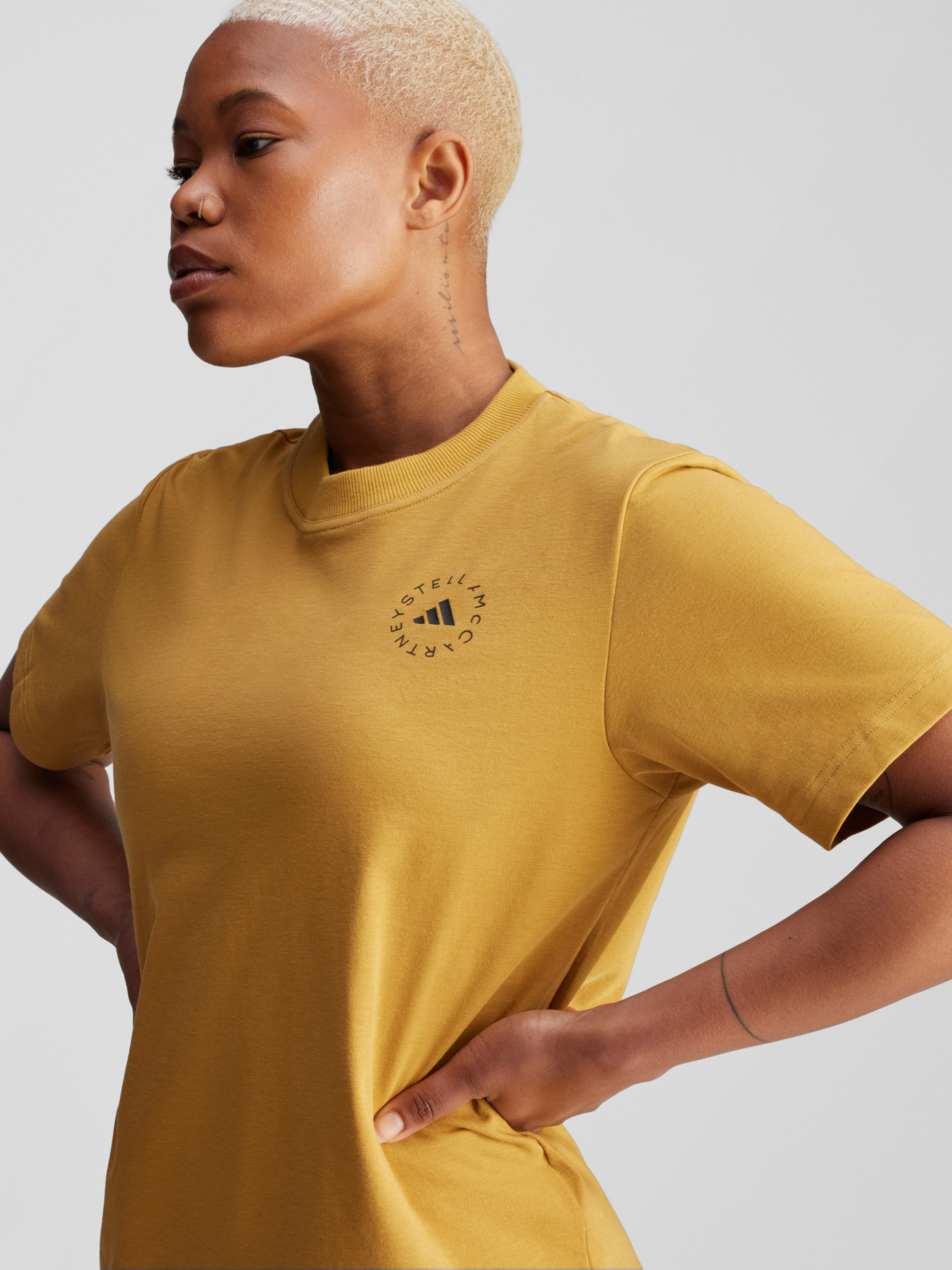 Характеристики 40% поліестер, 36% органічна бавовна, 24% перероблений поліестер (піке) Круглий виріз горловини Логотип adidas by Stella McCartney Стандартний крій Опис Мінімалістична, повсякденна і відповідна для будь-якого дня, ця футболка adidas by Stella McCartney створена на всі випадки життя. Проста біла футболка є ключовим елементом будь-якого гардероба, і ця модель демонструє, чому. Вона універсальна і зручна, а це означає, що ти можеш носити її з чим завгодно і куди завгодно. Йде розмір в розмір. Ми радимо замовити цю модель в твоєму звичайному розмірі.