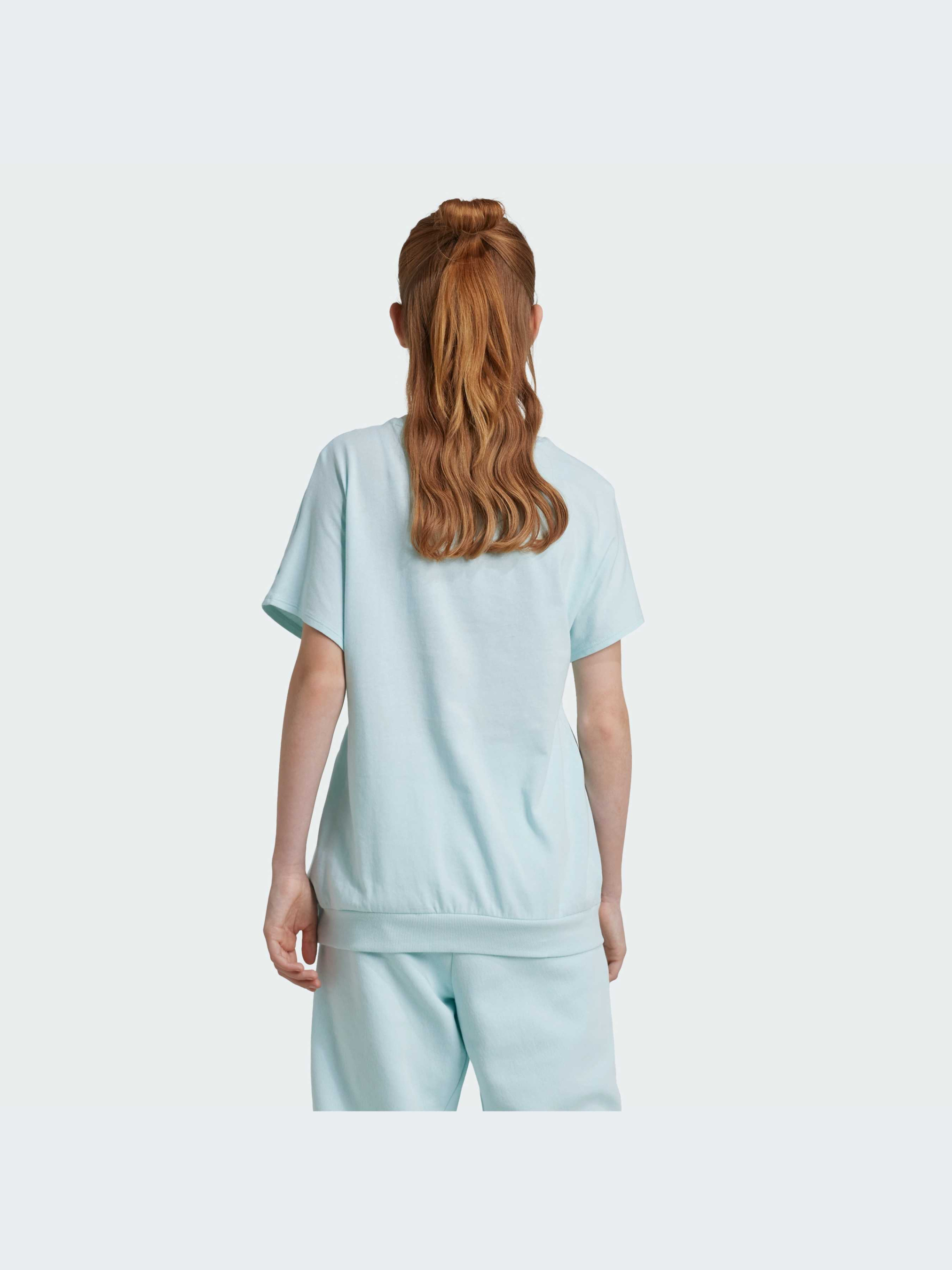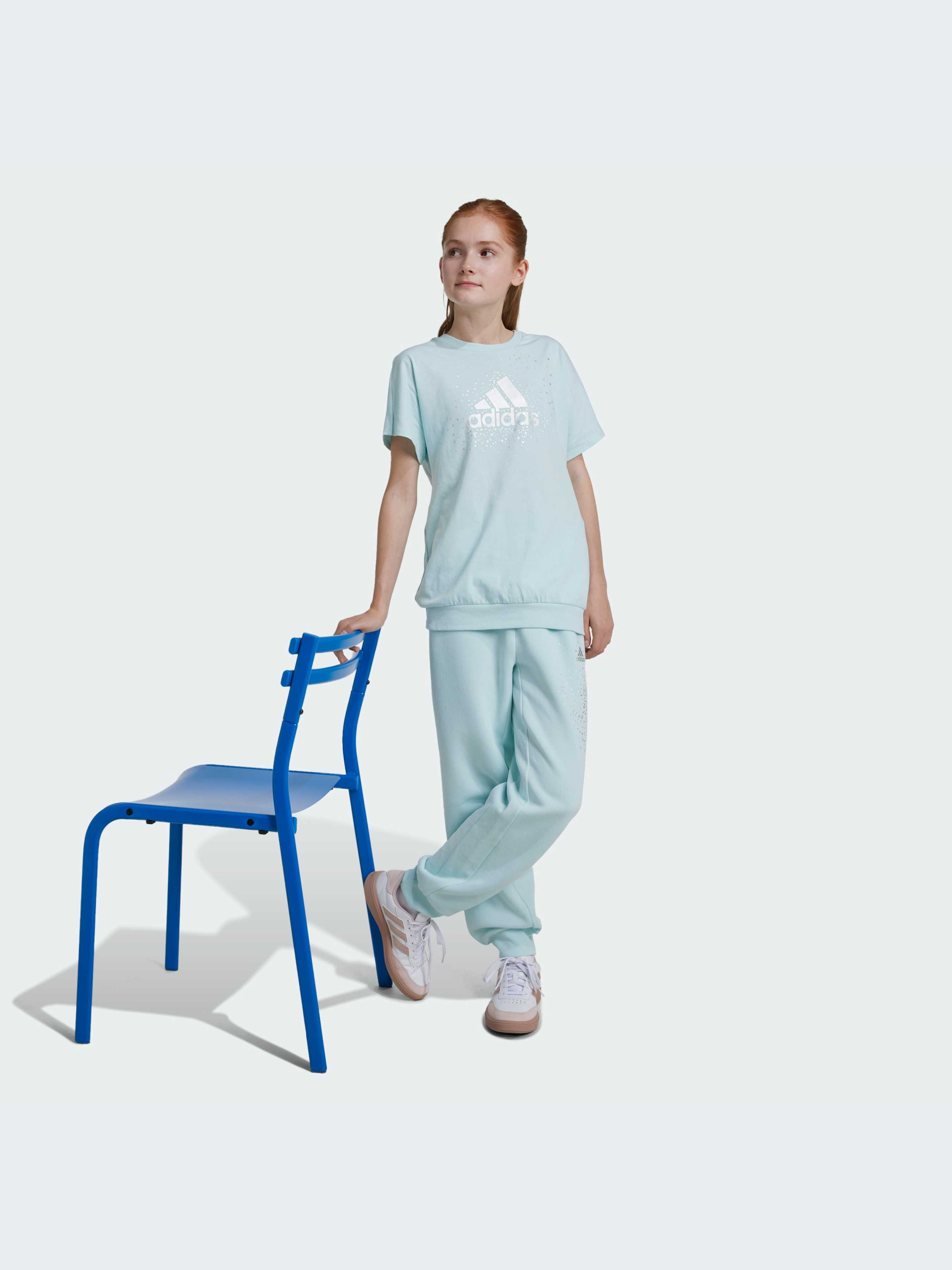 Мрії про ковзання по ковзанці надихнули на створення цієї підліткової футболки adidas, покритої чарівним пилом. Взявши за основу блискучі віддзеркалення на скляній поверхні, вона надає спортивному значку свіжий переливчастий стиль. М'яка бавовна затишно обіймає тебе, а ребристий поділ надає силуету форму. Останній штрих: інтерактивна наклейка з переливчастим дизайном, яку можна розмістити там, де забажає серце. Бавовна для цього виробу була отримана завдяки Better Cotton. Бавовна Better Cotton поставляється за моделлю ланцюжка поставок, що називається балансом мас. Це означає, що Better Cotton не можна фізично відстежити до кінцевого продукту.