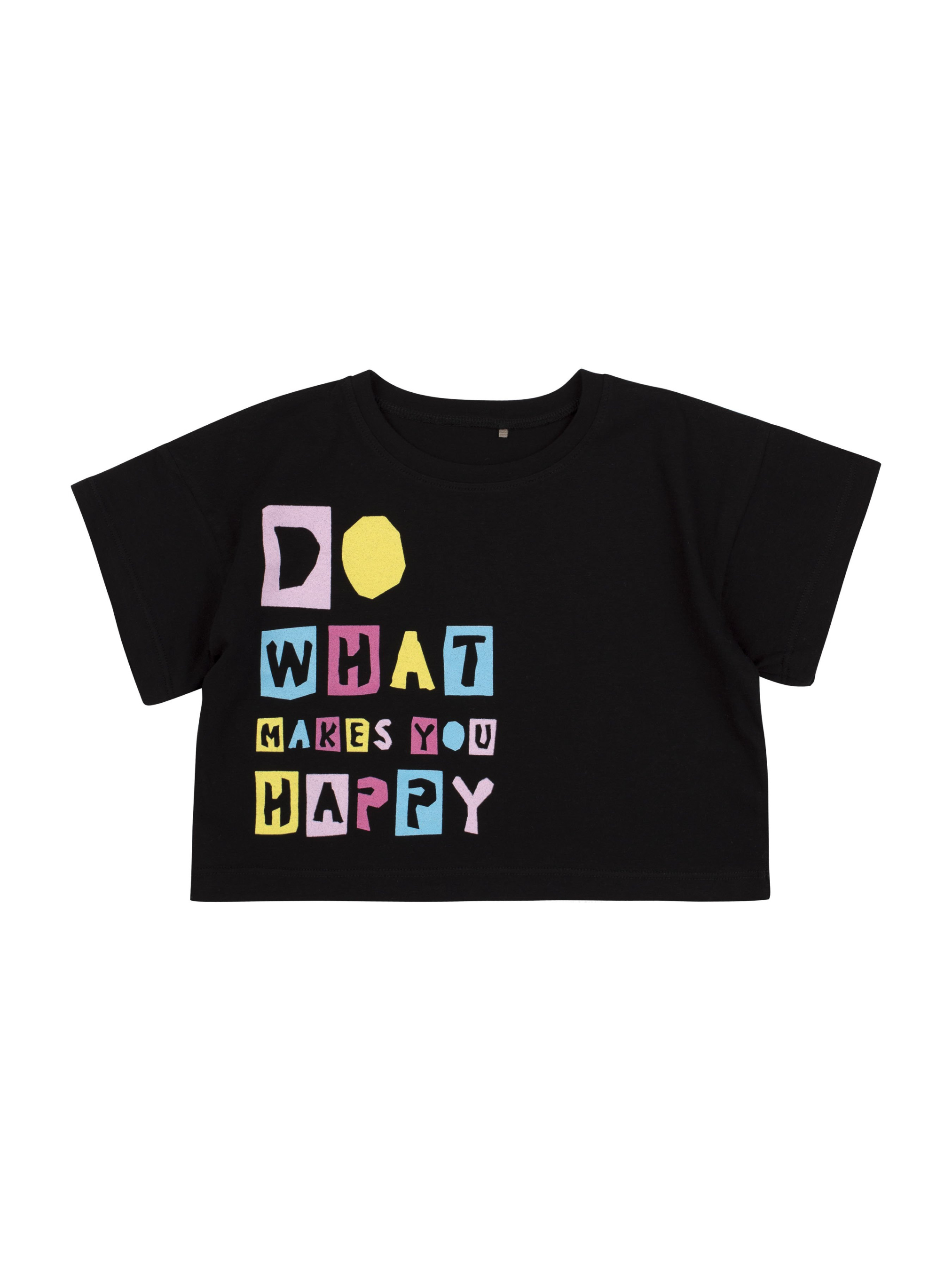 Футболка прямого силуету. Тканина однотонна. Рукав вшивний, короткий. Перед оздоблений друком. Горловина оброблена кантом.