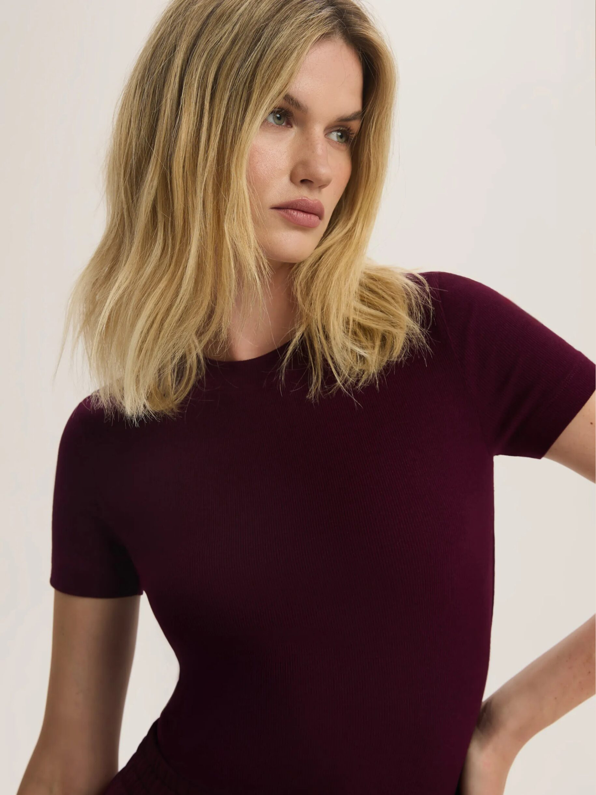 Жіноча приталена футболка з круглим вирізом NADIANKA 255 / ID: 10047785 Зріст моделі: 176 см Розмір товару: S Забезпечує м'якість, повітропроникність та чудове прилягання до тіла: - універсальний, приталений крій, - короткі рукави, - еластична структура. Зовнішній склад 60% бавовна 35% віскоза 5% еластан Догляд: - прання при максимум 30 °С - делікатні речі - не відбілювати - не сушити в сушильній машині - прасувати максимум при темп. 110 °С - не піддавати хімчистці Розмір: XS S М L XL Довжина спинки: 53 55 57 59 61 Ширина знизу: 36,5 38,5 40,5 42,5 44,5 Ширина під пахвами: 35 37 39 41 43 Довжина рукава: 17 18 19 20 21