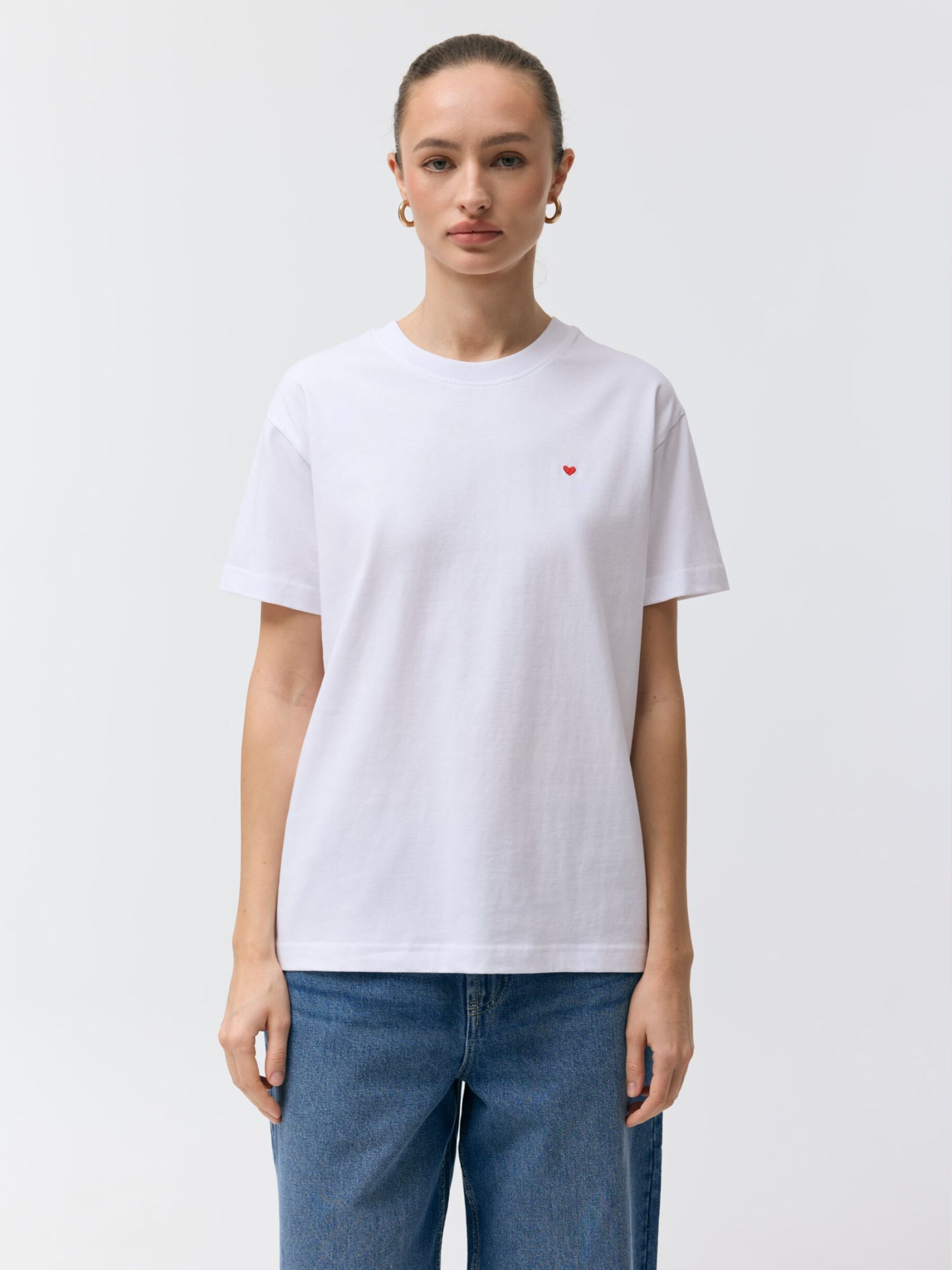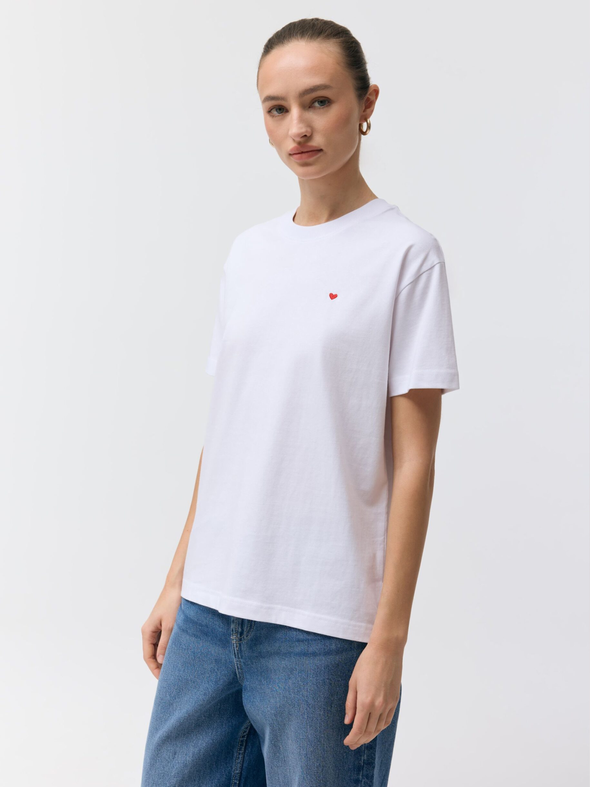 Футболка LAZMO / ID: 10049236 Зріст моделі: 176 см Розмір товару: S Жіноча футболка - звичайний крій, - контрастна аплікація у формі серця, - круглий виріз горловини, - короткі рукави. Ідеально підходить як основа для повсякденного одягу – ідеально підходить для прогулянок або зустрічей з друзями. Зовнішній склад 100 % бавовна Догляд: - прання при максимум 30 °С - делікатне прання - не відбілювати - не сушити в сушильній машині - прасувати за максимальної температури 110 °C - не піддавати хімчистці Розмір: XS, S, М, L, XL, Довжина спинки: 59,5, 61,5, 63,5, 65,5, 67,5, Ширина знизу: 48,5, 50,5, 52,5, 54,5, 56,5, Ширина під пахвами: 48, 50, 52, 54, 56, Довжина рукава: 16, 17, 18, 19, 20,
