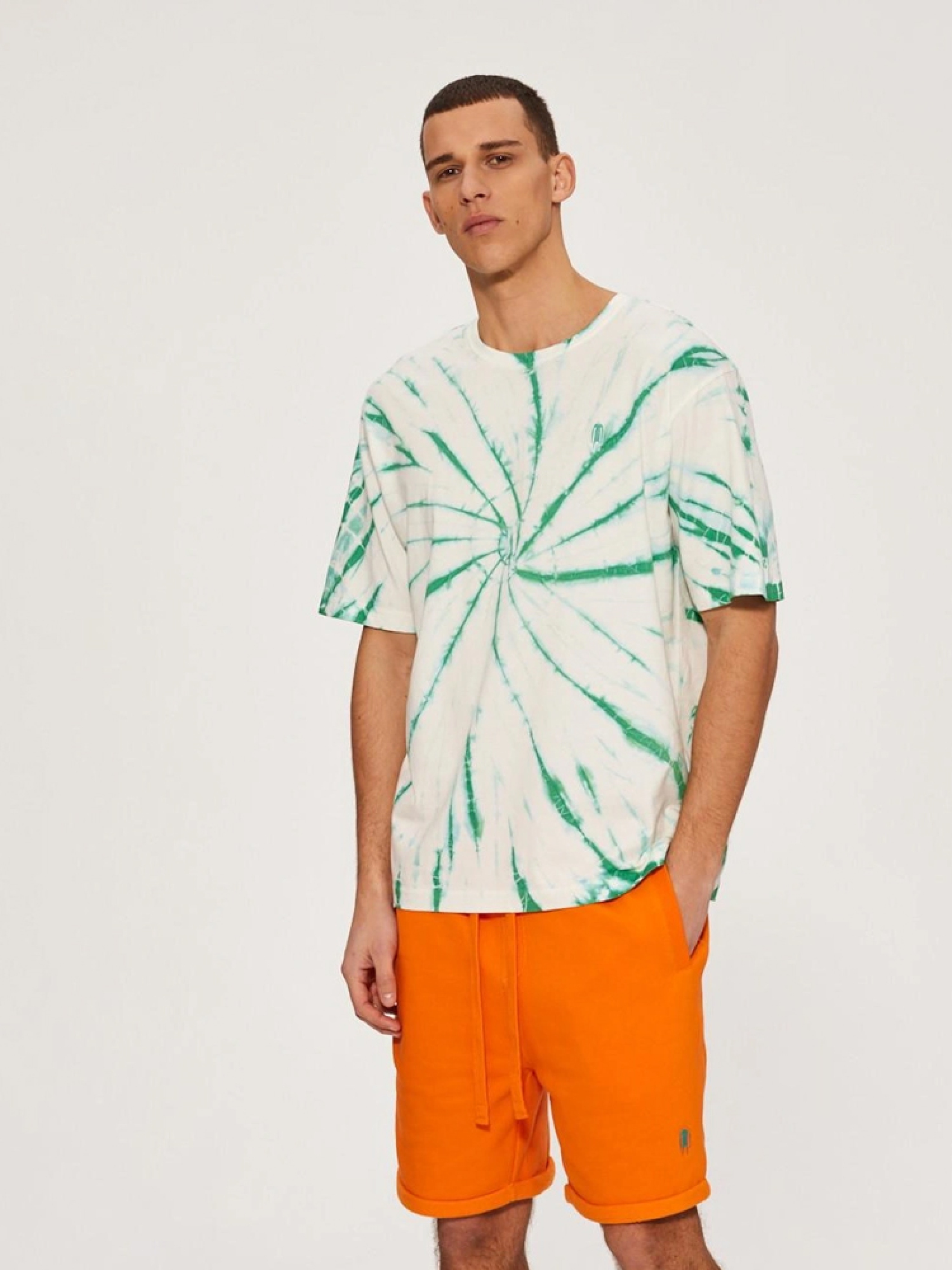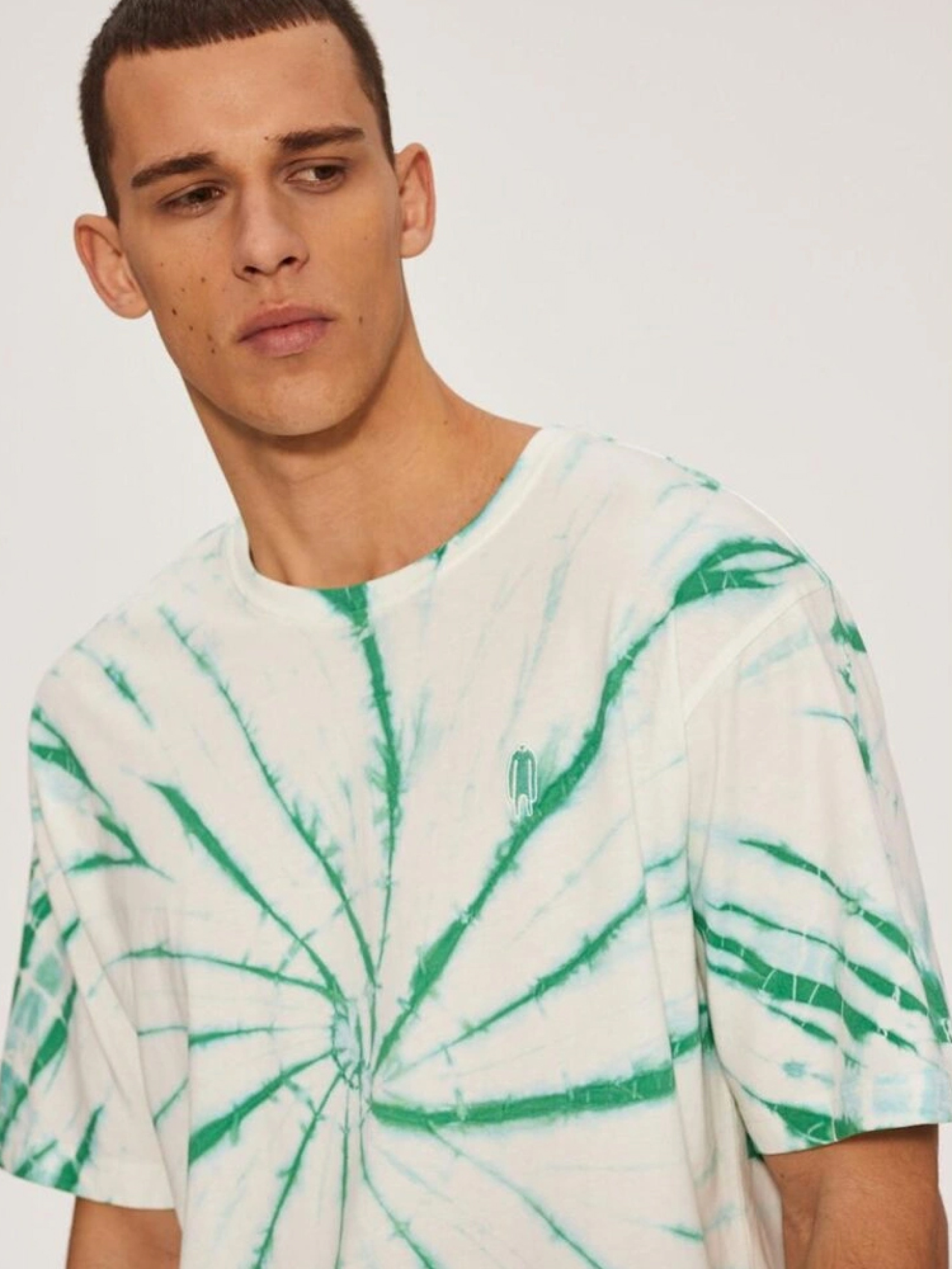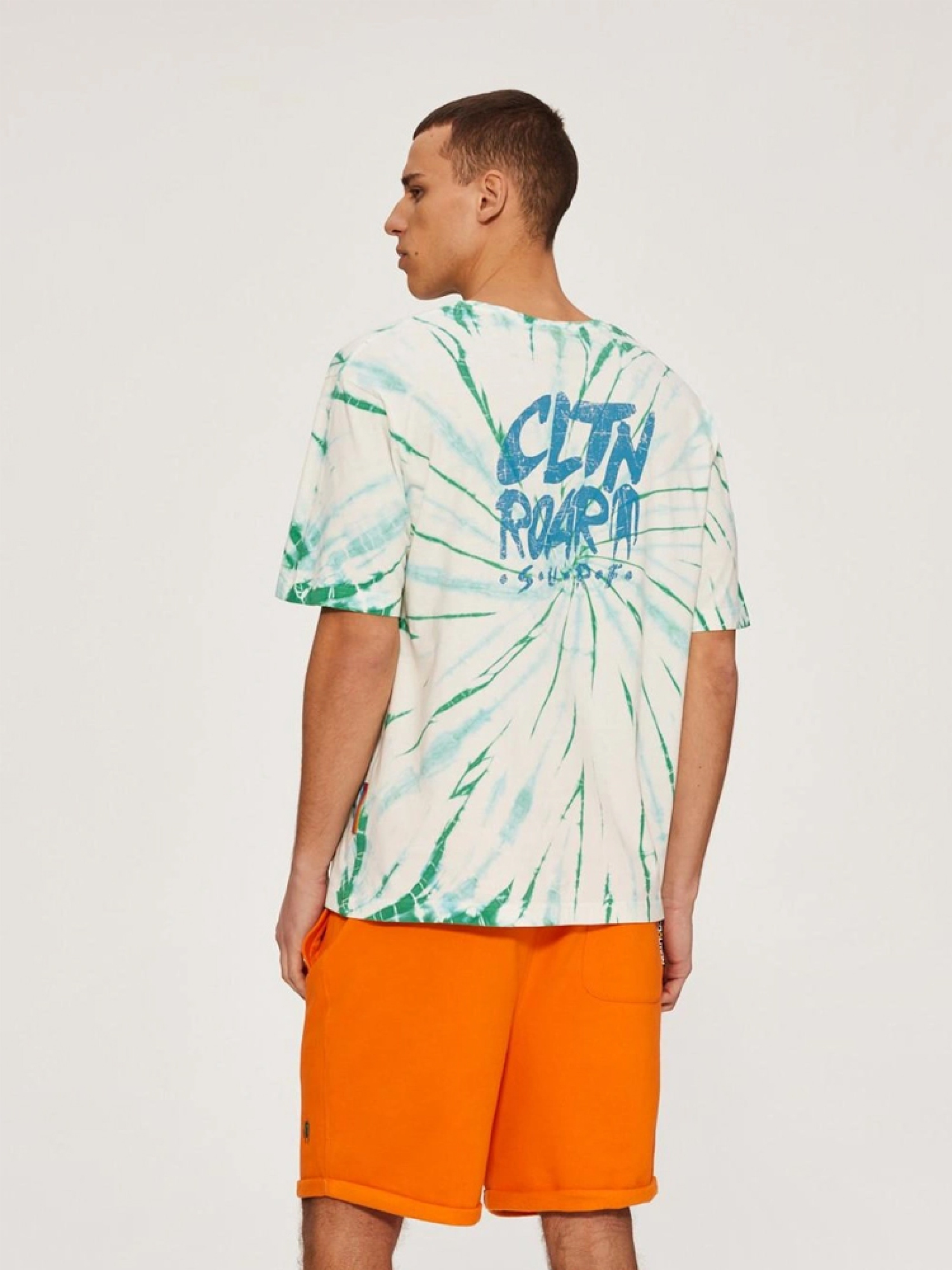 Футболка з ефектом тай-дай. Чоловіча футболка з лінії CLTN стандартного крою: - невелика вишивка на грудях, - великий принт на спині, - декоративна етикетка збоку, - ефект тай-дай, - доступна в білому та бірюзовому кольорах. Через унікальний спосіб виготовлення (ручний) колір може відрізнятися від зображення. Сезон: Весна / Літо. Склад: 100% бавовна. РОЗМІР: S, М, L, XL, ХХL . ЗАГАЛЬНА ДОВЖИНА СПИНИ: 69,00 см, 71,00 см, 73,00 см, 75,00 см, 78,00 см . ШИРИНА НИЗУ: 56,00 см, 58,00 см, 60,00 см, 62,00 см, 65,50 см . ШИРИНА ГРУДЕЙ: 56,00 см, 58,00 см, 60,00 см, 62,00 см, 65,50 см . ДОВЖИНА ЗОВНІШНЬОГО РУКАВА: 24,00 см, 25,00 см, 26,00 см, 27,00 см, 28,00 см