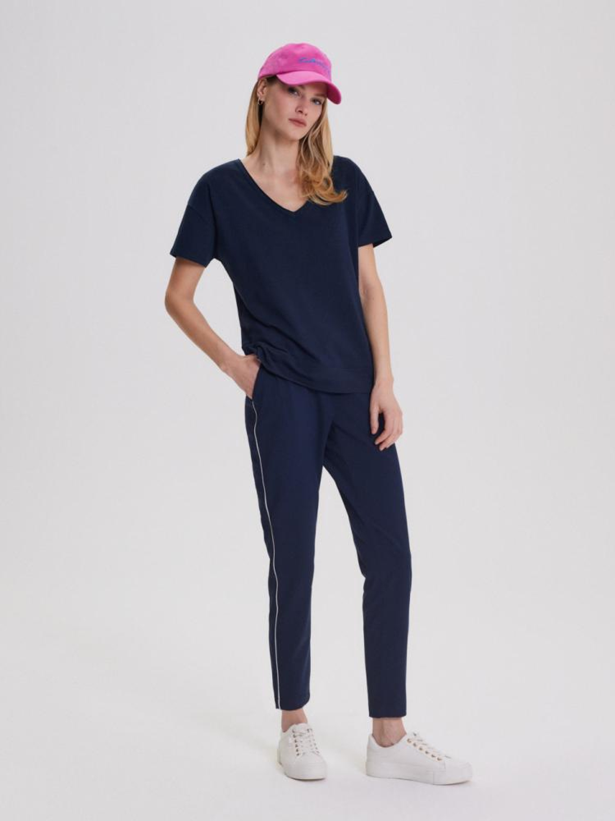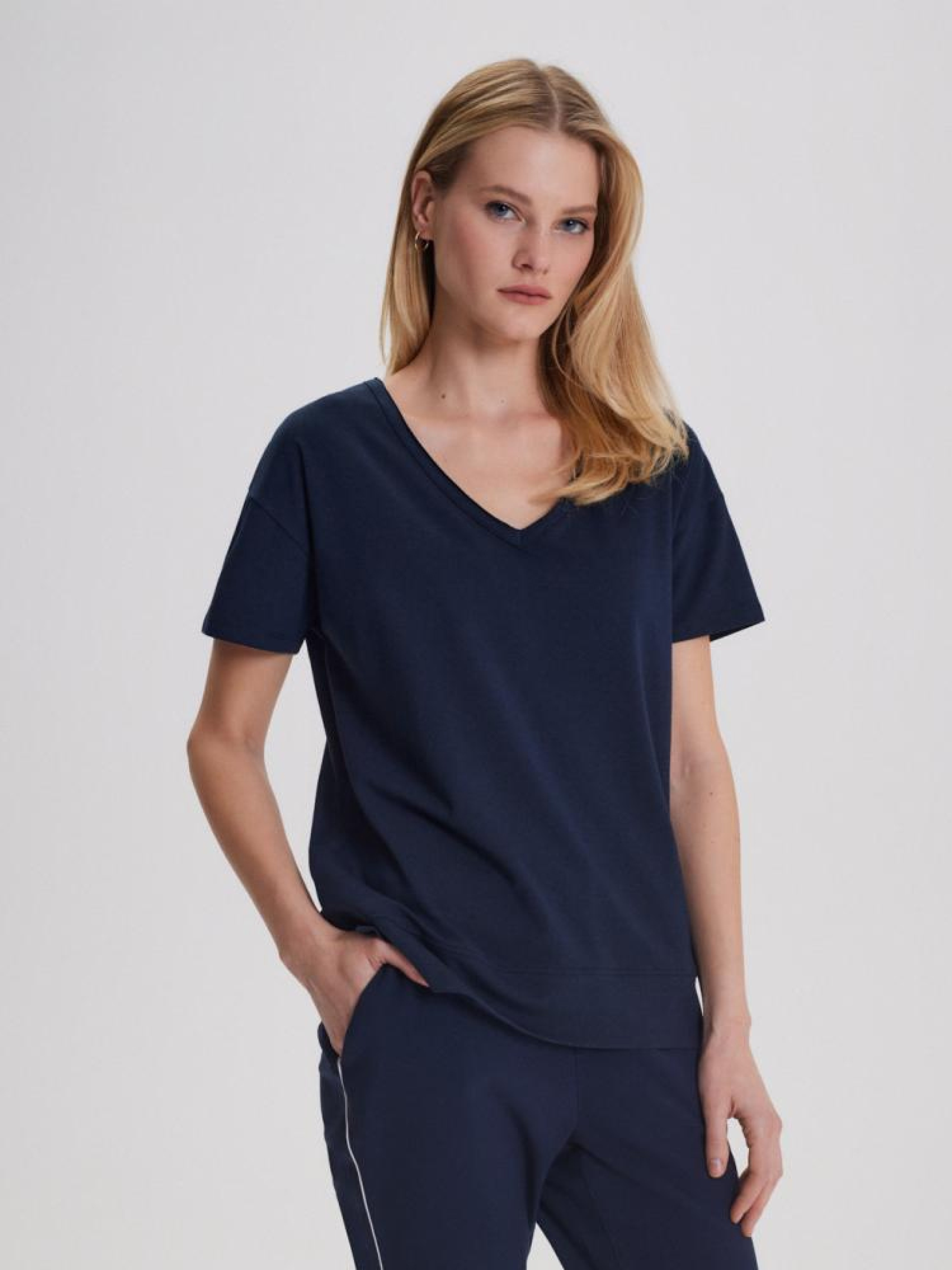 Футболка LUSSJA II 10044097 Жіноча футболка з V-подібним вирізом: - класичний крій, - короткий рукав, - глубокий виріз, - виготовлена з високоякісної тканини, - має розрізи з боків, - в наявності синій колір. Сезон: Весна/Літо 2024 Склад: 60% бавовна, 35% віскоза, 5% еластан Догляд: - прання при максимум 30 °С - делікатні речі - не відбілювати - не сушити в сушильній машині - прасувати максимум при темп. 110 °С - не хімчистка Розмір на моделі - S Зріст моделі - 180 см РОЗМІР: XS, S, М, L. XL, ДОВЖИНА ПО СПИНІ: 59,00 см, 61,00 см, 63,00 см, 65,00 см, 67,00 см, ШИРИНА НИЗУ: 48,00 см, 50,00 см, 52,00 см, 54,00 см, 56,00 см, Ширина під пахвами: 50,00 см, 52,00 см, 54,00 см, 56,00 см, 58,00 см, Довжина рукава: 11,50 см, 12.00 см, 12,50 см, 13.00 см, 13,50 см,
