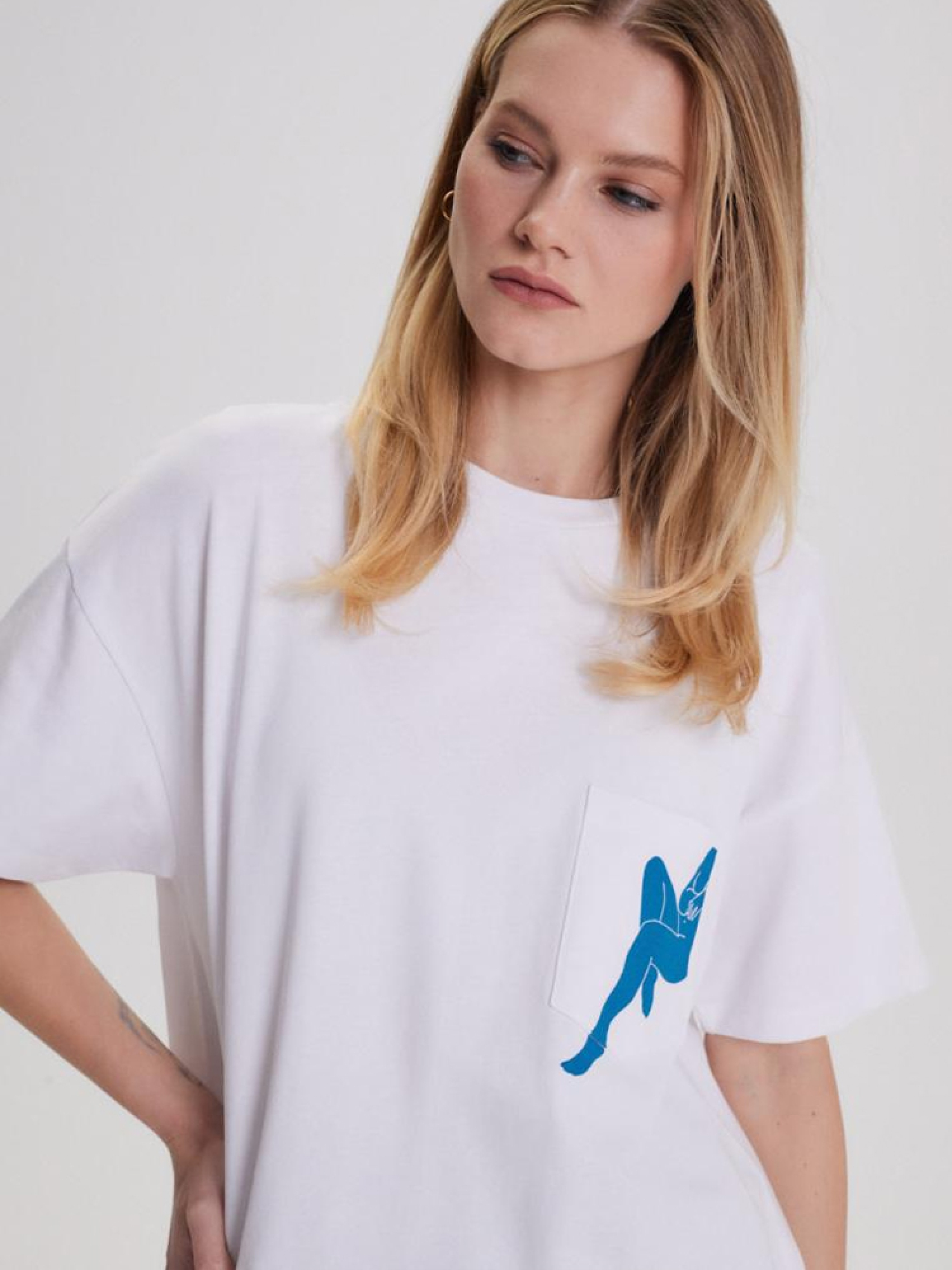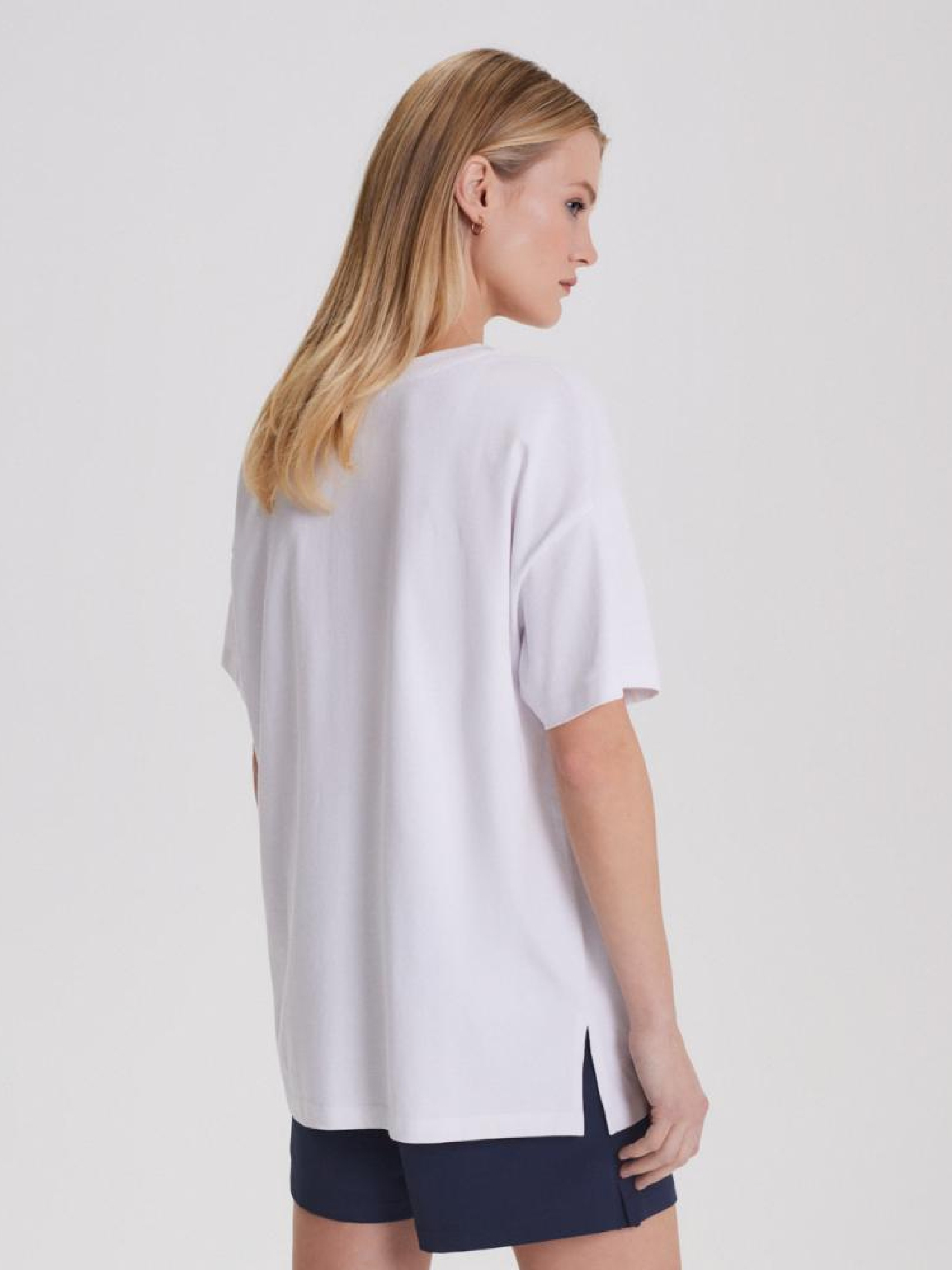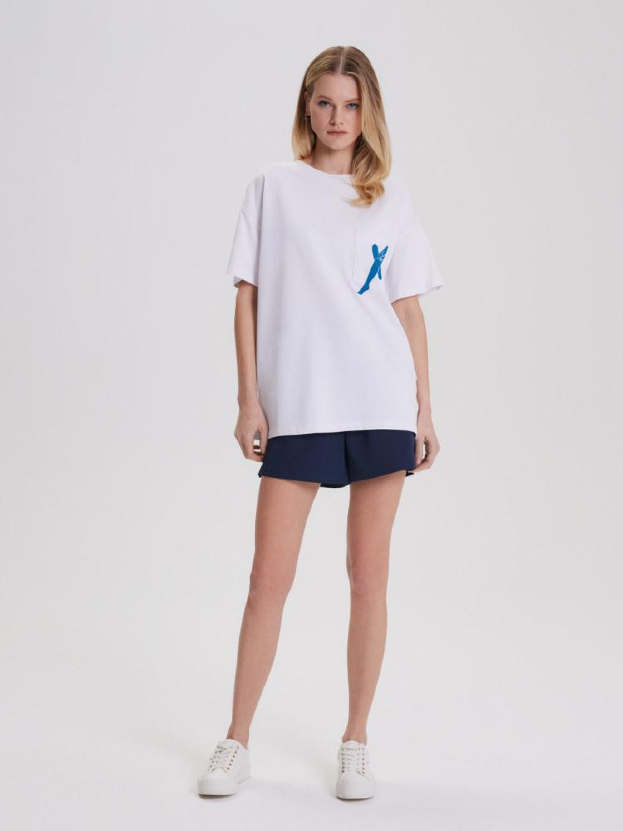 Футболка RAHIS 10044095 Жіноча футболка з щільної бавовняної тканини: - є кишеня, - декоративний принт, - вільний, розширений крій, - круглий виріз, - доступний білий колір. Сезон: Весна/Літо 2024 Склад: 100% бавовна Догляд: - прання при максимум 30 °С - делікатні речі - не відбілювати - не сушити в сушильній машині - прасувати максимум при темп. 110 °С - не хімчистка Розмір на моделі - XS/S Зріст моделі - 180 см РОЗМІР: XS/S, M/L, Довжина по спинці: 66,00 см, 70,00 см, ШИРИНА НИЗУ: 54,00 см, 58,00 см, Ширина під пахвами: 54,00 см, 58,00 см, Довжина рукава: 15,00 см, 17.00 см,