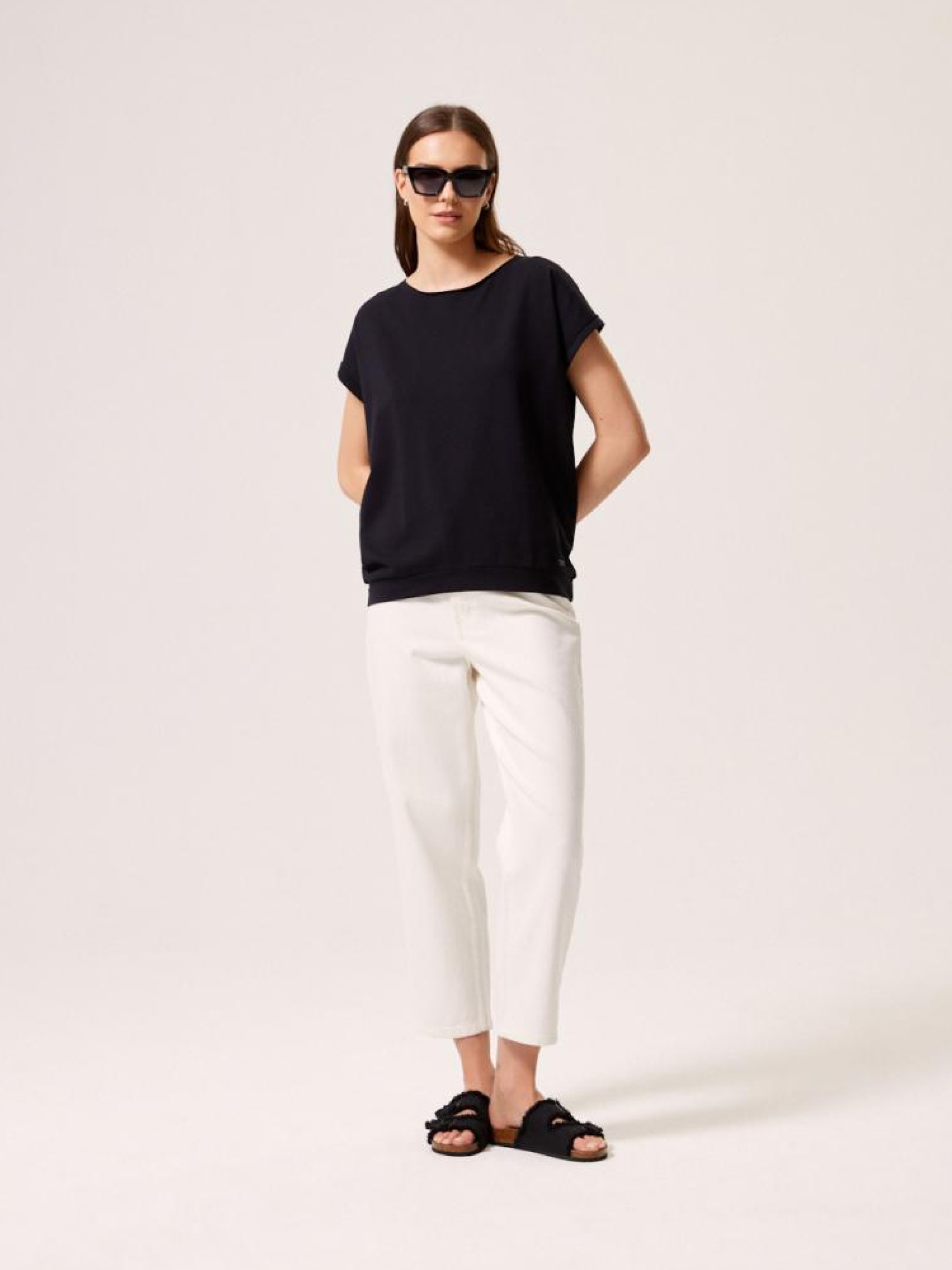 Футболка HELA X 10044388 Трикотажна футболка із зав'язкою на спині: - класичного крою, - з бавовняного трикотажу з домішкою еластану, - з короткими рукавами, - з декоративною зав'язкою на спині, - в наявності чорного кольору. Сезон: Весна/Літо 2024 Склад: 95% бавовна, 5% еластан Догляд: - прання при максимум 30 °С - делікатні речі - не відбілювати - не сушити в сушильній машині - прасувати максимум при темп. 110 °С - не хімчистка Розмір на моделі - S Зріст моделі - 180 см РОЗМІР: XS*, S, М, L. XL, Довжина по середині спинки: 66,00 см, 68,00 см, 70,00 см, 72,00 см, 74,00 см, ШИРИНА НИЗУ: 44,50 см, 46,50 см, 48,50 см, 50,50 см, 52,50 см, Ширина під пахвами: 63,00 см, 65,00 см, 67,00 см, 69,00 см, 71,00 см, ДОВЖИНА РУКАВА від шиї: 20,50 см, 21.00 см, 21,50 см, 22,00 см, 22,50 см,