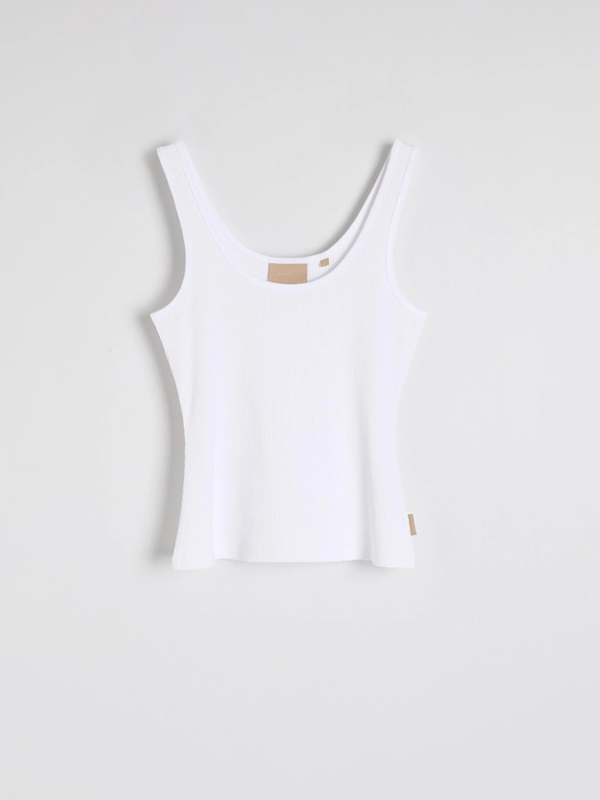 WAZUM B Приталений жіночий топ з трикотажу в рубчик - приталений крій, - стандартна довжина, - на тонких бретелях. Сезон: Весна/Літо Склад 48 % бавовна 48 % модал 4 % еластан Догляд: - прання при максимум 30 °С - делікатні речі - не відбілювати - не сушити в сушильній машині - прасувати максимум при темп. 110 °С - не проводити хімчистку Розмір на моделі - S Зріст моделі - 170 см РОЗМІР: XS, S, М, L. XL, ЗАГАЛЬНА ДОВЖИНА СПИНИ: 37, 39, 41, 43, 45, ШИРИНА НИЗУ: 39, 41, 43, 45, 47, Ширина в грудях: 34.5, 36.5, 38.5, 40.5, 42.5,