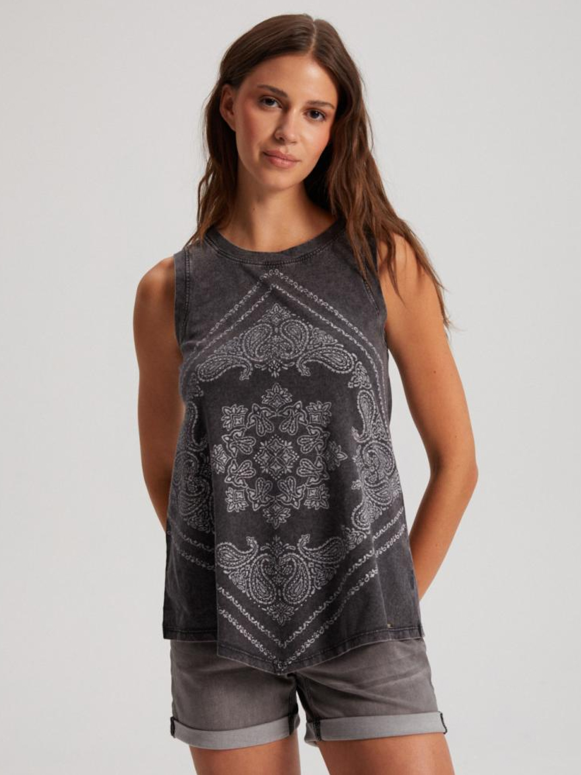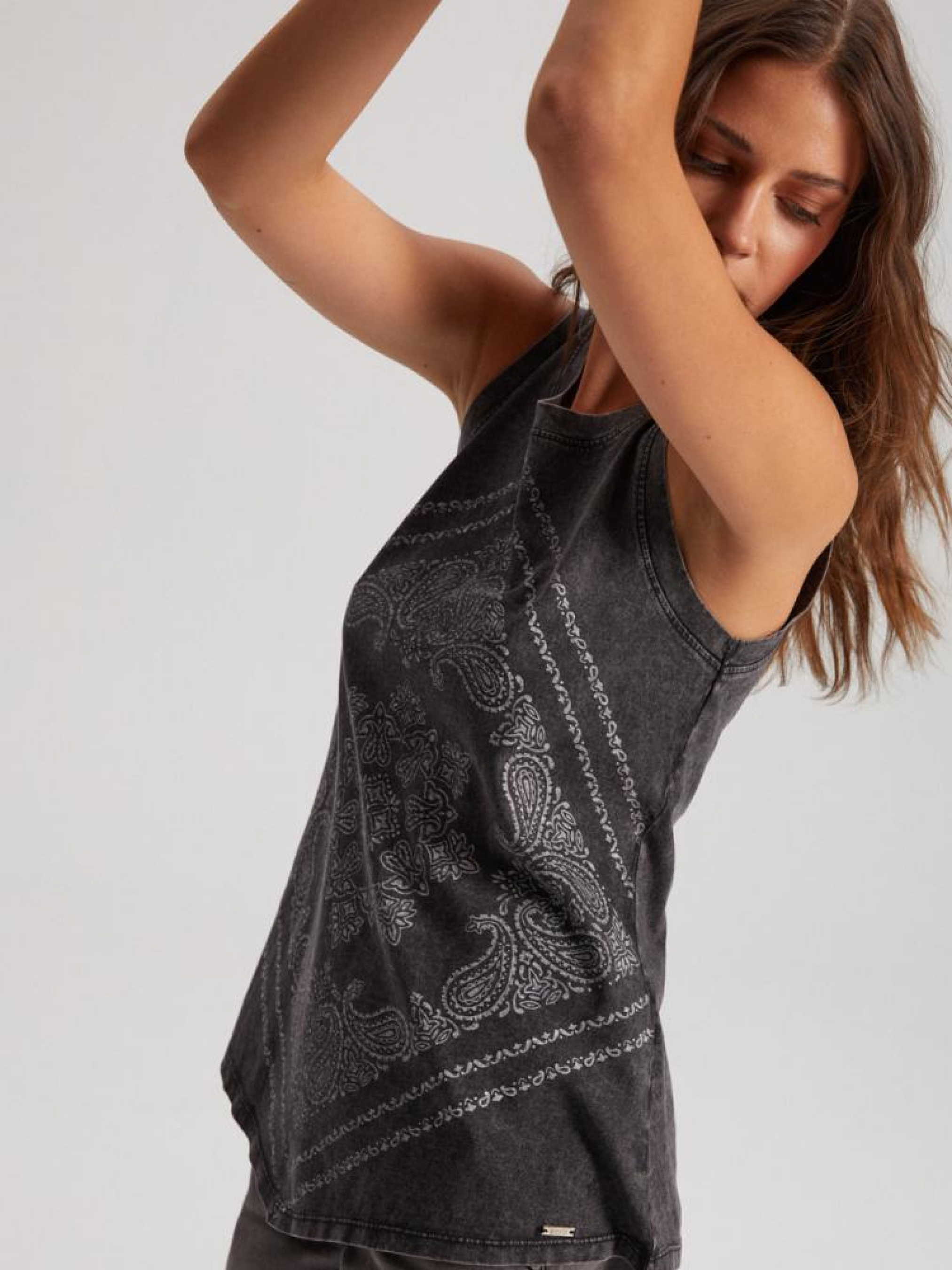 Топ BANDAX 10041924 Зручний трикотажний топ: - без рукавів, - вільного крою, - принт, - доступний у чорному кольорі. Сезон: Весна/Літо Склад: 100% бавовна Догляд: - прання при максимум 30 °С - делікатні речі - не відбілювати - не сушити в сушильній машині - прасувати максимум при темп. 110 °С - не проводити хімчистку Розмір на моделі - S Зріст моделі - 175 см РОЗМІР: XS, S, М, L. XL, ЗАГАЛЬНА ДОВЖИНА СПИНИ: 64,00 см, 66,00 см, 68,00 см, 70,00 см, 72,00 см, ШИРИНА НИЗУ: 58,00 см, 60,00 см, 62,00 см, 64,00 см, 66,00 см, ШИРИНА ГРУДЕЙ: 40,00 см, 42,00 см, 44,00 см, 46,00 см, 48,00 см,