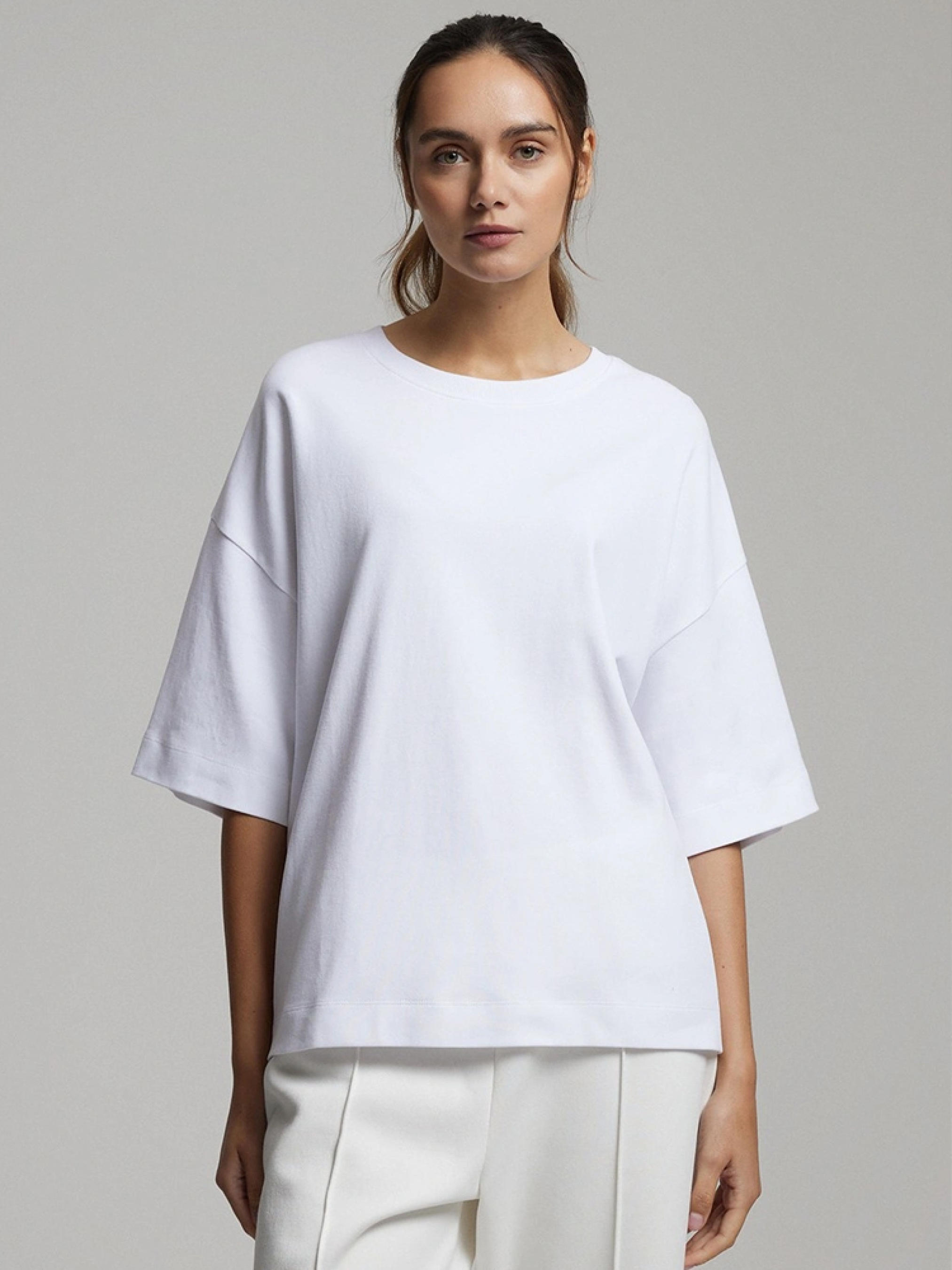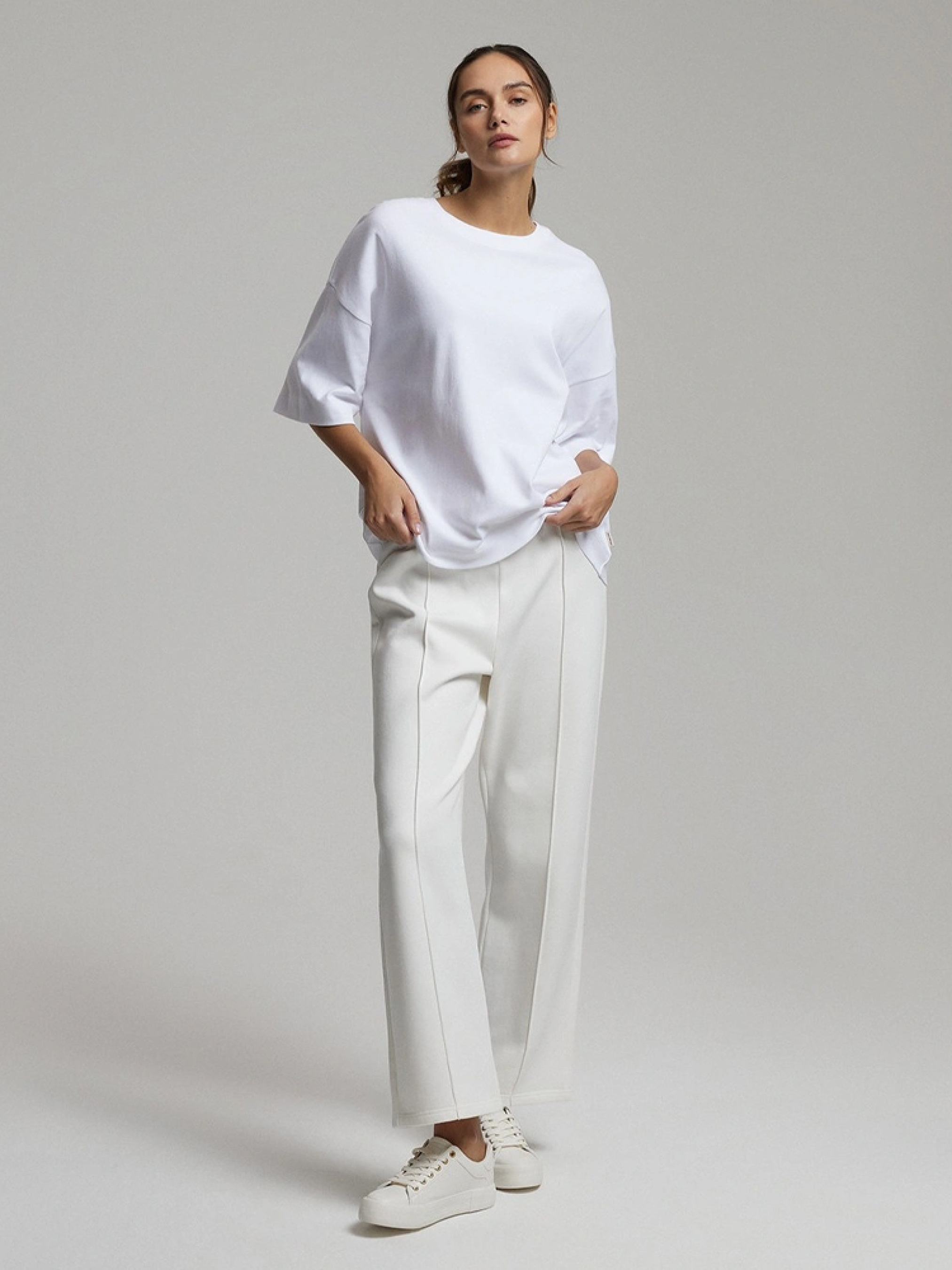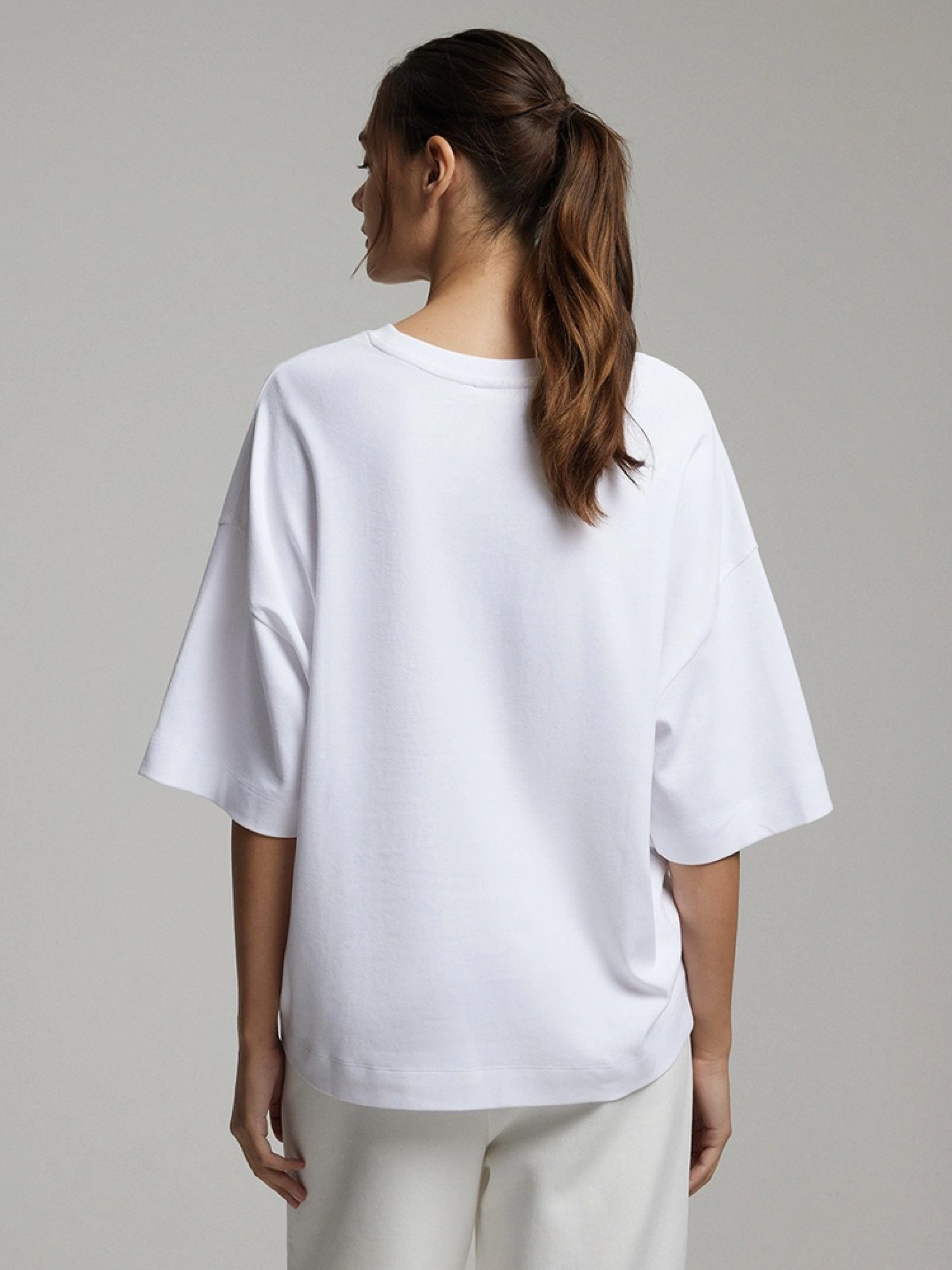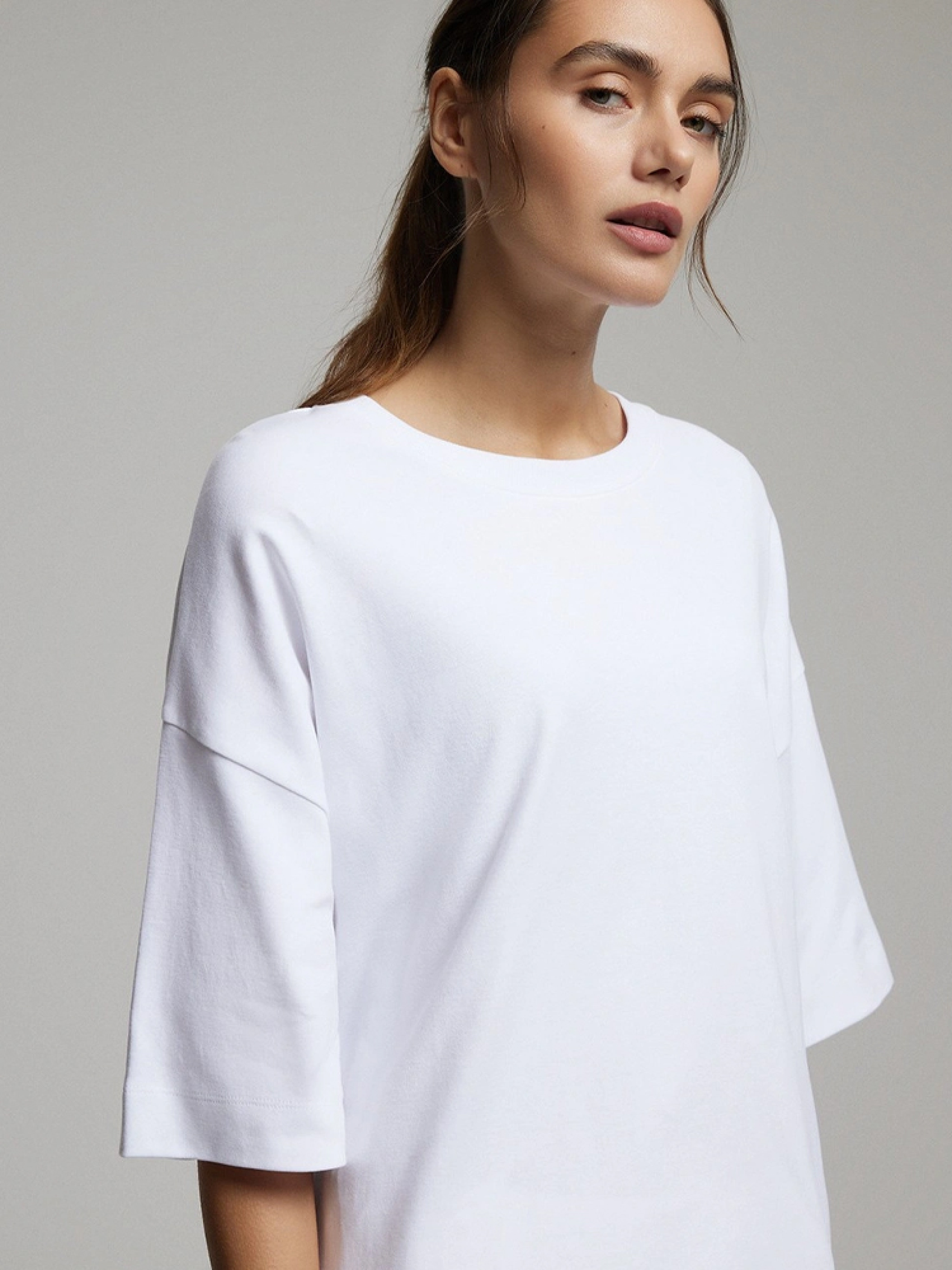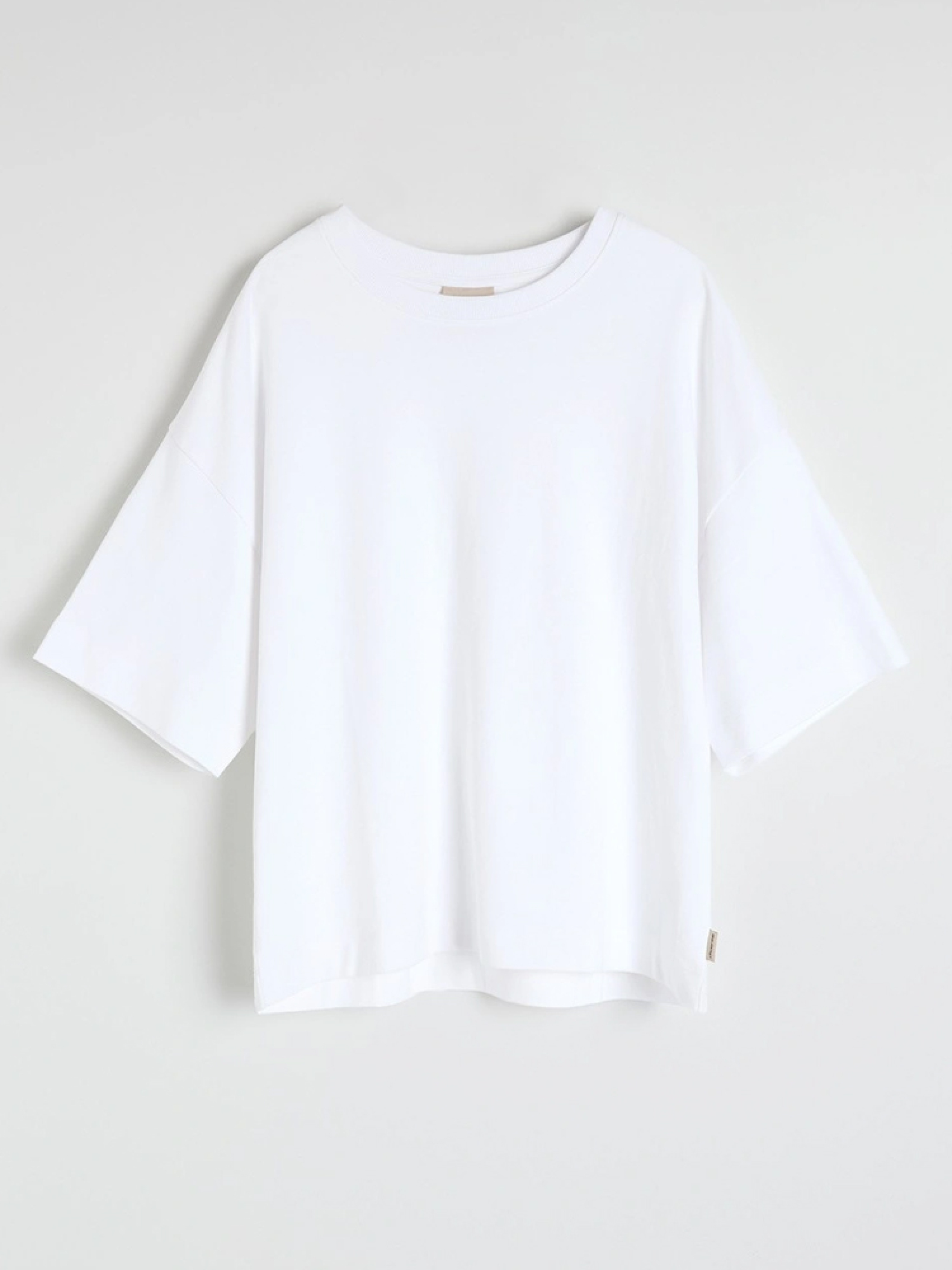JILLY Повсякденна футболка з бавовняного трикотажу щільної тканини з м'якою обробкою - 100% бавовна, - оверсайз, - круглий виріз, - подовжений крій, - короткі рукави. Сезон: Весна/Літо Склад 100% бавовна Догляд: - прання при максимум 30 °С - делікатні речі - не відбілювати - не сушити в сушильній машині - прасувати максимум при темп. 110 °С - не проводити хімчистку Розмір на моделі - S Зріст моделі - 180 см РОЗМІР: XS, S, М, L. Довжина по спинці: 61, 63, 65, 67, ШИРИНА НИЗУ: 53, 55, 57, 59, Ширина під пахвами: 60, 62, 64, 66, Довжина рукава: 21, 22, 23, 24,