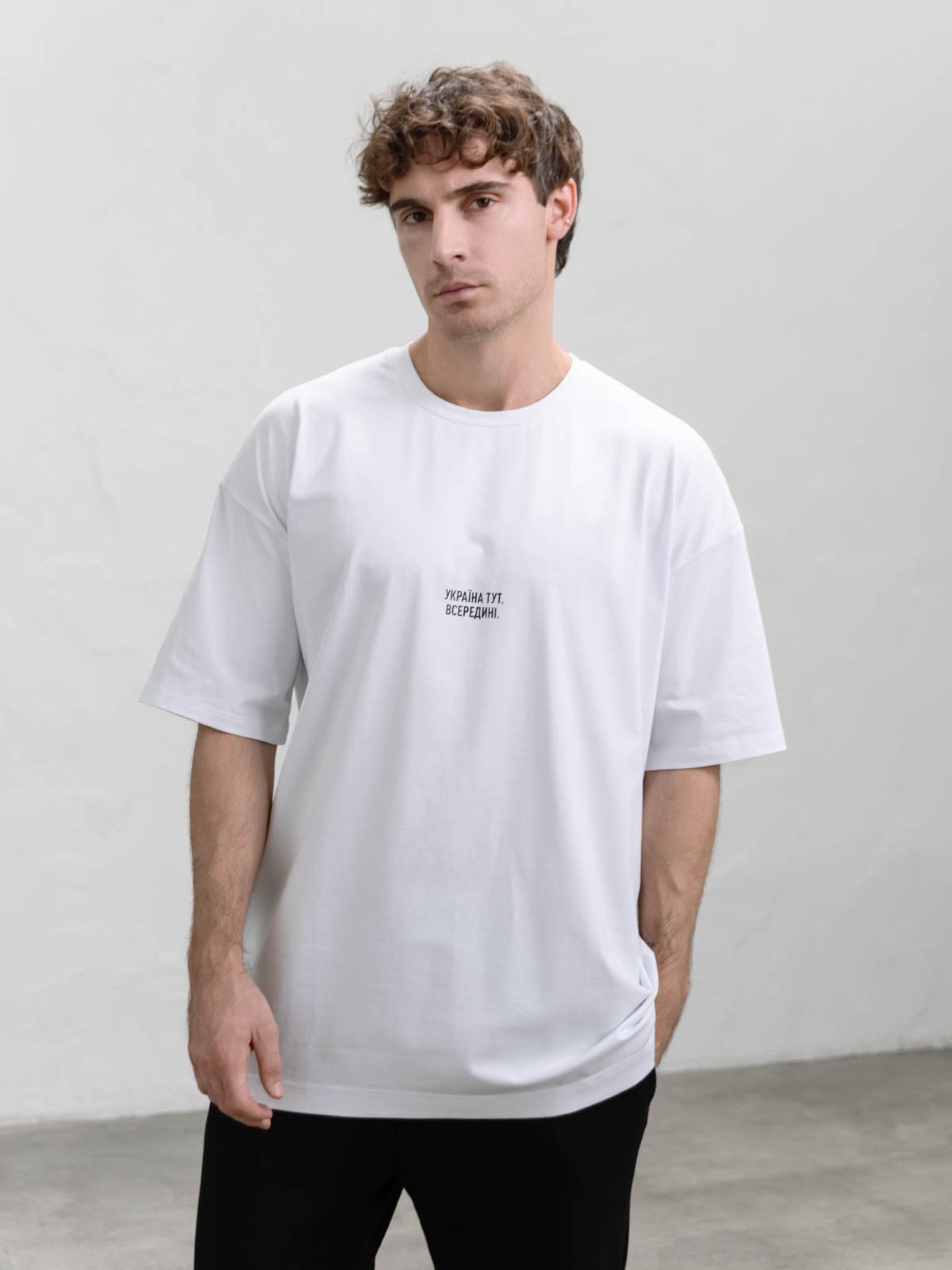 Чоловіча футболка з натурального бавовняного трикотажу – це ідеальний варіант для тих, хто цінує комфорт і стиль. Завдяки oversize крою зі спущеною лінією плеча вона чудово сідає на будь-яку фігуру, створюючи модний і розслаблений образ. Подовжений фасон додає футболці універсальності, дозволяючи носити її як окремо, так і у багатошарових луках. Особливий акцент – авторський принт «Київ тут. Всередині», виконаний термоплівкою. У вас є можливість замовити футболку з назвою будь-якого міста, яке ви любите, що додає виробу персоналізованого характеру (зверніть увагу, що індивідуальні замовлення не підлягають обміну або поверненню). Футболка легко поєднується з різними елементами гардеробу: вона чудово виглядає з джинсами, спортивними штанами чи шортами, а для більш стильного образу її можна комбінувати з худі або бомбером. Догляд за футболкою нескладний. Прати її можна у машинці у стандартному режимі, але при температурі не вище 40°C. Важливо уникати відбілювачів та хімчистки, а також не використовувати штучне сушіння. Найкраще сушити, розвісивши виріб, щоб зберегти форму і насичений колір принта.