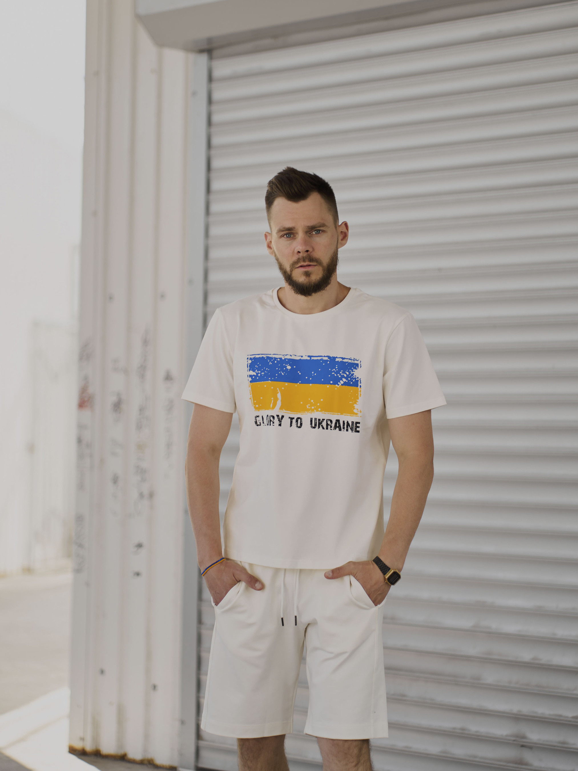 Кожен з нас, як і ці футболки, зроблені в Україні. Зараз як ніколи хочеться показати цю приналежність до гордої, сильної нації. Футболки, які доповнять спортивний костюм, можна скомбінувати з джинсами, шортами влітку. Матеріал дуже приємний до тіла: кулір, 95% бавовна. Друк - метод шовкографії, малюнок не тріскається та не псується під час прання. Доступні у кольорах: молочний, чорний, сірий меланж.