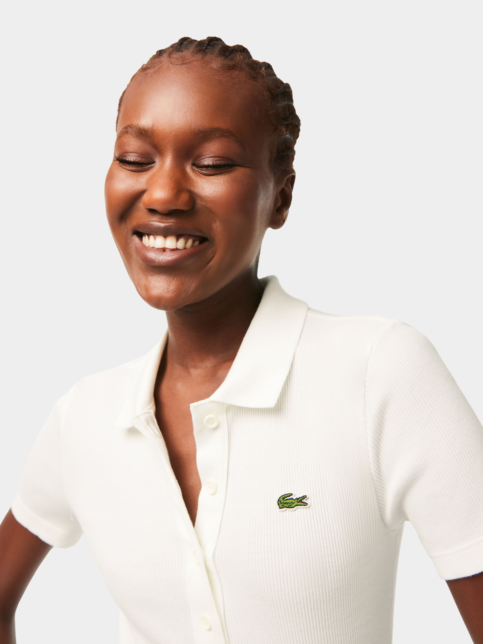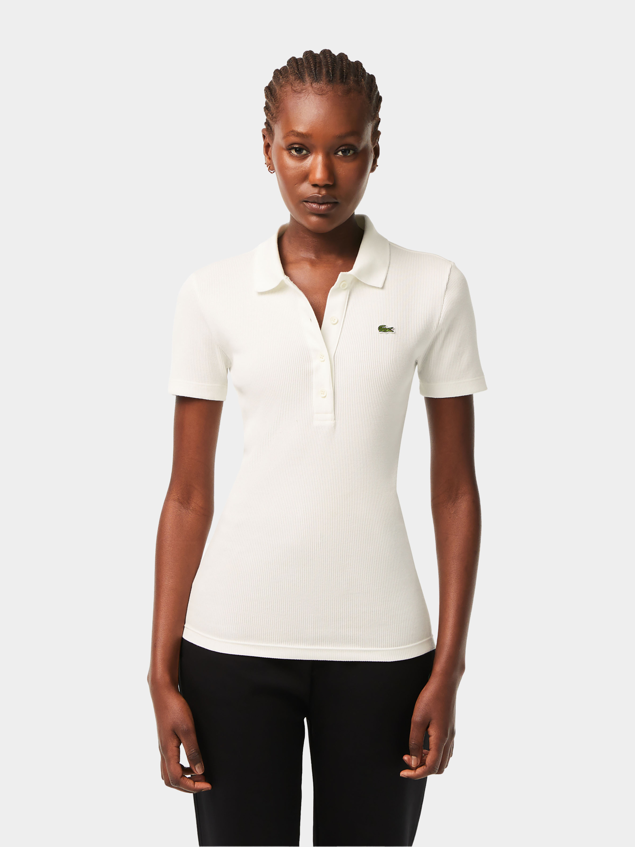Поло L.12.D, жіноча версія поло, винайденого Lacoste у 1933 році, представлена у ребристому бавовняному виконанні. Елегантно приталений пояс і глибока застібка на ґудзиках підтримують знакові коди L.12.D. Додатковим бонусом є зручна, повсякденна тканина, що пропонує безліч модних можливостей. Матеріал: 100% бавовна Цей виріб маломіцний. Радимо брати на один розмір більше, ніж ваш звичайний розмір. Ребриста органічна бавовна Ґудзики тон в тон На грудях нашитий перероблений крокодил Дизайн: Франція Країна виробник: Туніс