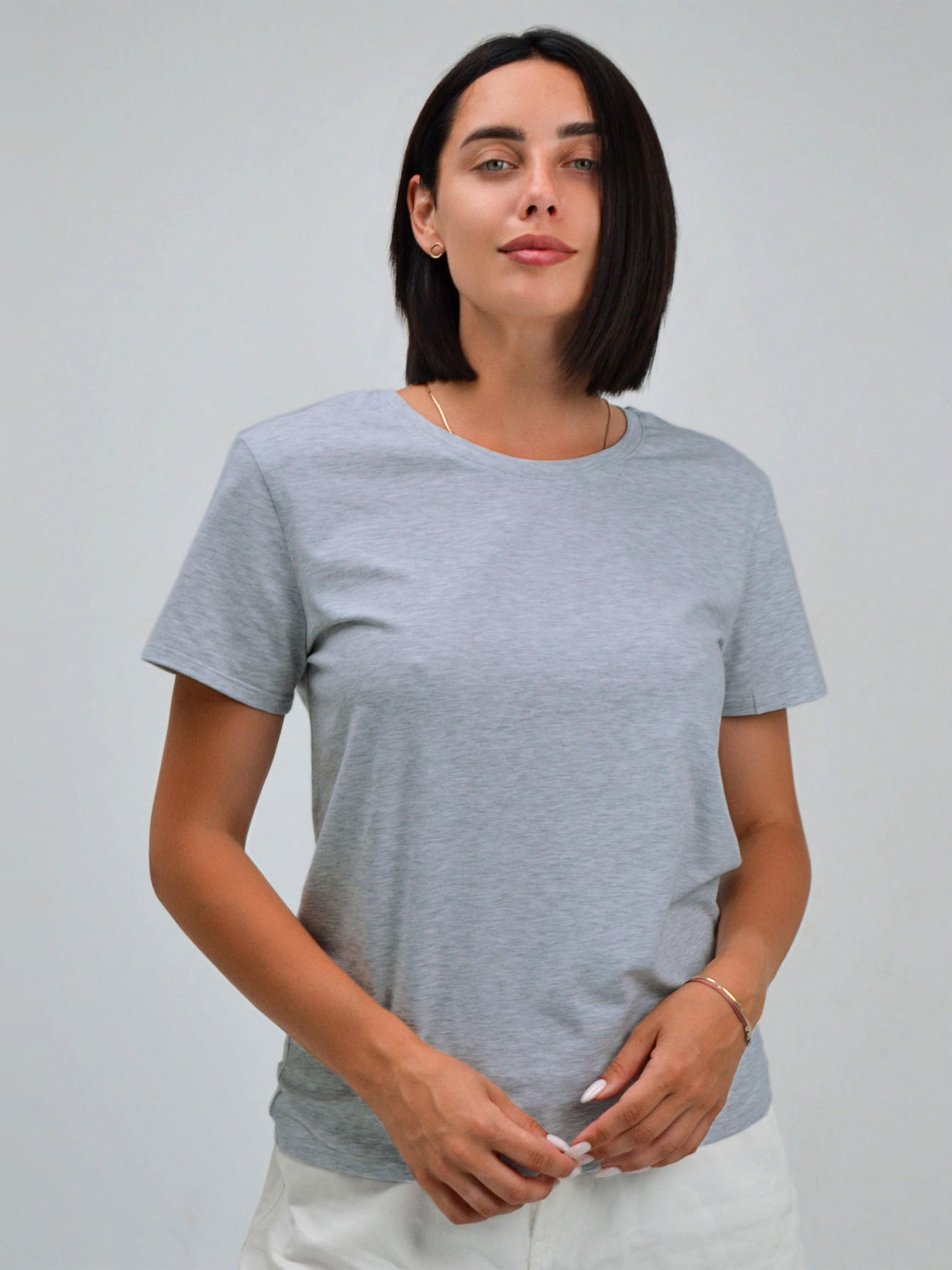 95% cotton, 5% elastane. Жіноча базова футболка у сірому кольорі — ідеальний вибір для тих, хто шукає комфортний і стильний одяг на кожен день. Виготовлена з м’якої, дихаючої тканини, вона чудово пасує до джинсів, шортів чи спідниці. Лаконічний крій, короткий рукав і універсальний дизайн дозволяють створювати образи для роботи, прогулянок чи подорожей.