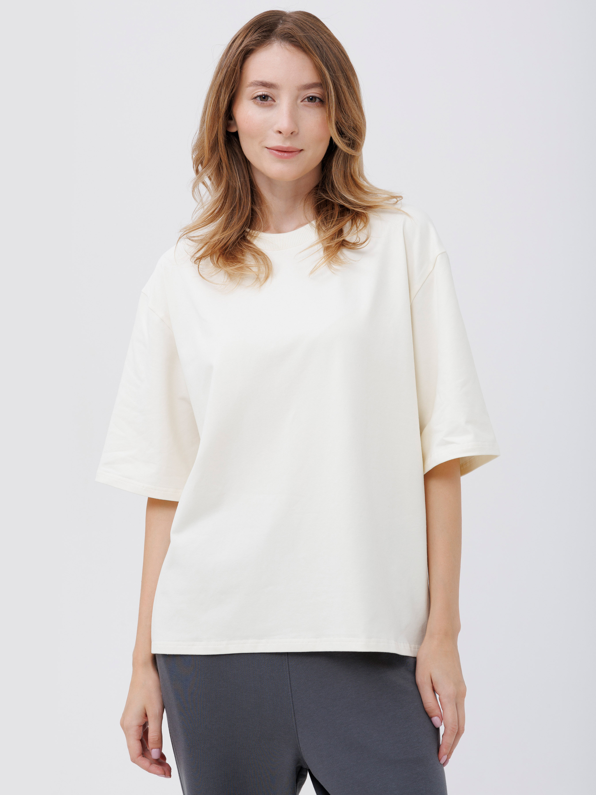 95% cotton, 5% elastaneЖіноча нова оверсайз джемпер-футболка, що ввібрала у себе найкраще: тренди моди та високу якість виконання виробу. Стильна та комфортна, ідеальна для будь-якого образу. Доступна у декількох кольорах, щоб ви могли підібрати той, що пасує вашому настрою. Виготовлена з бавовни та еластану. Вона стане вашим незамінним елементом гардеробу для ваших підбірок та модних образів.