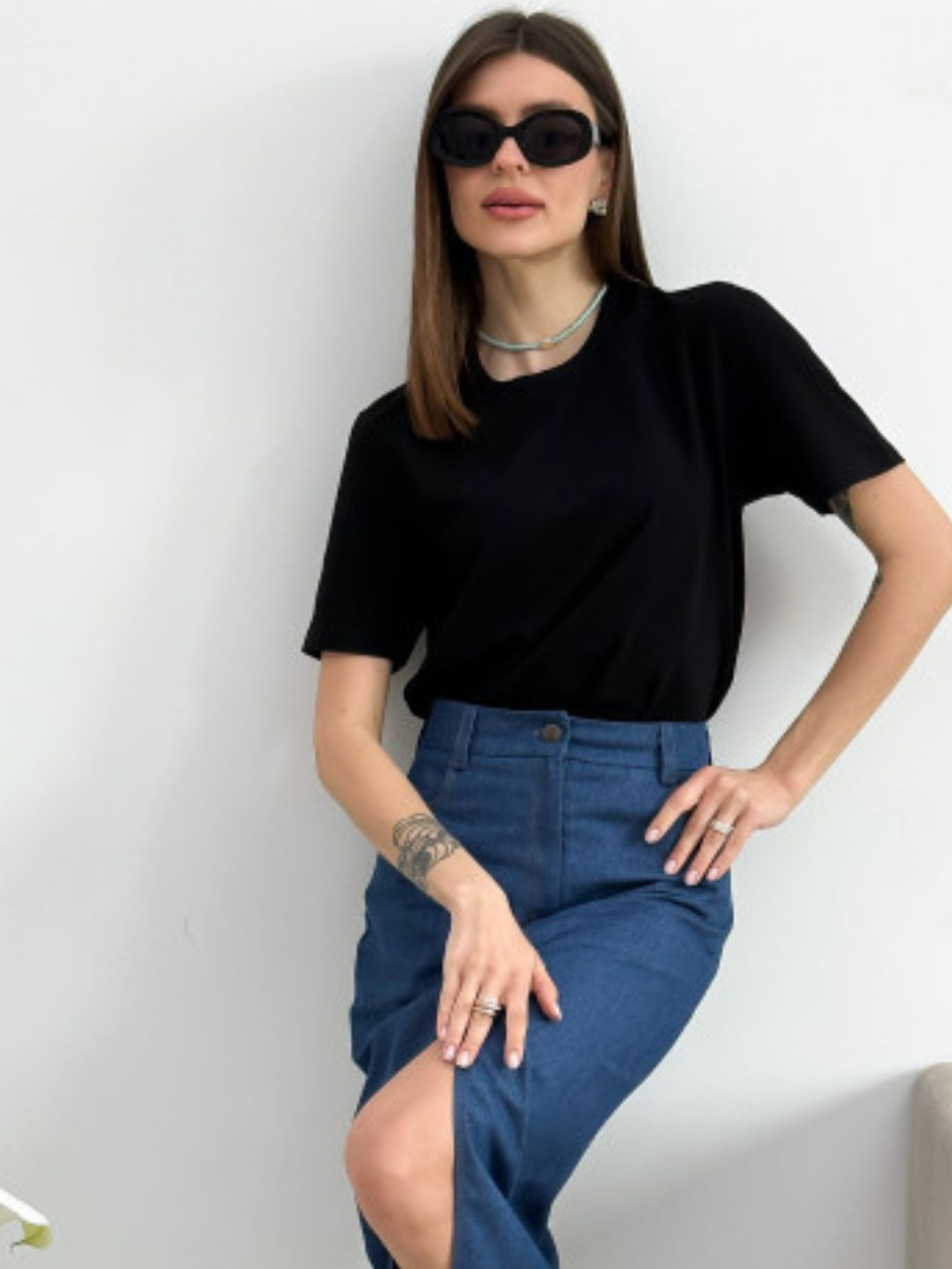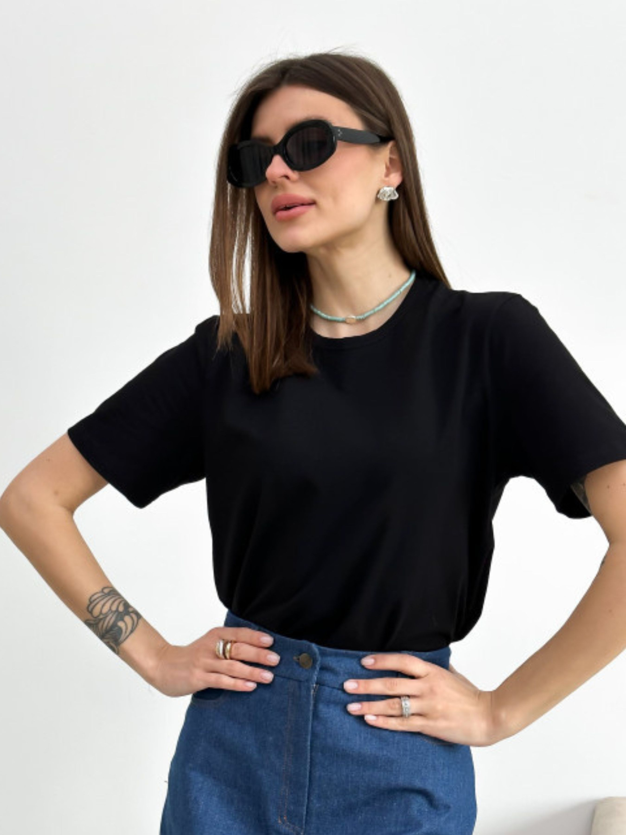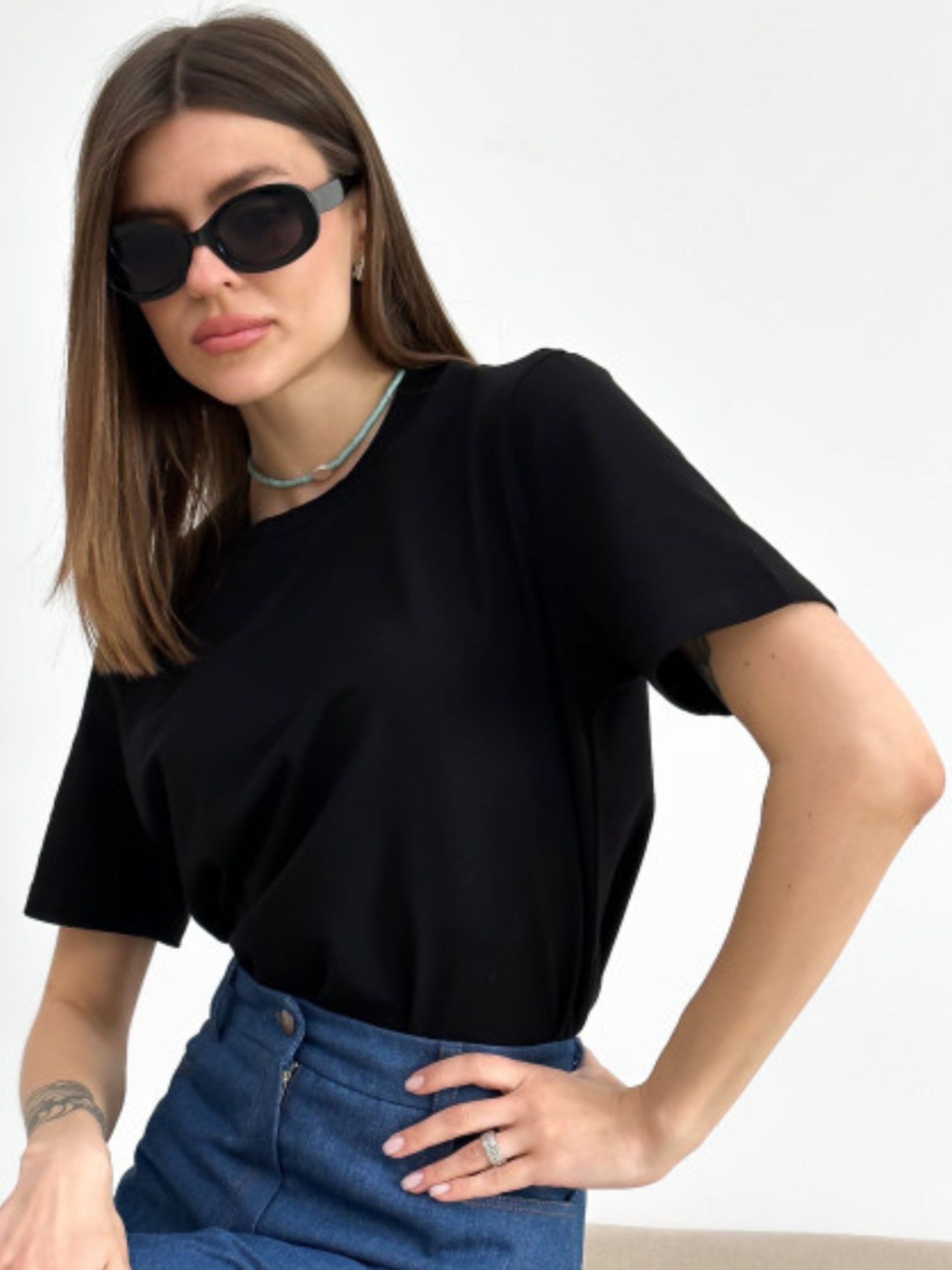 Базова літня футболка, яка має бути у Вашому гардеробі! Для пошиття використовували натуральну бавовну. Завдяки чому володарка почуватиметься легко та комфортно. Футболка з короткими рукавами та круглим вирізом горловини. У складі тканини є невеликий відсоток пластану, що додає цій футболці еластичності.