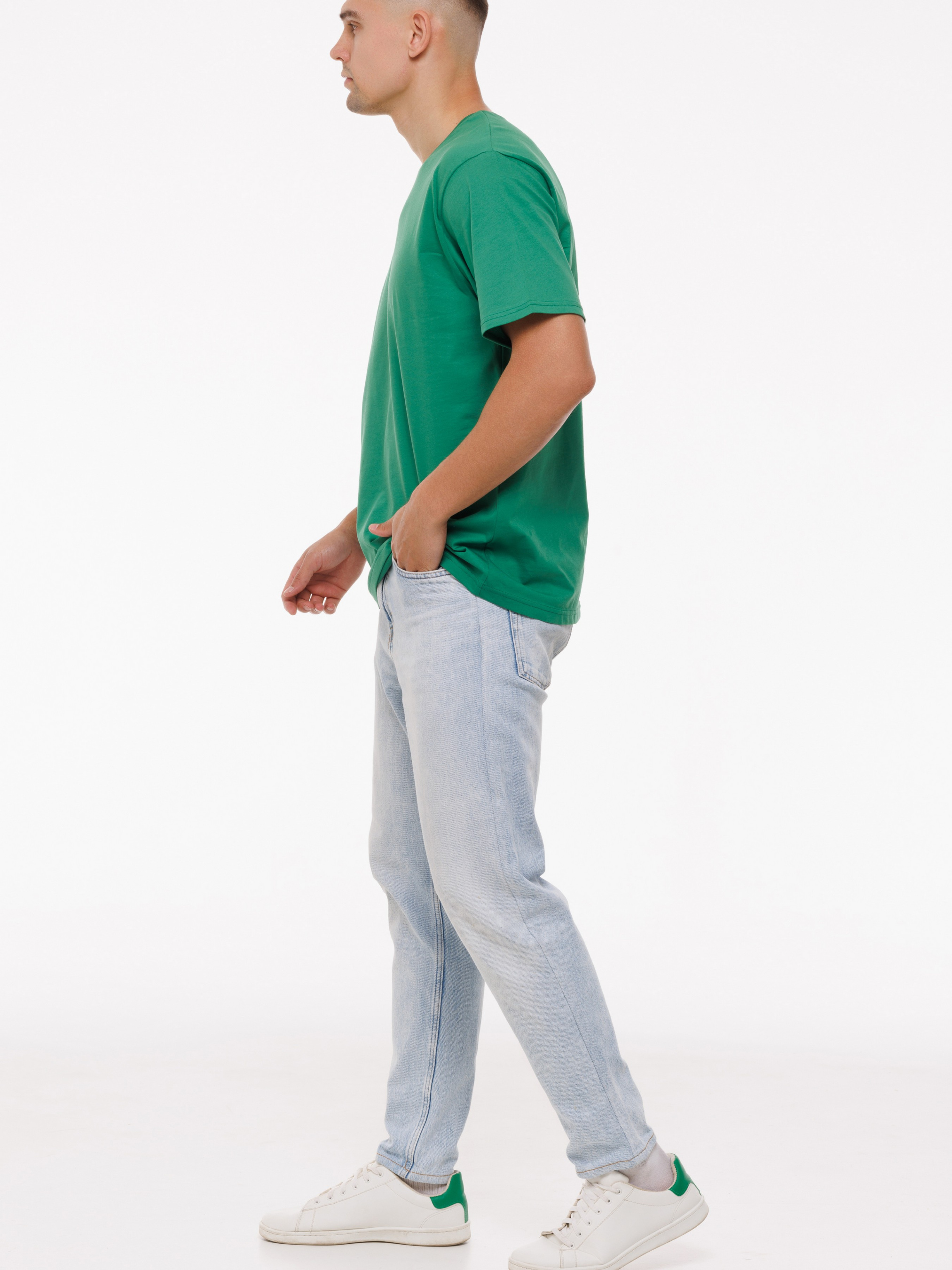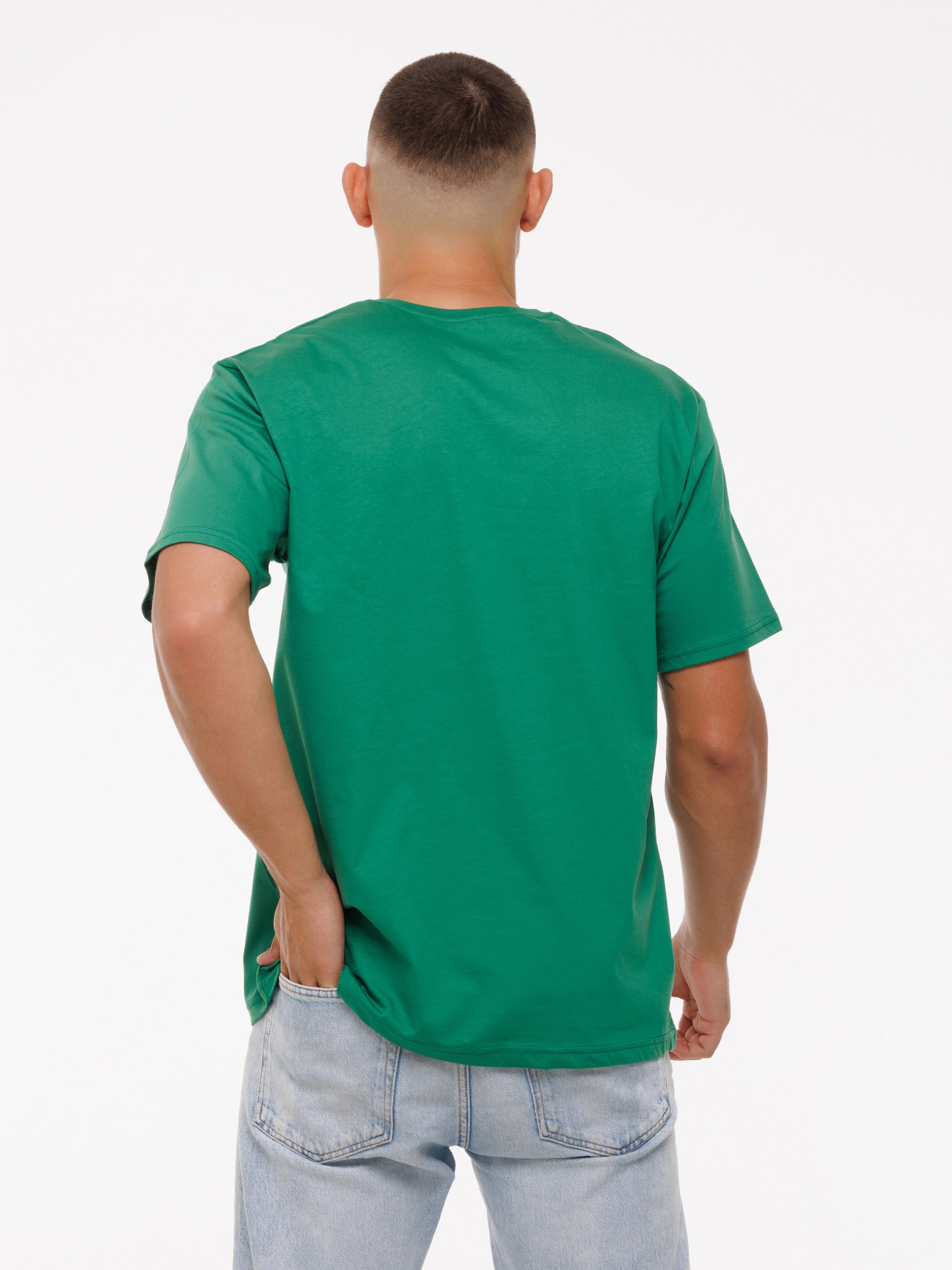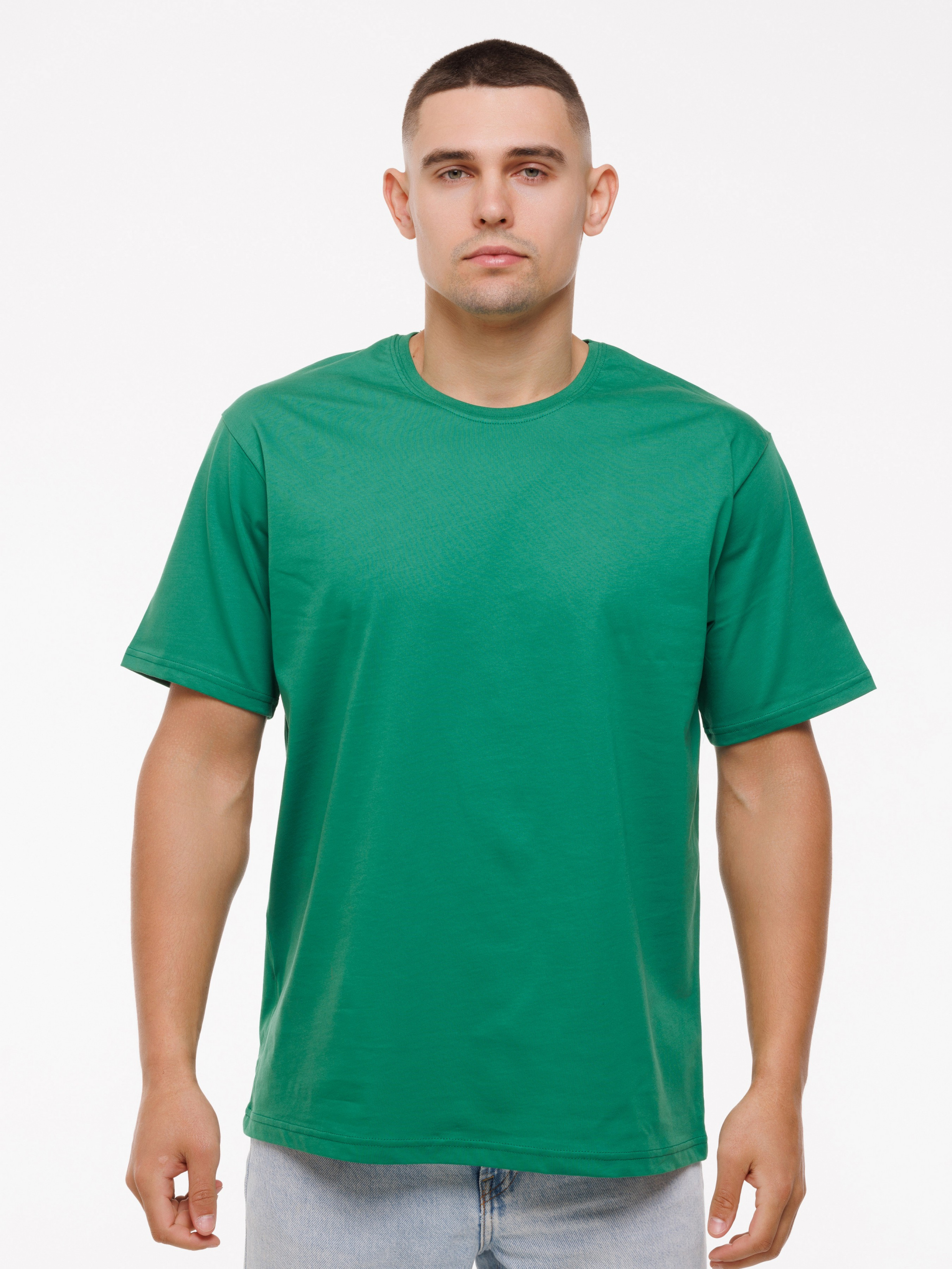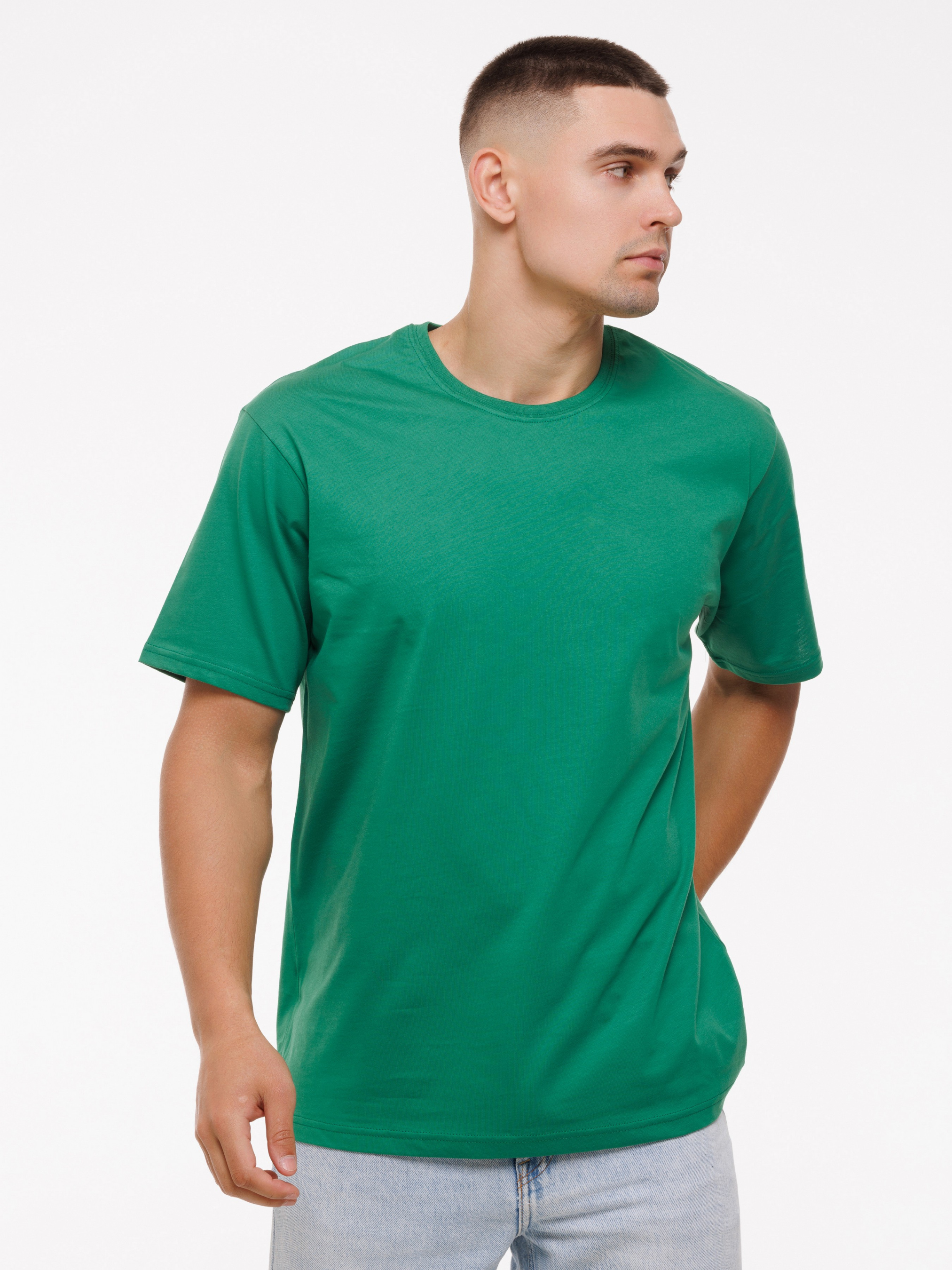 Футболка з високоякісного трикотажу, котону пеньє, пропонується на сайті багатьох кольорах. Молоді люди частіше замовляють яскраві соковиті кольори, чоловіки старшого віку віддають перевагу темним або світлим відтінкам. Ця модель футболки користується попитом, купити її можна в будь-якому розмірі. Часто на сайті даний виріб замовляють комплектами, вибираючи декілька кольорів. Модель відрізняється класичним кроєм і підходить для чоловіків будь-якого віку і різної статури. Кольорову монохромну футболку з короткими рукавами з круглим вирізом під горло легко поєднувати з будь-якими речами. Її навіть надягають під жакет, джемпер і піджак. Вона гармонує з класичними брюками, джинсами і шортами. Класичний крій виробу підкреслить спортивну статуру, також футболка приховає недоліки фігури чоловіків з великою вагою.