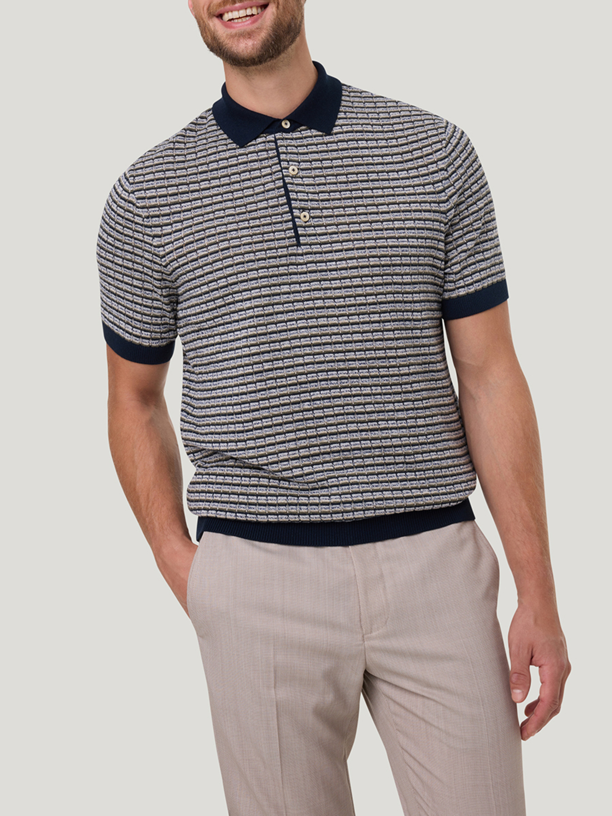 "Поло з трикотажної в'язки Pierre Cardin. Крій: напівприталений, підійде на будь-який тип фігури. Модель виконана в стилі ""сучасна класика"", тож ви можете його сміливо поєднувати зі штанами в офісному і діловому стилі, а також з джинсами і шортами в міському стилі. Делікатне прання за температури води до 30 °C. Відбілювання заборонено. Барабанна сушка заборонена. Прасування за низької температури. Не проводити сухе чищення. "