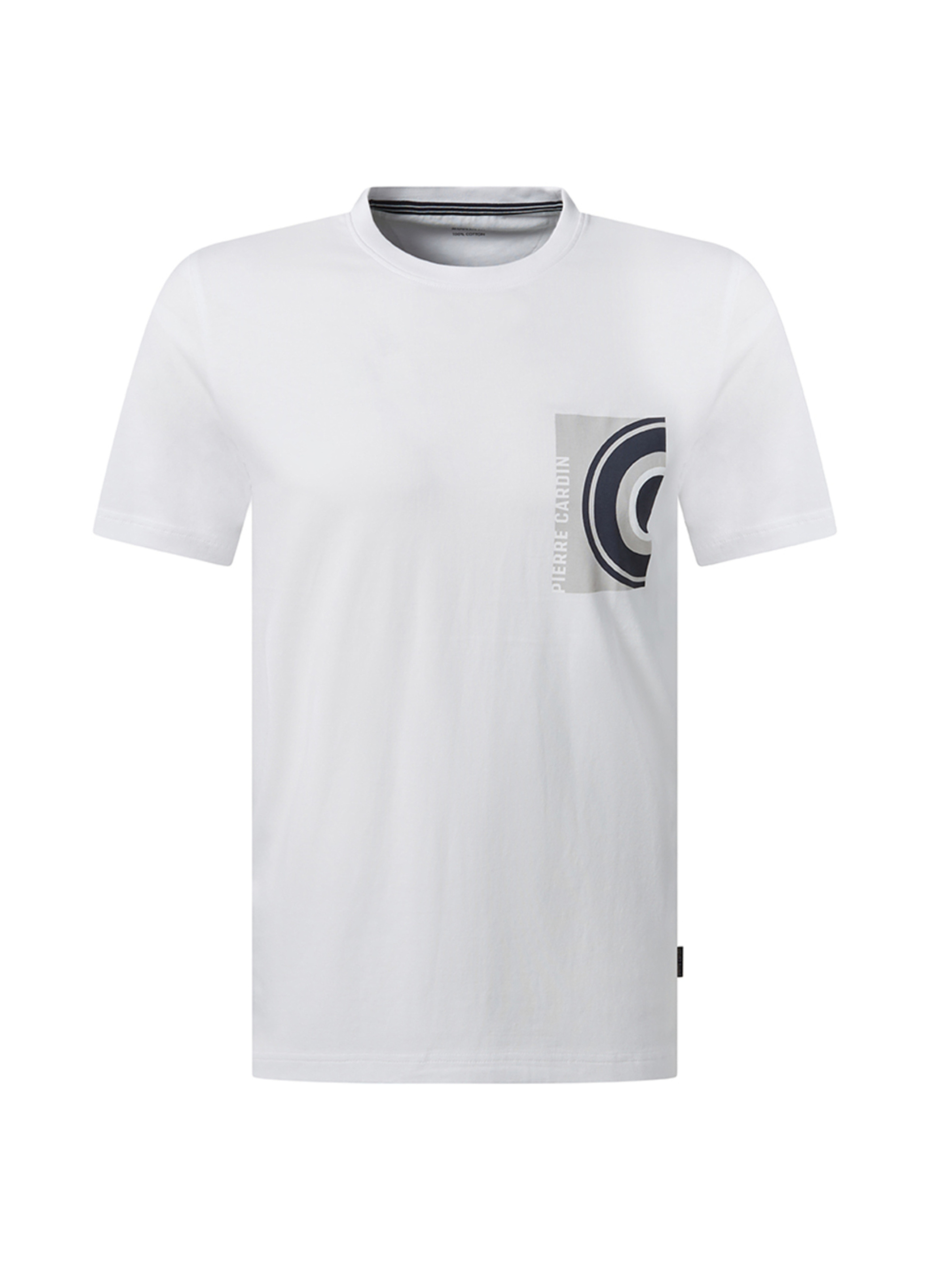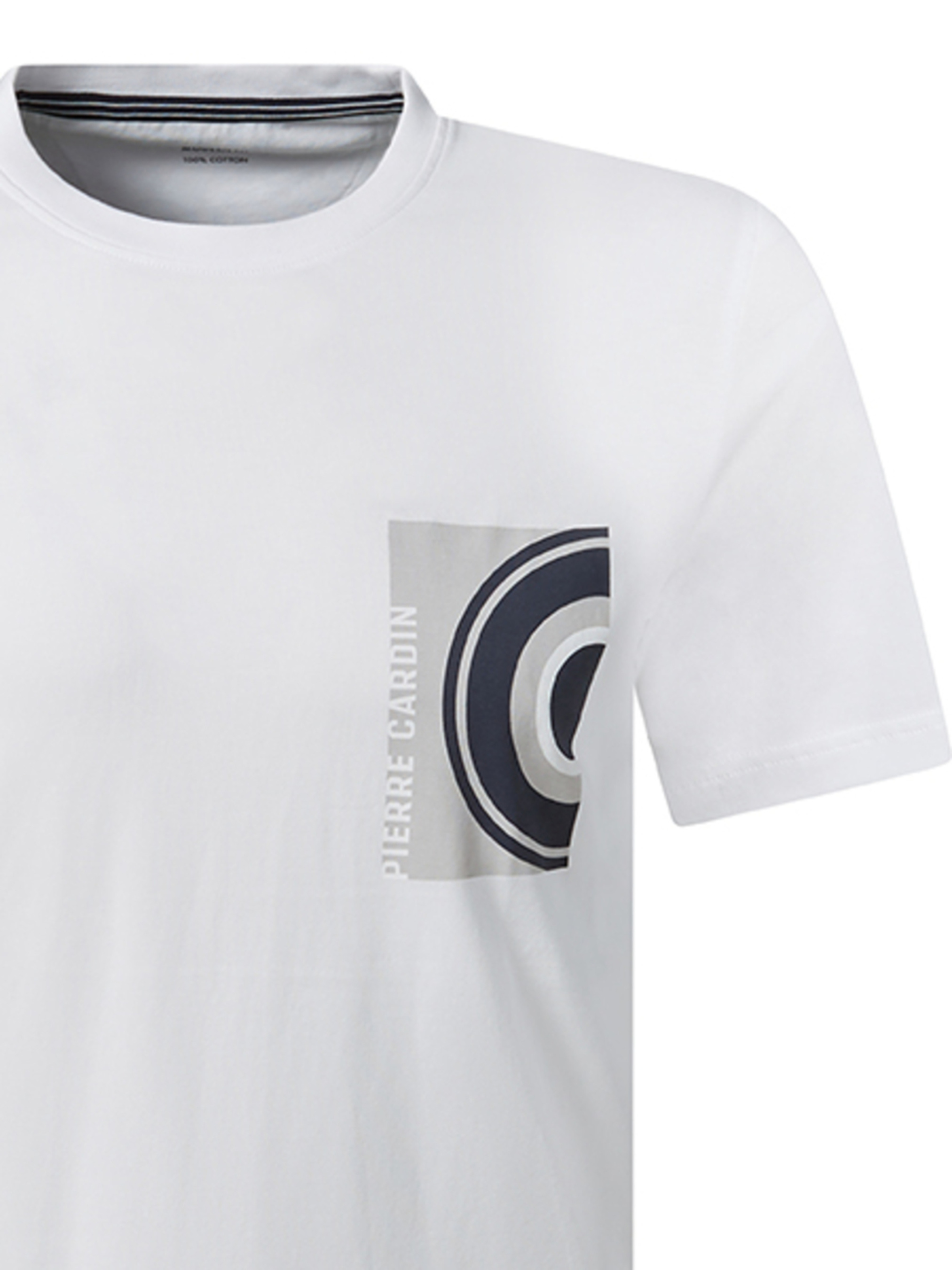 Чоловіча футболка Pierre Cardin з принтом Ця стильна чоловіча футболка від бренду Pierre Cardin створена для тих, хто цінує комфорт, якість і сучасний дизайн. Виготовлена зі 100% бавовни, вона приємна до тіла, добре пропускає повітря й ідеально підходить для повсякденного використання. Модель має прямий крій, круглий виріз горловини та короткі рукави. Особливістю дизайну є контрастний принт у зоні грудей, який візуально імітує кишеню. Графічний елемент доповнений логотипом Pierre Cardin, що додає виробу фірмового характеру.