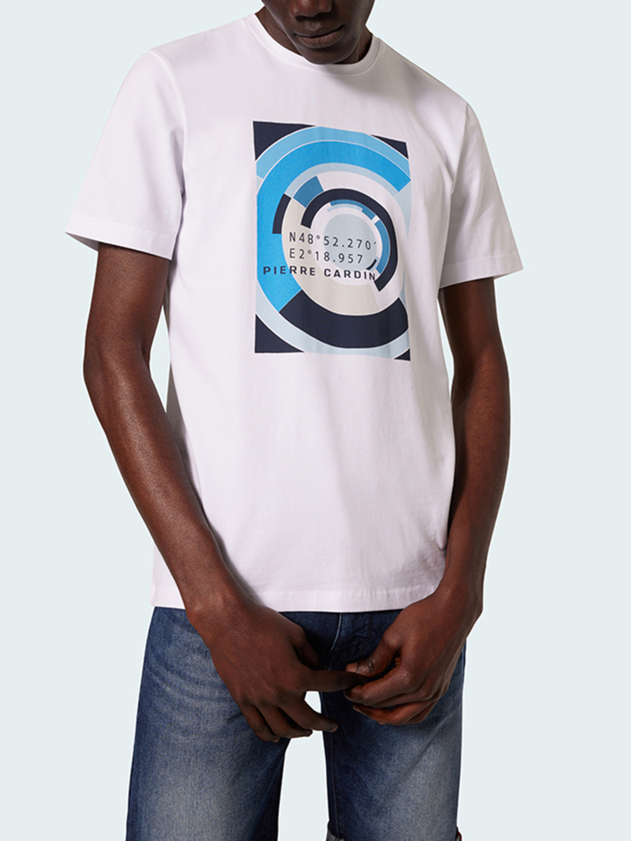 Модель із весняно-літньої колекції Pierre Cardin, яка поєднує універсальність і сучасні тенденції. Ідеальний варіант для тих, хто цінує легкість, комфорт та стриману елегантність. Основні характеристики: Крій: Modern Fit — класичний фасон, що підходить більшості фігур, лишаючи свободу рухів. Склад: 95 % бавовна / 5 % еластан — м’який трикотаж з легким блиском, який забезпечує комфорт і трохи еластичності . Матеріал: якісний хлопковий джерсі — приємний на дотик, «дихає», залишається привабливим навіть після прання. Горловина: класична кругла — універсальна та зручна. Рукави: короткі, помірної довжини. Принт: фірмовий логотип Pierre Cardin на грудях і геометричний малюнок— лаконічно й престижно. Переваги моделі: Легкість і комфорт: бавовняно-стрейчева тканина забезпечує м’якість і свободу рухів. Акуратний вигляд: джерсі тримає форму, не мнеться — ідеальне для повсякденного носіння.. Універсальність: легко комбінується з джинсами, шортами і піджаками.