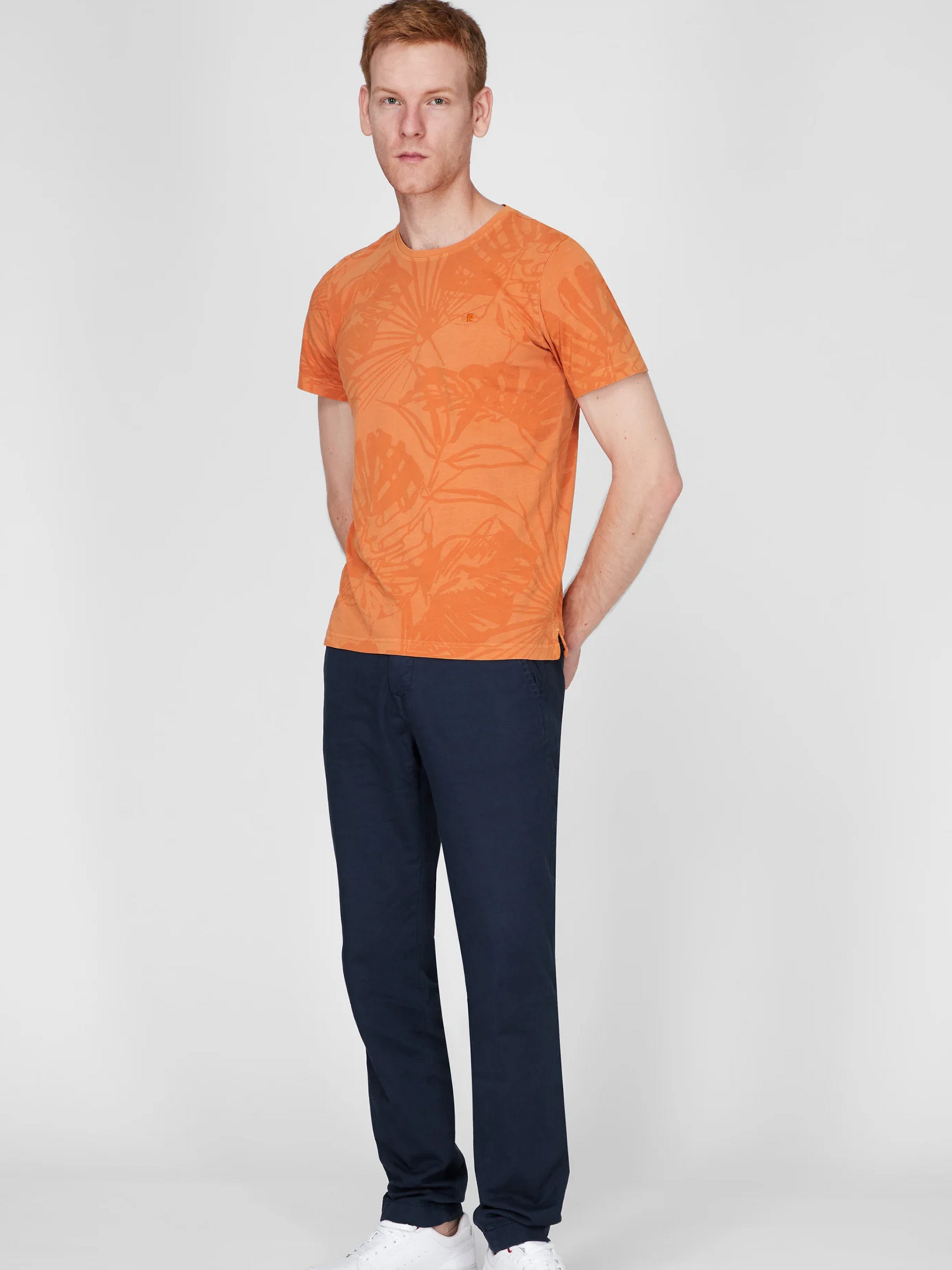 Стильна та зручна футболка з колекції бренду Pierre Cardin, виконана в помаранчевому кольорі з витонченим абстрактним принтом — ідеальний варіант для літніх smart-casual образів. Основні характеристики: Крій: Modern Fit — трохи приталений фасон, який підкреслює фігуру, не утруднюючи рухів. Матеріал: 100 % мерсеризований бавовняний джерсі — м’який, прохолодний, добре вбирає вологу та приємний до тіла . Горловина: класичний круглий виріз — універсальний і зручний для повсякденного використання. Рукави: короткі — оптимальний вибір для теплої погоди. Узор: абстрактний принт по всій футболці — додає сучасного шарму без надмірної насиченості . Колір: глибокий помаранчевий — легко комбінується з шортами, джинсами та легкими сорочками. Переваги для покупця: Комфорт цілий день завдяки м’якій бавовні, яка «дихає». Сучасний повсякденний стиль — легко поєднувати з іншими елементами гардеробу. Принт додає індивідуальності без надмірної виразності. Простий догляд: машинне прання, тканина зберігає форму і колір після багатьох циклів