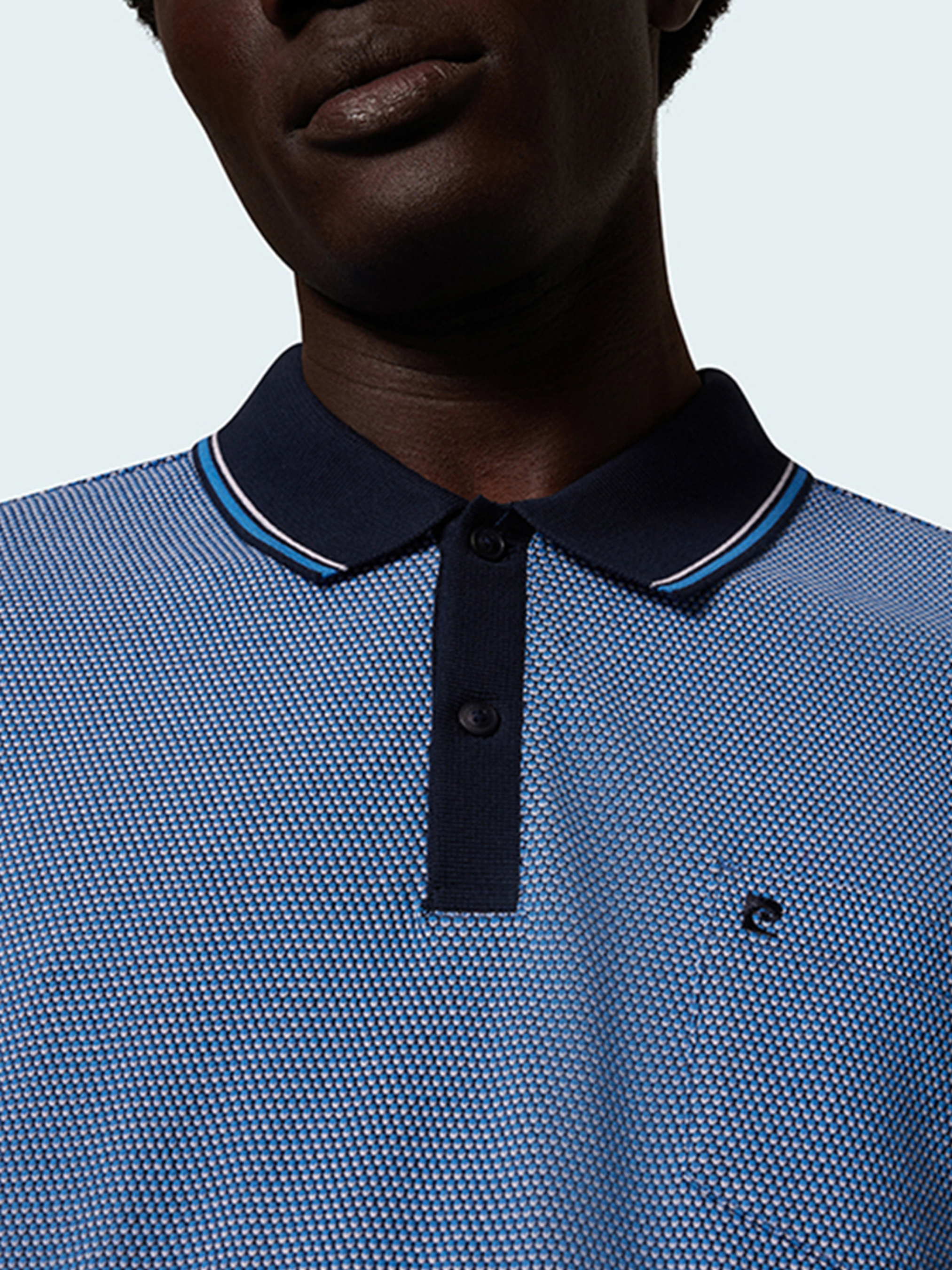 Це стильне поло представляє сучасну класику від Pierre Cardin — розроблене з технологією Futureflex, воно поєднує натуральну тканину та підвищений комфорт. Характеристики: Крій: Regular Fit — прямий силует із трохи вільною посадкою, комфортний у щоденному носінні . Склад: 94 % бавовна / 6 % еластан — м’якість натуральної тканини з невеликою еластичністю для свободи рухів. Тканина: легкий трикотаж із невеликою рельєфною фактурою — нагадує piqué, але з гладшою поверхнею; приємна до тіла і не мнеться. Колір: синій — універсальний і елегантний . Дизайн: Класичний поло-комір із планкою на гудзики Нагрудна кишеня Лаконічна вишивка логотипа Pierre Cardin на грудях Короткий рукав, бічні розрізи для свободи рухів. Технологія: Futureflex — тканина із додаванням еластану, що забезпечує легкість, стійкість до зминань та свободу руху. Довжина спини (M): близько 70 см — класична посадка. Переваги: Комфорт весь день: завдяки еластану тканина підлаштовується під рухи, не обмежуючи активність. Охайний вигляд: не мнеться після прання, легко доглядати. Елегантна базова модель: синій колір і класичний крій легко поєднуються з іншими елементами гардеробу. Фукціональні деталі: кишеня і логотип додають стильного завершення.
