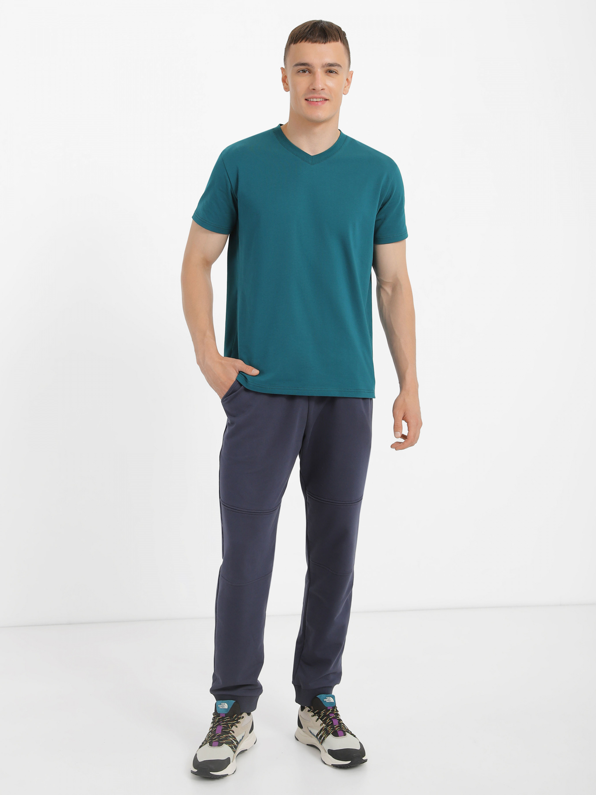 Футболка з V-образним вирізом ТМ Promin - тільки високоякісні натуральні тканини. Склад: бавовна - 95%, еластан - 5% Колір: Темно-бірюзовий