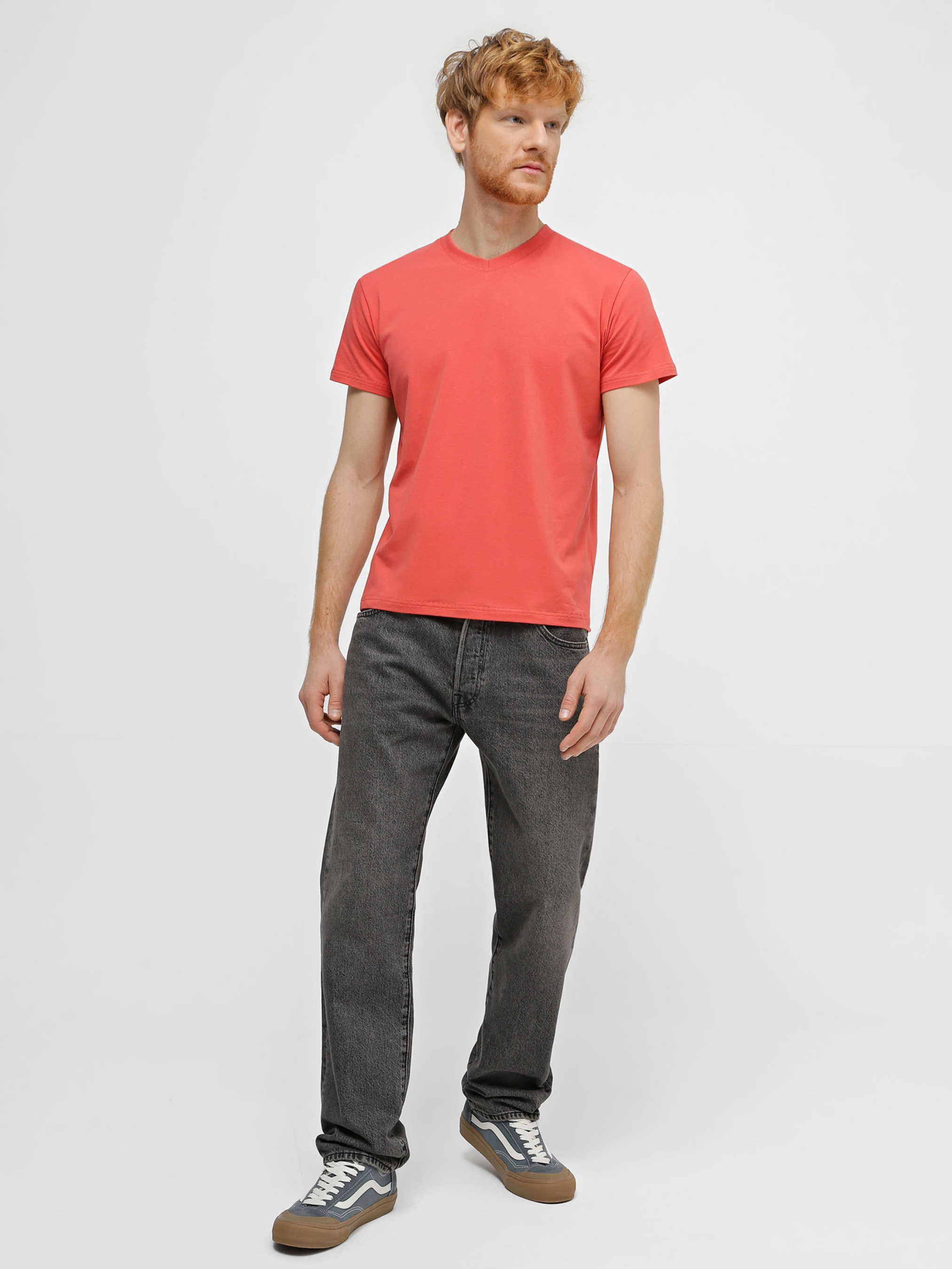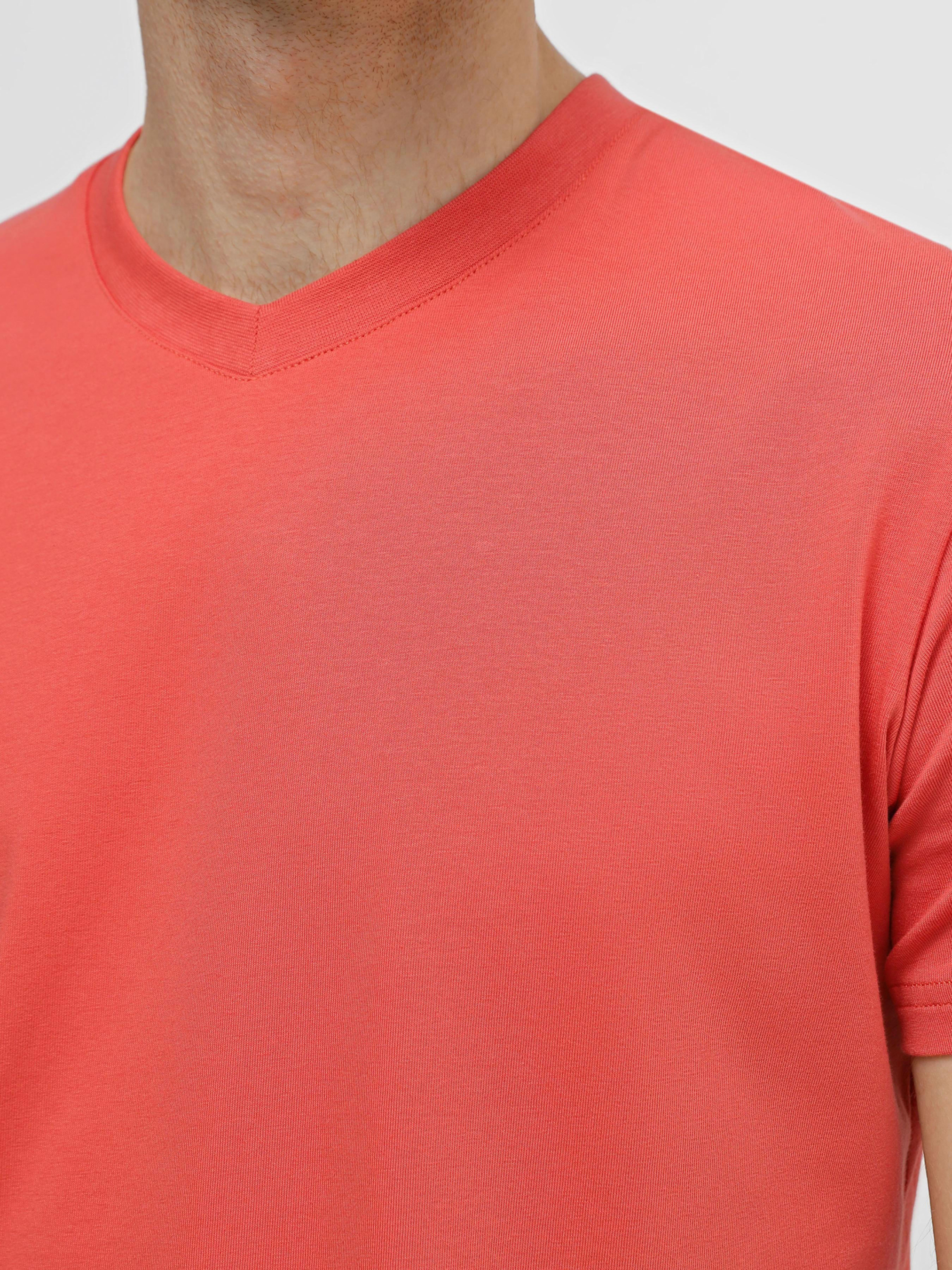Футболка з V-подібним вирізом ТМ Promin - тільки високоякісні натуральні тканини. Склад: бавовна - 95%, еластан - 5% Колір: Темно-лососевий
