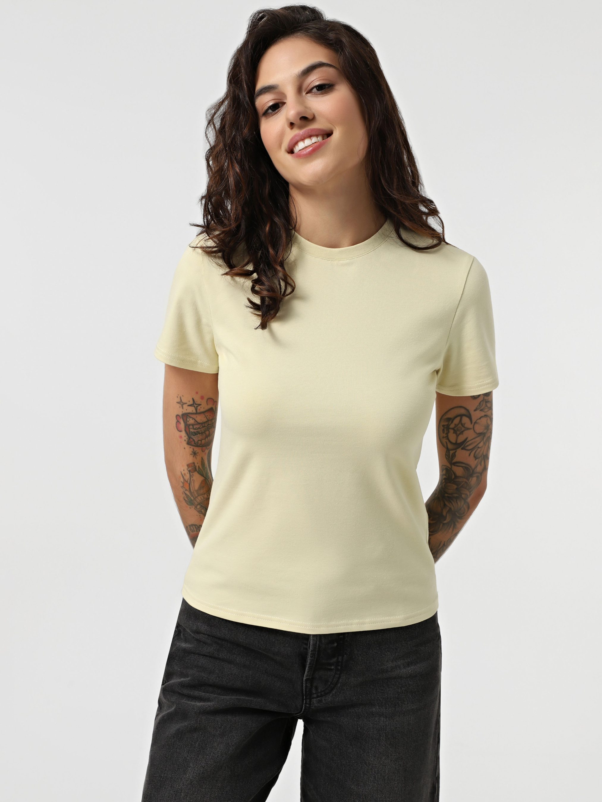 Футболка жіноча ТМ Promin - тільки високоякісні натуральні тканини. Склад: Бавовна - 95%, Еластан - 5% Колір: Бежево-зелений