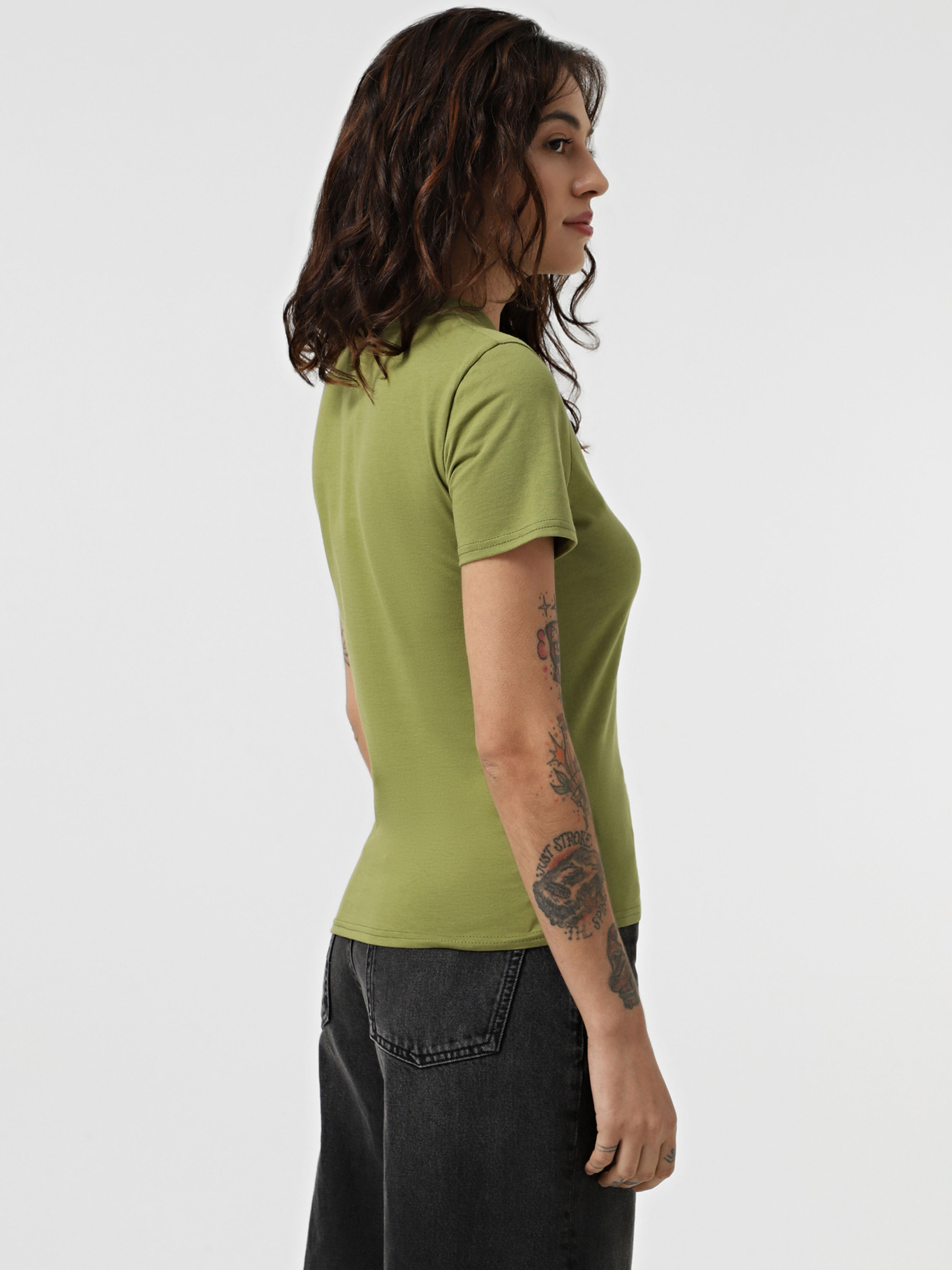Футболка жіноча ТМ Promin - тільки високоякісні натуральні тканини. Склад: Бавовна - 95%, Еластан - 5% Колір: Оливковий