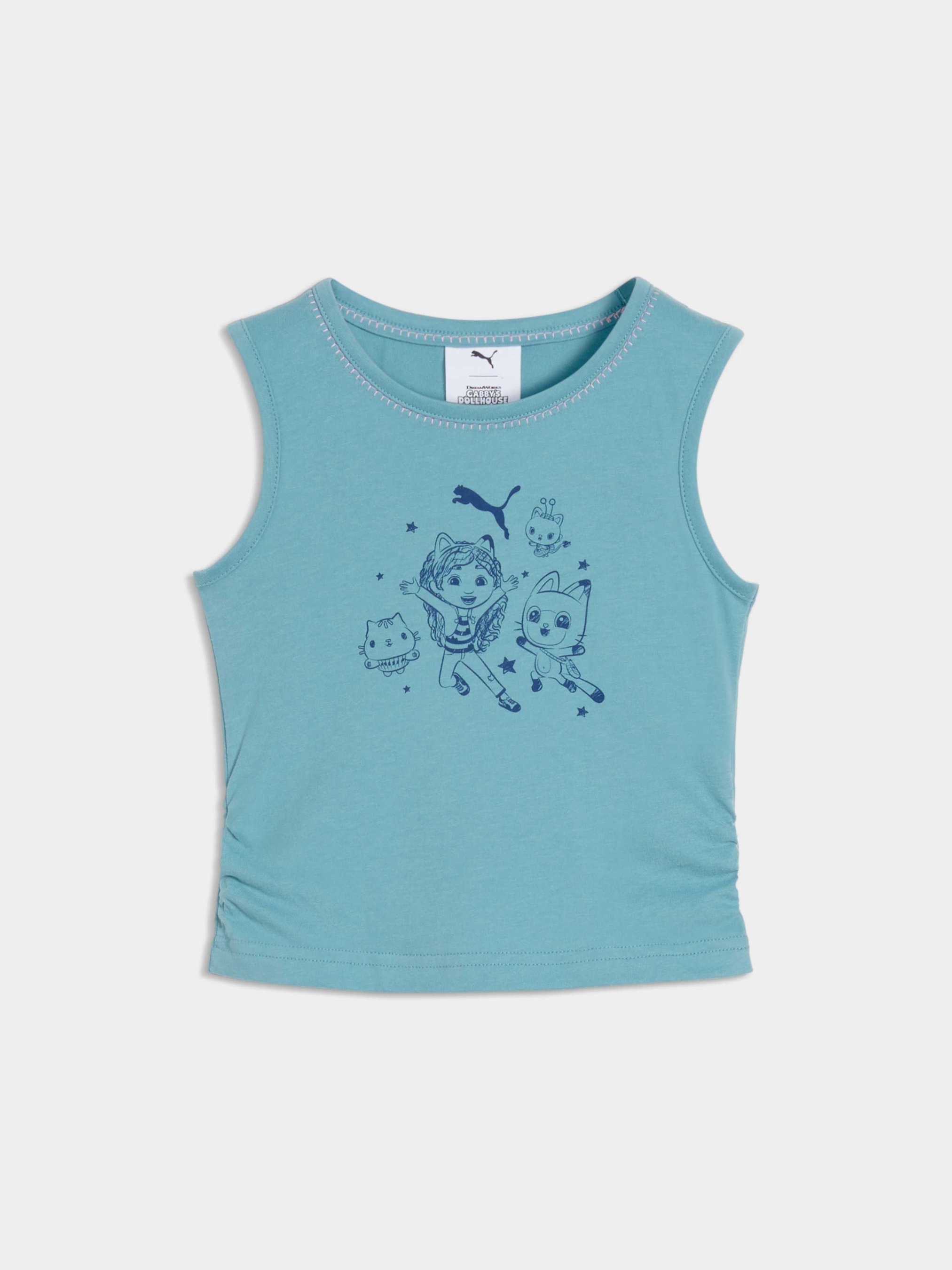 Щодня — це справжня кото-насолода з колекцією PUMA x GABBY'S DOLLHOUSE. Юним шанувальникам серіалу сподобається ця версія повсякденного одягу в стилі Габбі, з ручними малюнками, яскравими пастельними тонами та естетикою DIY. Ідеально для любителів котів — ця майка має графіку з персонажами, а також драпірування з боків для додаткових стильних акцентів.