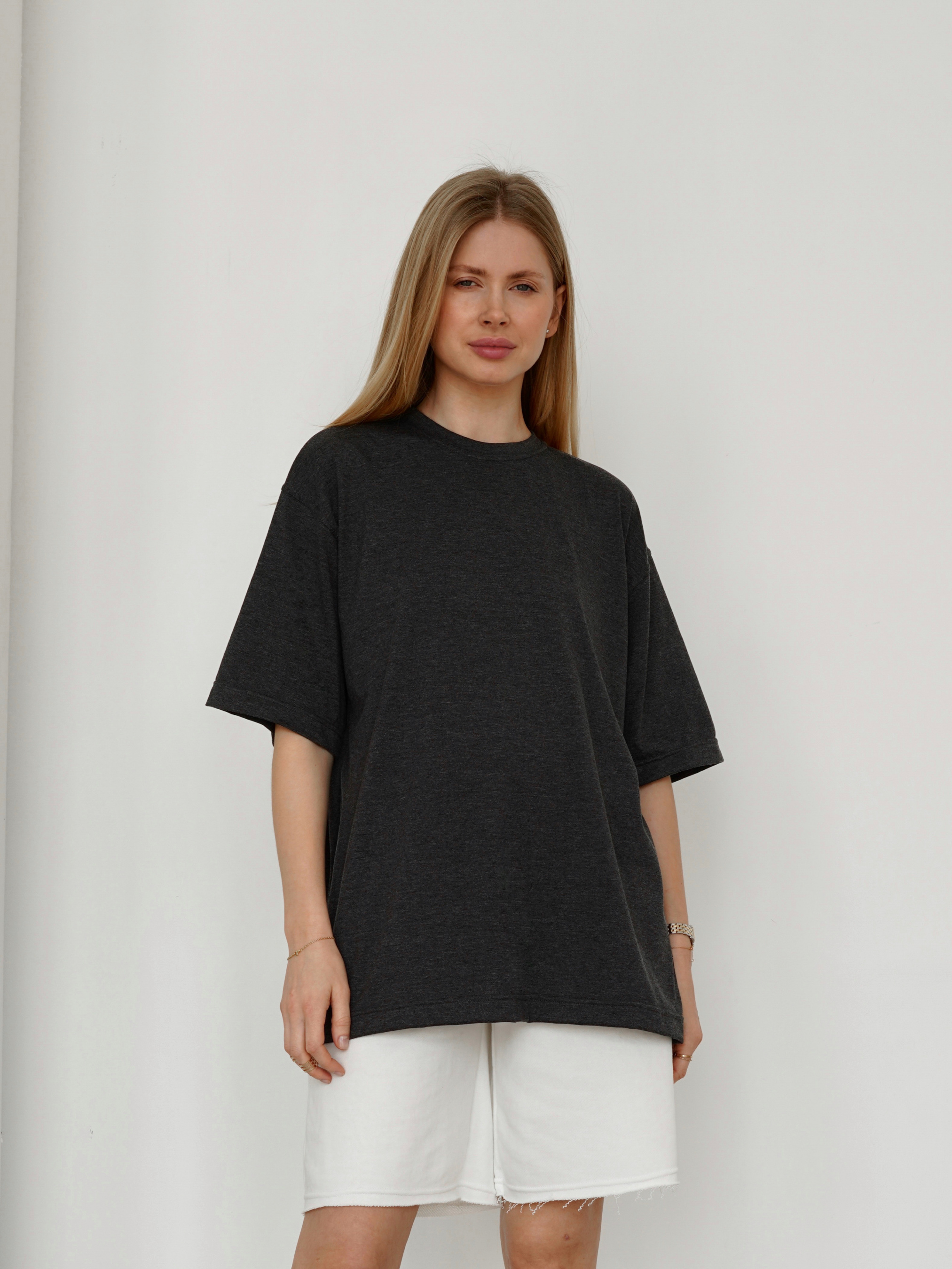 Ідеальна базова футболка на всі випадки життя у 6 кольорах. Фасон оверсайз. Виконана з м`якого та приємного матеріалу кулір (50% бавовна, 47% віскоза, 3% еластан). Гарно тримає форму. За рахунок якісно оброблених швів, широких рукавів та плотного матеріалу виглядає якісно та дорого. Можна поєднувати абсолютно з усім джинсами, класичними брюками, спідницями, шортами, легінсами. Слугуватиме ідеальною базою для багатошарових образів на весняно-осінній сезон та довершеним верхом на літо. Прослужить вам багато сезонів поспіль. Радимо брати одразу у кількох кольорах ;) Радимо обрати варіант футболки Tall дівчатам високого зросту. Колір виробу на фотографії може відрізнятися від реального кольору товару, що пов'язано з особливостями передачі кольору на моніторі, налаштуваннями фотоапаратури чи іншими факторами. One size Довжина по спині : 72 см Довжина рукава : 26 см Напівобхват грудей : 58 см Плечі : 53 см Ширина по низу : 57 см