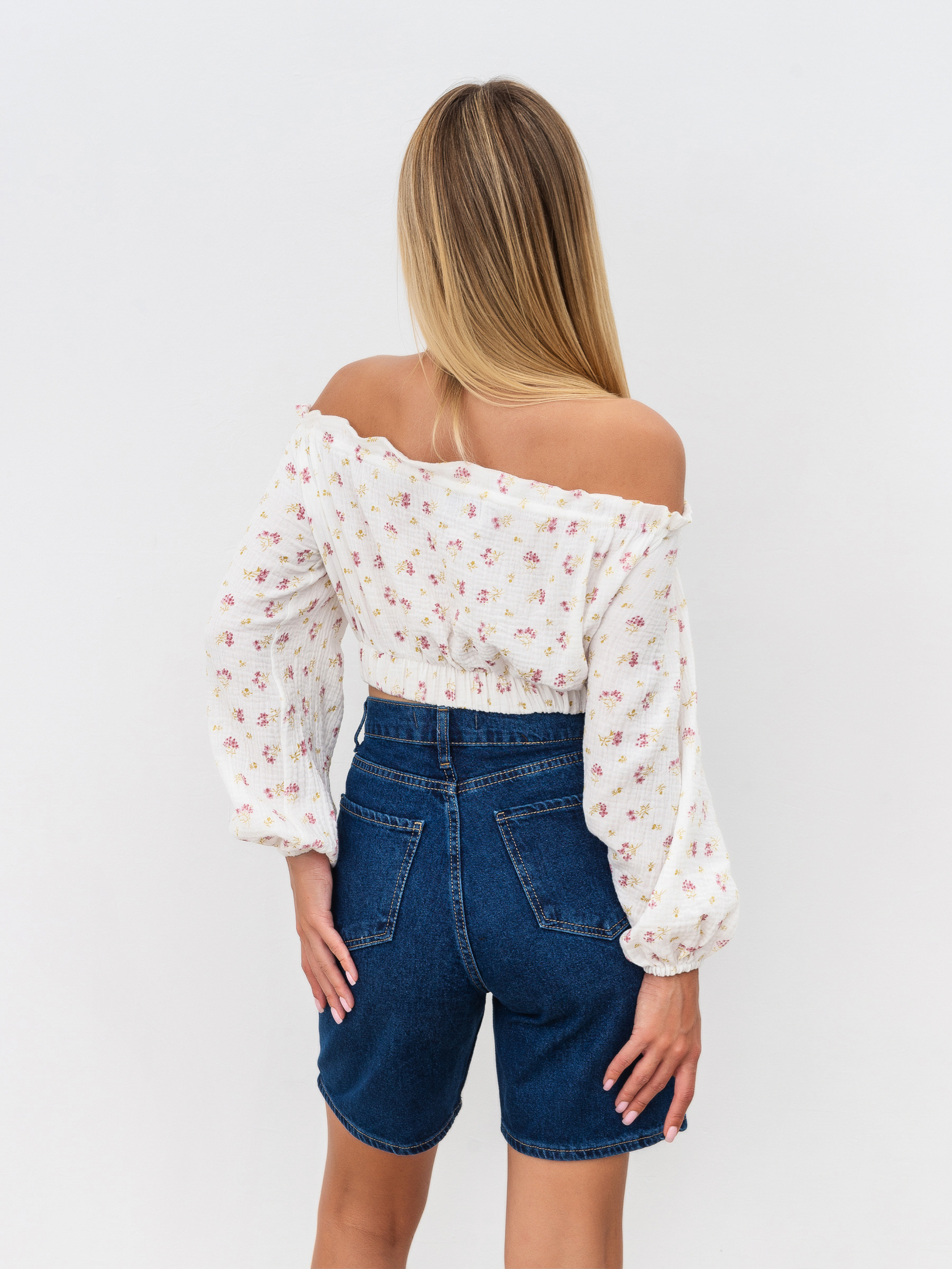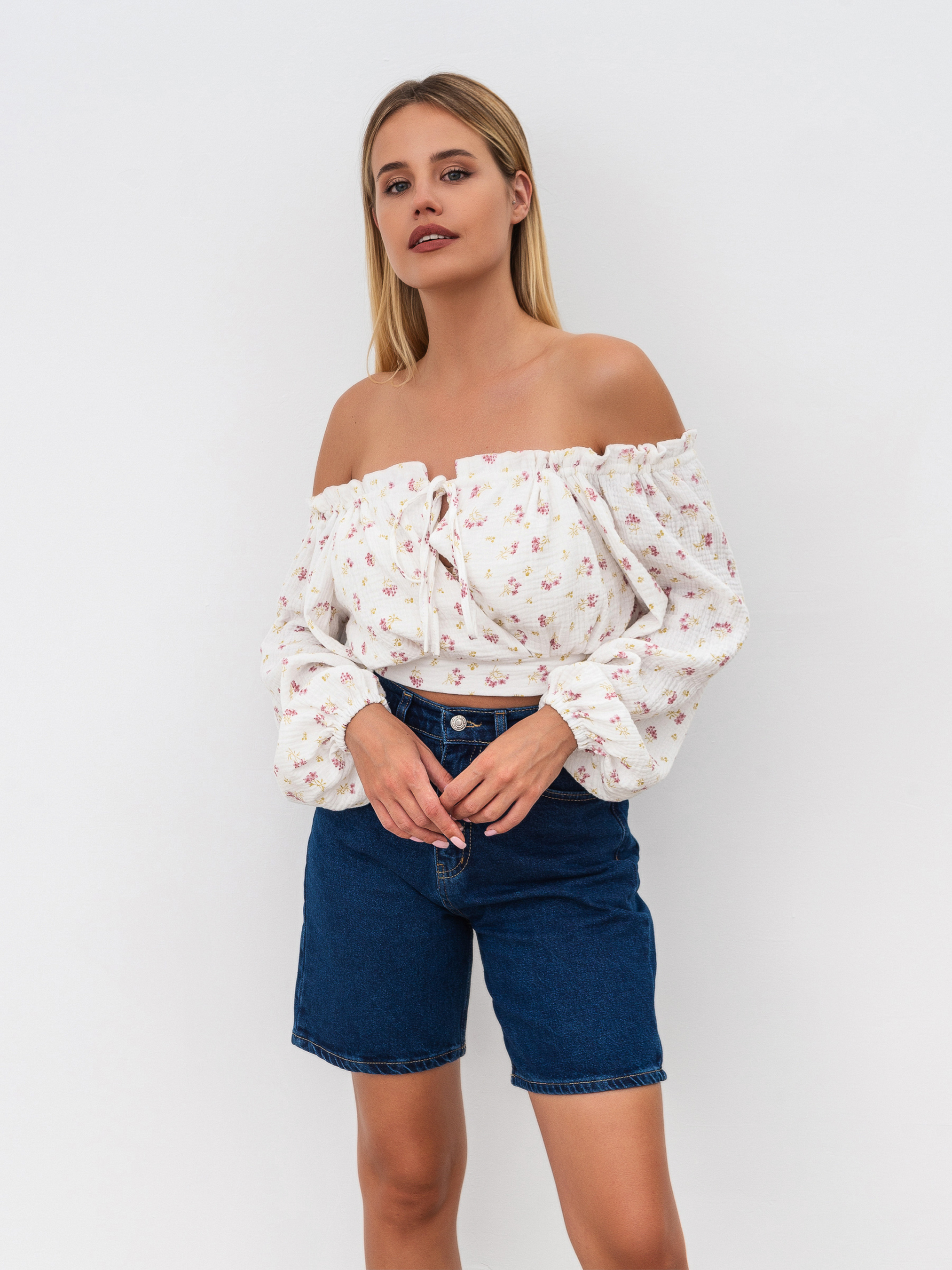 Блуза з мусліну на плечі. Регулюється на грудях. Талія підкреслена. Вільний рукав, манжет на гумці. Натуральний матеріал муслін, 100% бавовна. XS-S Довжина по спині : 32 см Довжина рукава : 53 см Напівобхват грудей : 41 см Плечі : 39 см - регулюється куліскою Напівобхват талії : 29 см - резинка S-M Довжина по спині : 32 см Довжина рукава : 53 см Напівобхват грудей : 44 см Плечі : 42 см - регулюється куліскою Напівобхват талії : 32 см - резинка M-L Довжина по спині : 32 см Довжина рукава : 53 см Напівобхват грудей : 46 см Плечі : 44 см - регулюється куліскою Напівобхват талії : 34 см - резинка
