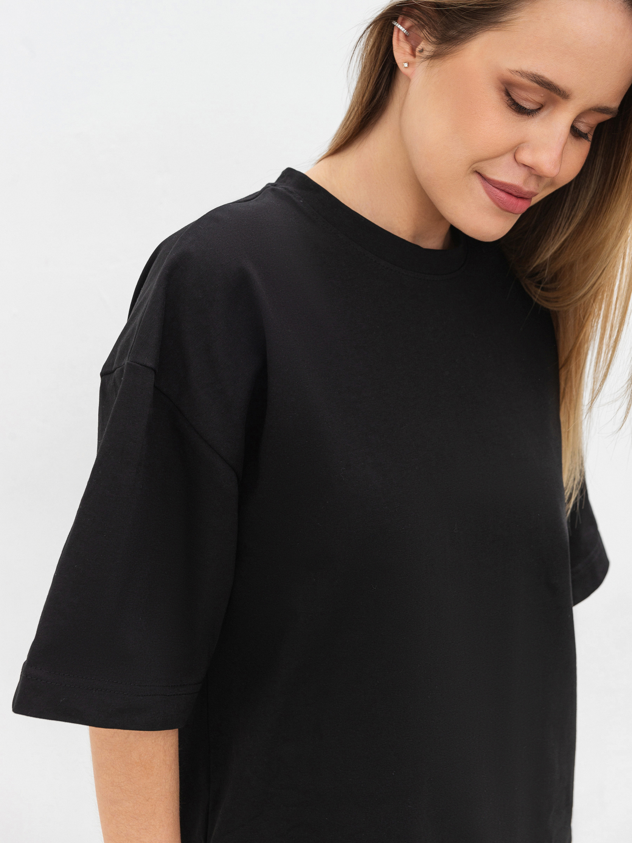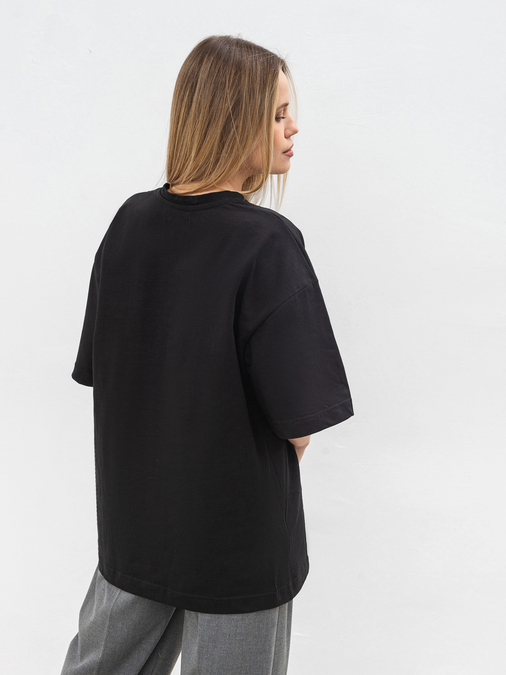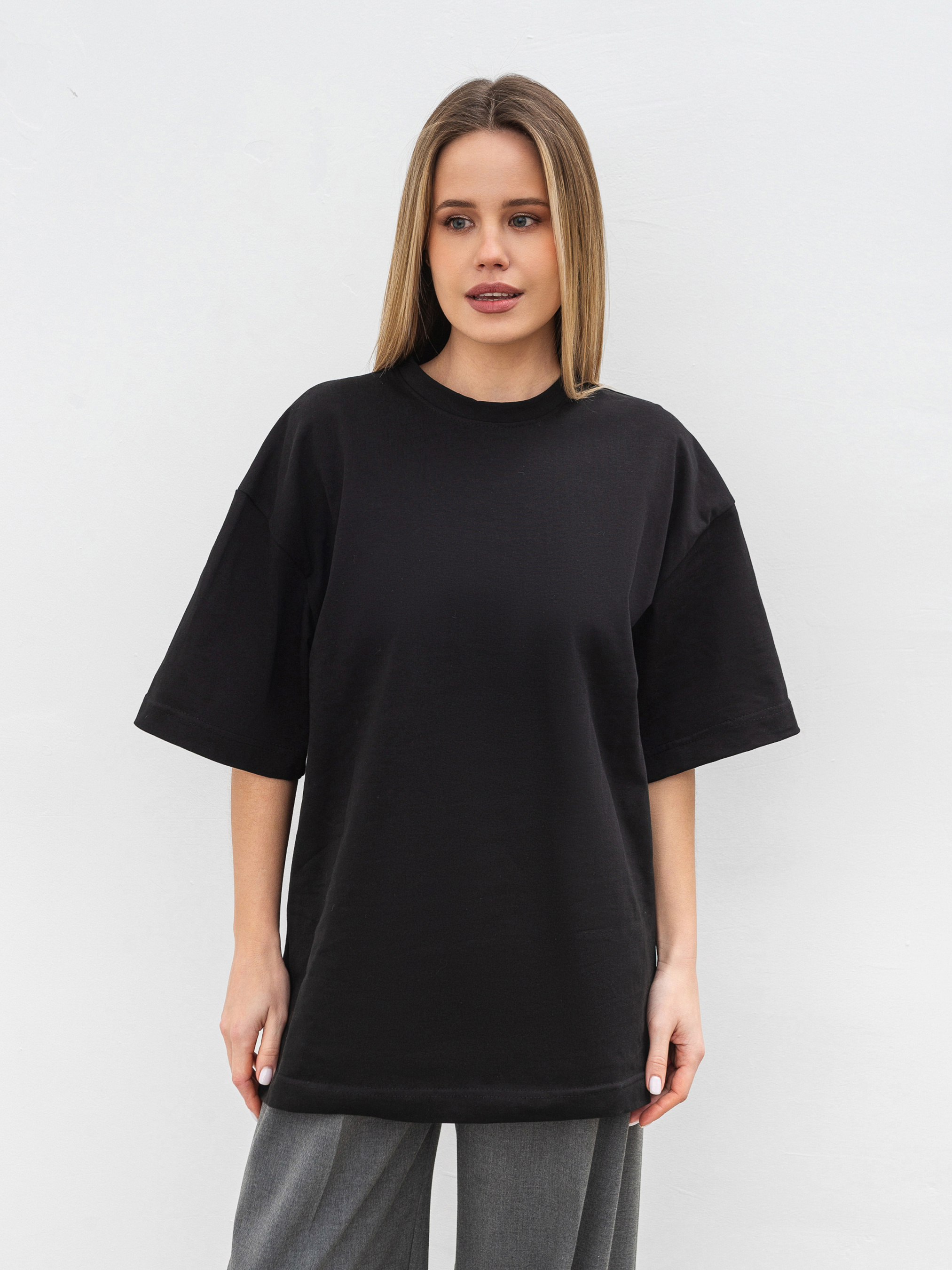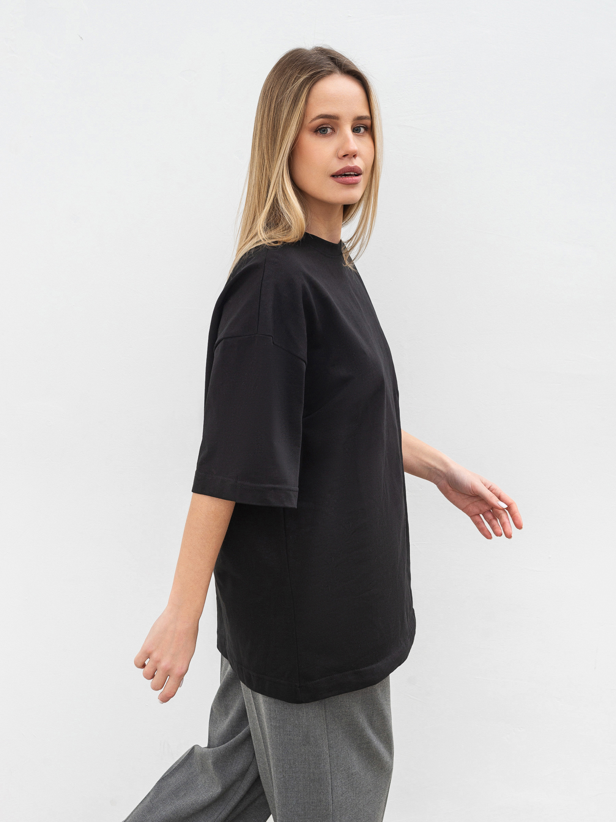 Простий, але стильний базовий елемент футболка Бейсік стане незамінною частиною будь-якого гардеробу. Модель виготовлена з м'якого трикотажу кулір із 100% бавовни, що забезпечує комфорт і чудову циркуляцію повітря. Особливість цієї футболки спущена лінія плеча і прямий фасон, який підходить для різних типів фігур. Вибір довжини (коротка та подовжена модель) дозволяє підібрати найбільш зручний варіант під ваш стиль. Доступна в різноманітних кольорах, вона без зусиль поєднується з іншими базовими елементами гардероба ідеальна для будь-якої ситуації, від повсякденних прогулянок до більш витончених образів на вихід. Довжина по спині - 68 см Напівобхват грудей - 55 см Напівобхват талії - 54 см Плечі - 55 см Довжина рукава - 22 см