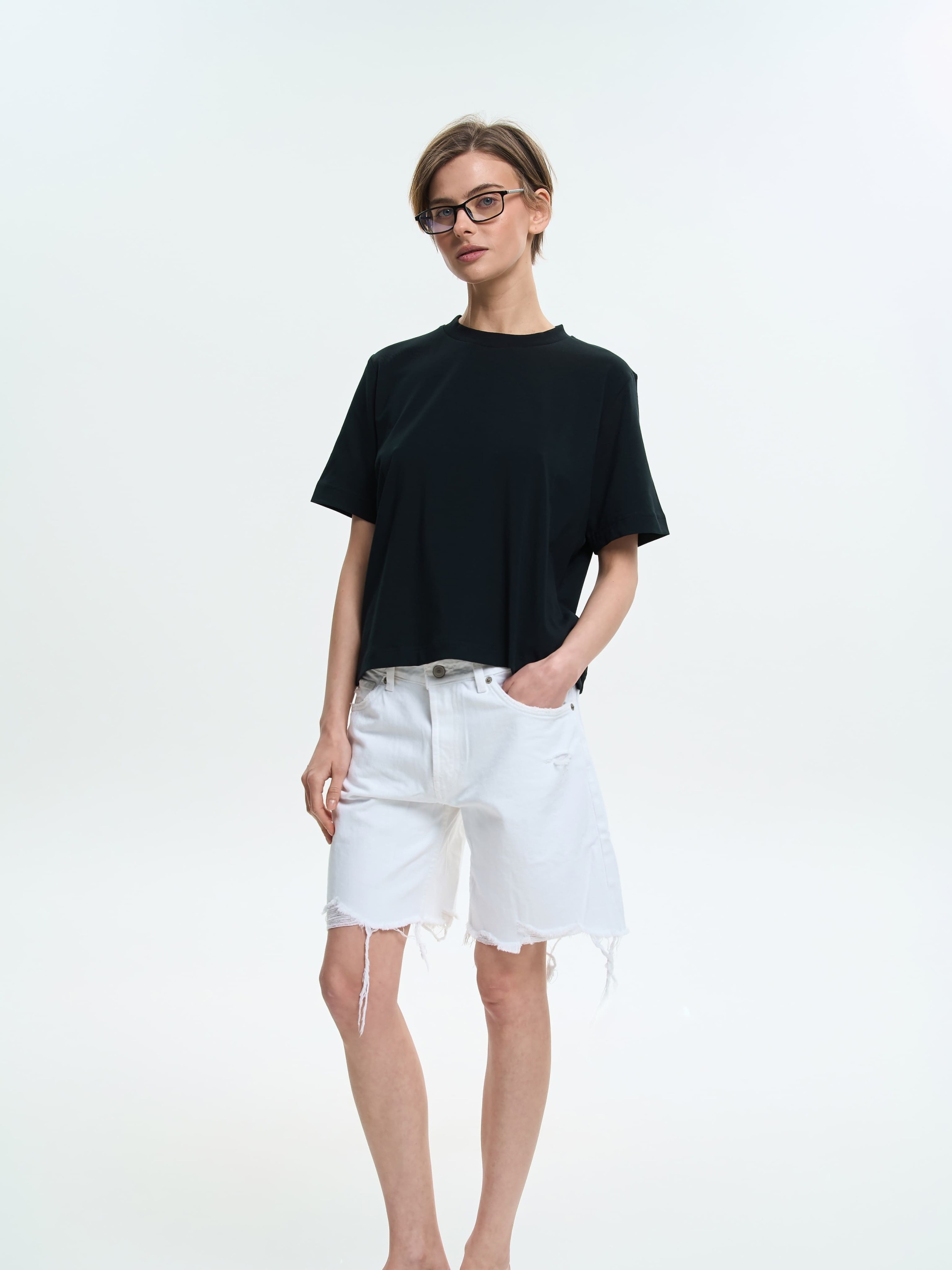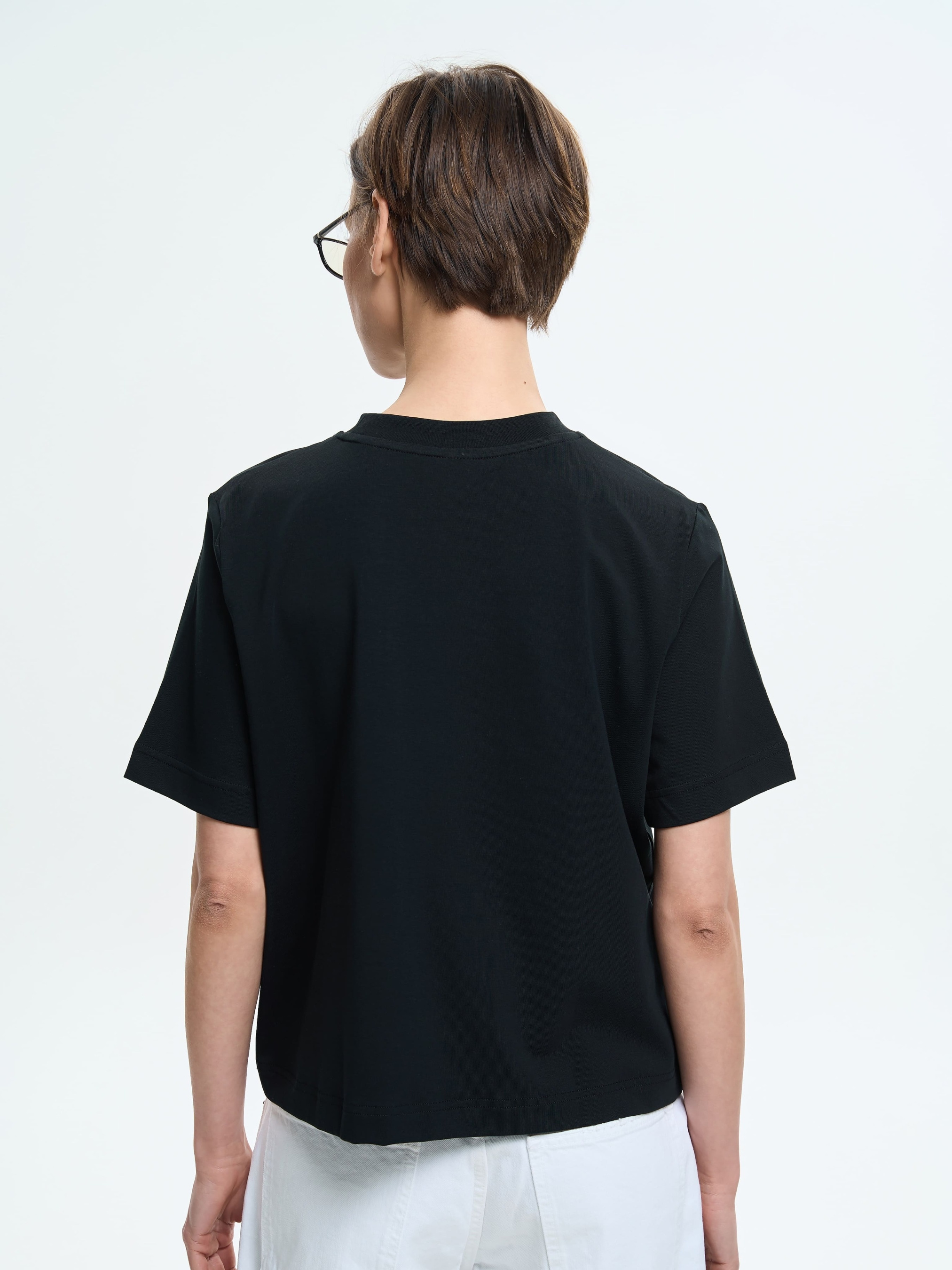 Стильна вкорочена футболка з вільним силуетом і комфортною посадкою. Має класичний круглий виріз, який прилягає до шиї, створюючи акуратний вигляд. Завдяки м'якій та еластичній тканині футболка приємна до тіла й зручна у носінні. Чудово пасує як до джинсів чи шортів, так і до спортивних образів, додаючи їм легкості та невимушеності. Матеріал Тонке трикотажне полотно забезпечує природню повітропроникність та м'якість. 95% бавовни у складі робить її легкою, тонкою, приємною навіть для чутливої шкіри. Цей стрейч-кулір добре вбирає вологу, додаючи комфорту при активних рухах і в теплу пору року. 5% еластану сприяють ідеальному приляганню до тіла. Рекомендації з догляду Рекомендовано прати при температурі не вище 40 ° C, використовуючи режим делікатного прання. При ручному пранні уникати тертя. Кольорові речі з бавовною у складі не рекомендовано сушити під прямими сонячними променями.