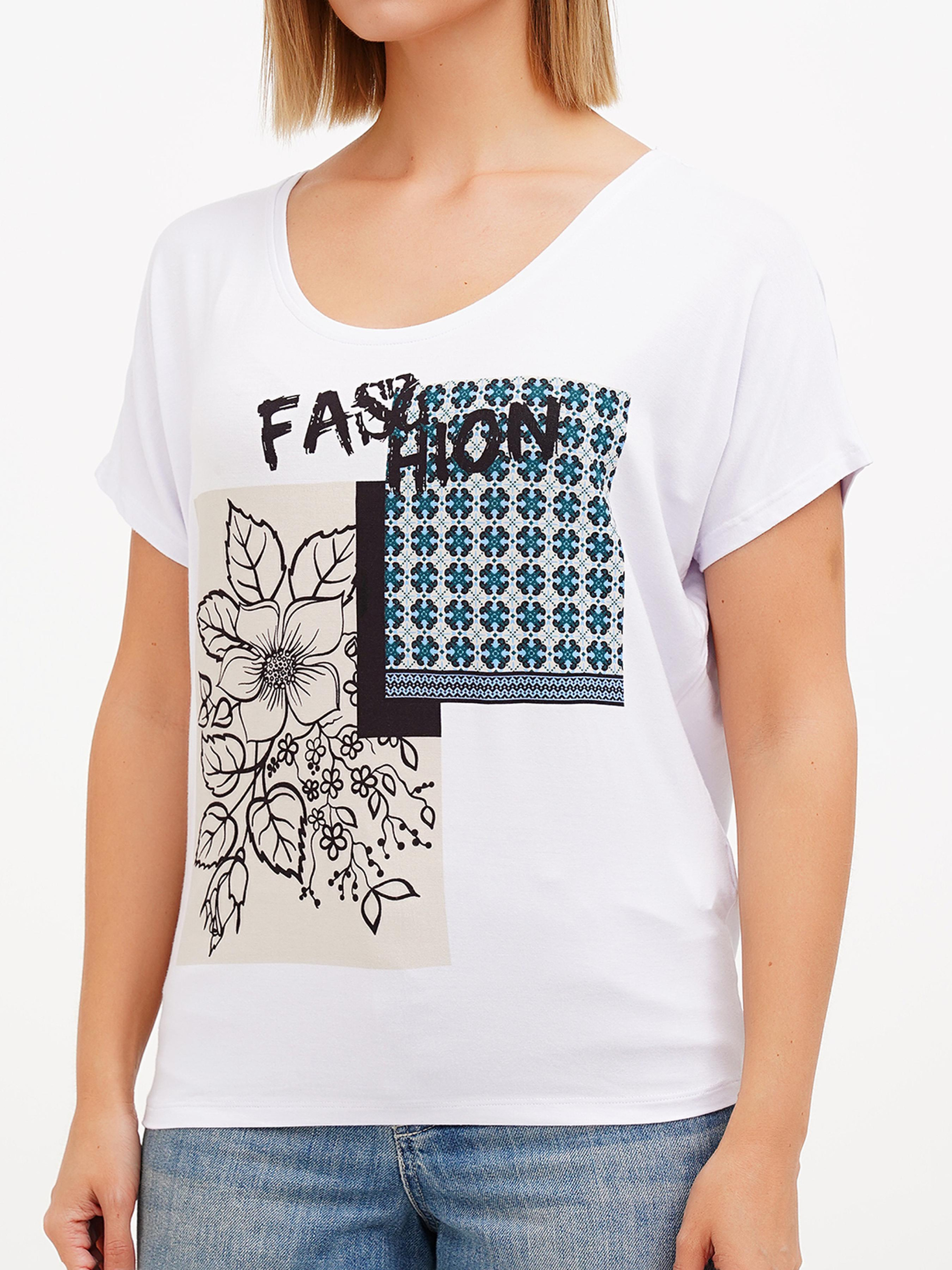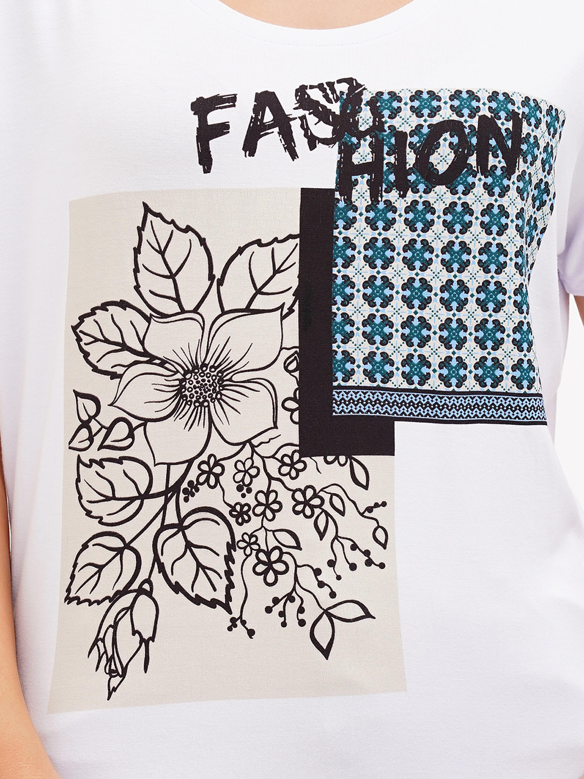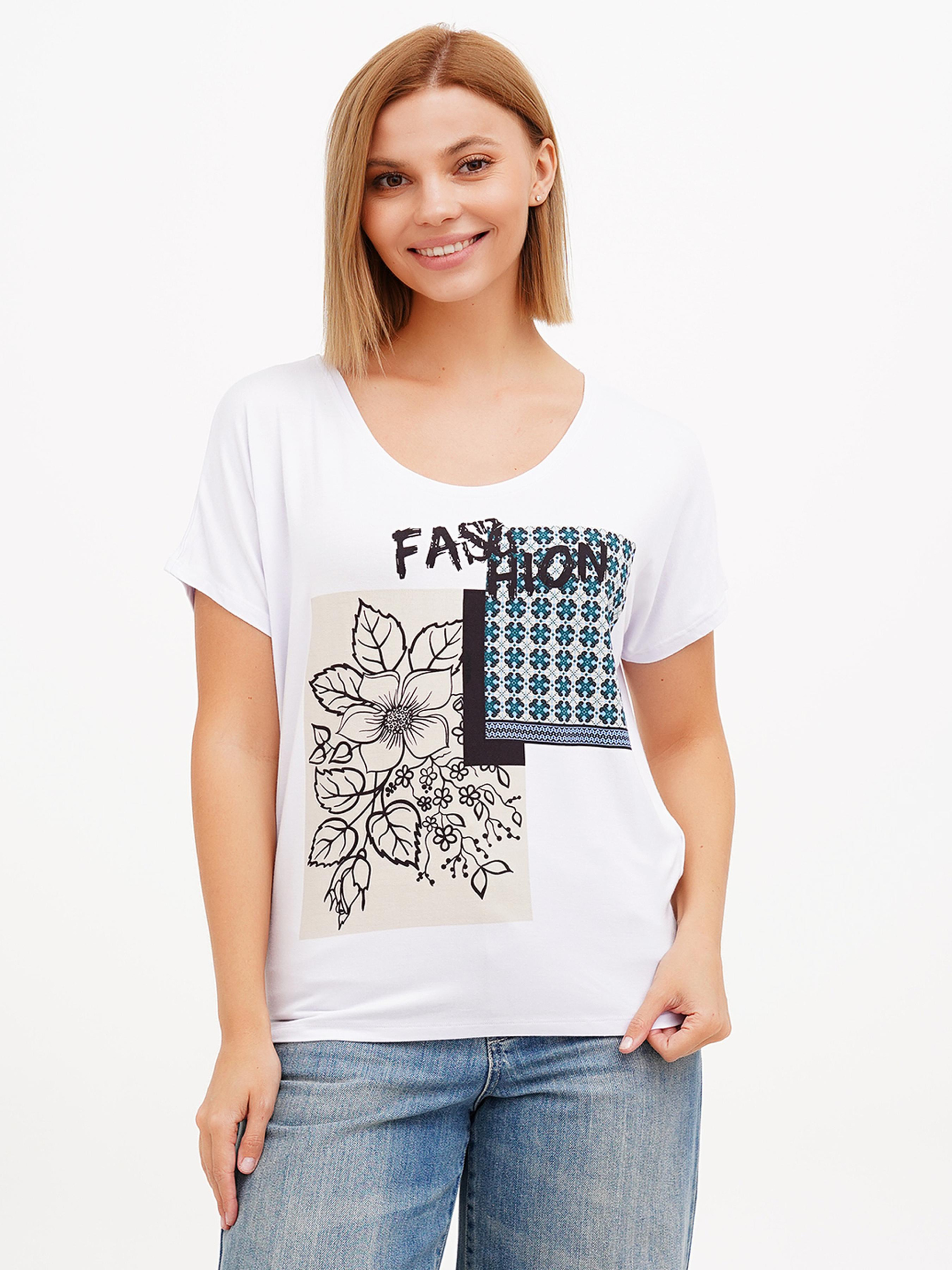 Футболка білого кольору Sassofono з круглим вирізом та квітковим візерунком