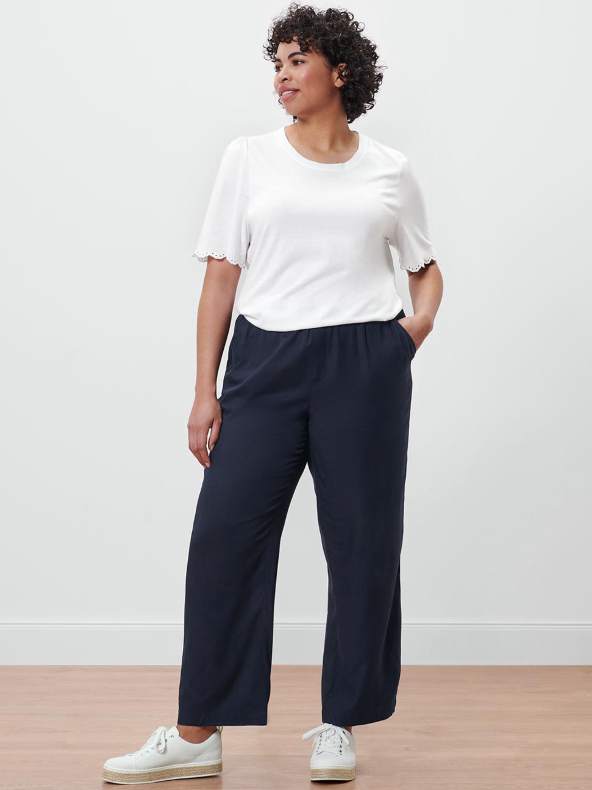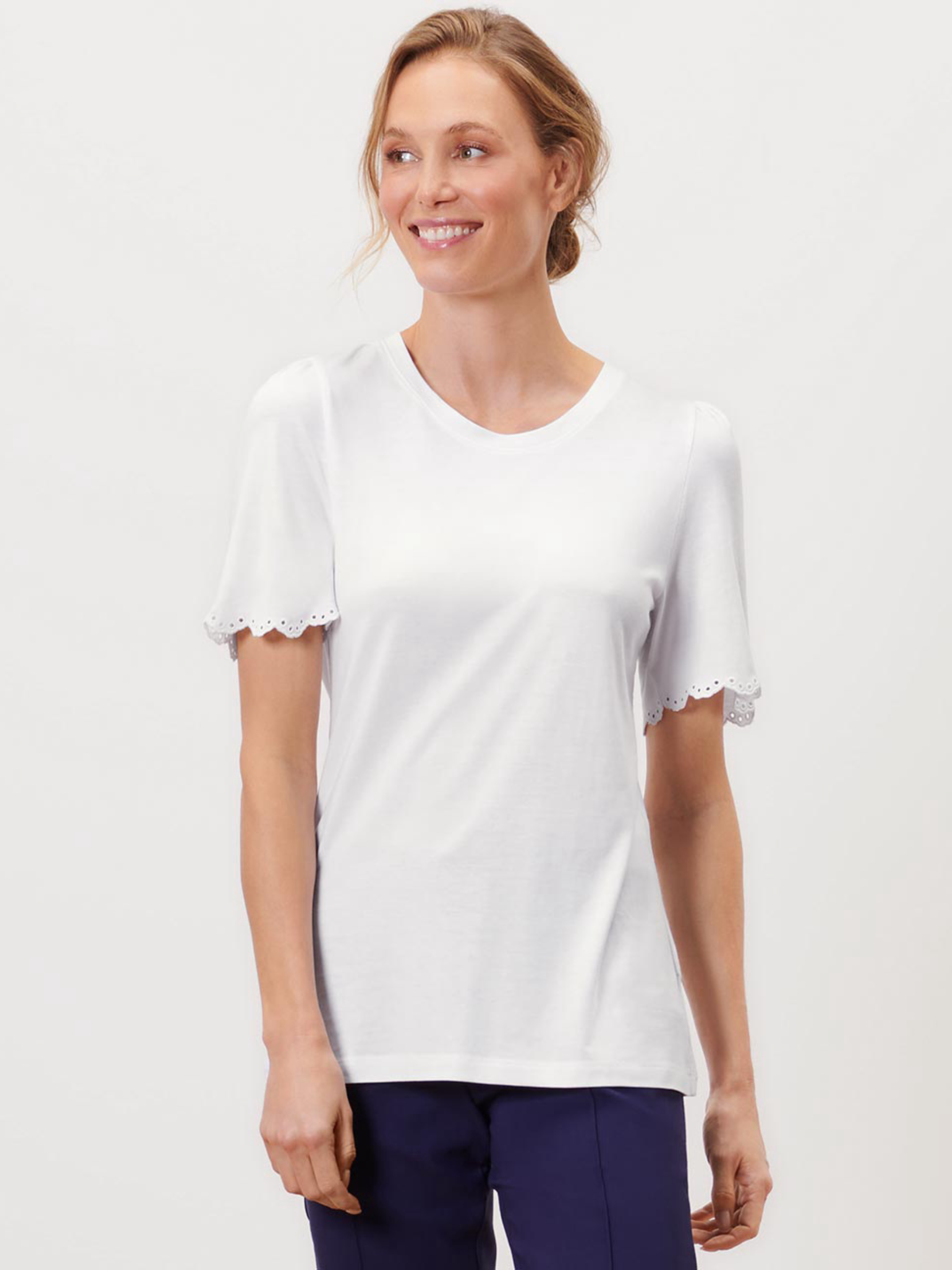 Легка та жіночна біла сорочка з ніжними рюшами та вишивкою на кінцях рукавів. Модель має рукава-кепи зі складками на плечах, що додають об’єму та романтичного акценту. Класичний круглий виріз робить фасон універсальним і зручним для щоденного носіння. Виготовлена з м’якої суміші віскози та бавовни, приємної до тіла. Особливості: рюші спереду для ніжного акценту кінці рукавів з вишивкою рукава-кепи зі складками на плечах круглий виріз легка та комфортна тканина перевірено на наявність шкідливих речовин зовнішніми акредитованими інститутами Колір: білий Матеріал: 70% віскоза, 30% бавовна Розміри: 36–38 (S/M або 42–44 український): ПОГ 48 см, довжина 65 см 40–42 (M/L або 46–48 український): ПОГ 54 см, довжина 67 см 44–46 (L/XL або 50–52 український): ПОГ 57 см, довжина 72 см Додаткова інформація: Одяг бренду Tchibo зазвичай не має паперових етикеток. У більшості випадків внутрішні бірки зі складом тканини, назвою бренду або розміром можуть бути відсутніми або частково зрізаними.