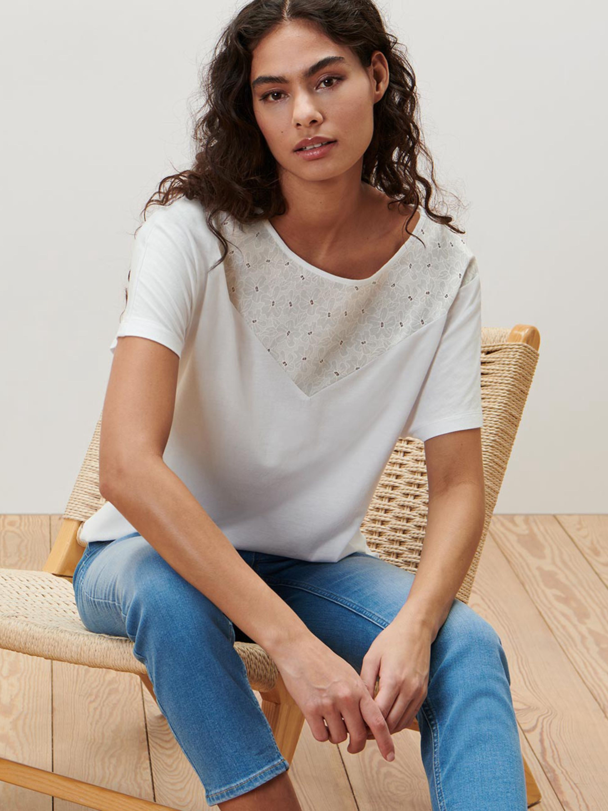М’яка струмуюча якість бавовна-віскоза. Ткана вставка з квітковою вишивкою в області грудей. Еластичний край для комфортного носіння та оптимальної посадки. Викроєний короткий рукав. кругла горловина. Ця блуза-футболка підтримує фермерів. Перевірено на вміст шкідливих речовин – сторонніми акредитованими інститутами. Зверніть увагу, вказано розміри за Євро шкалою (Український розмір = Євро + 6) Склад:50% бавовна, 50% віскоза Розмір 36/38 євро розмір (42/44 або XS/S європейський) ПОГ: 56 см. Довжина: 67 см 40/42 євро розмір (46/48 або M/L європейський) ПОГ: 61 см. Довжина: 71 см 44/46 євро розмір (50/52 або XL/XXL європейський) ПОГ: 68 см. Довжина: 71 см Одяг бренду TCM Tchibo практично весь без паперових етикеток, за рідкісним винятком, і зі зрізаними частково або повністю внутрішніми бірками і ярликами зі складом тканини та іншими даними.